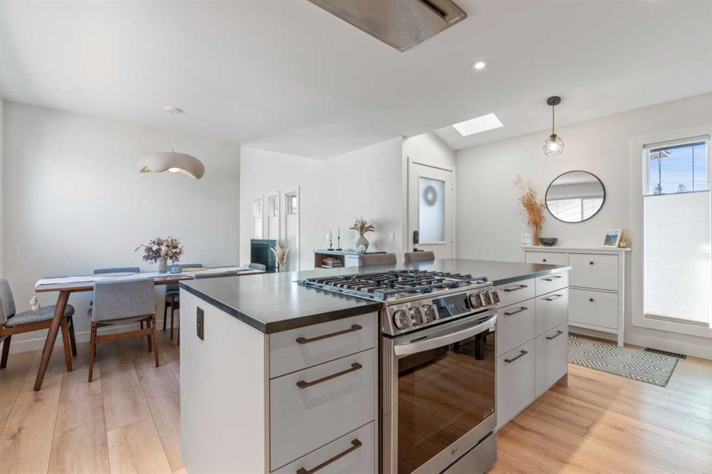 This beautiful Bowness bungalow with a full illegal suite offers so much. 3 bedrooms plus den and 3 bathrooms. The home has been fully renovated to the highest standards with German engineering in mind. The kitchen is HACKER kitchens that is sourced in Germany. The vaulted ceilings and sky lights with the sunken living room offers a feeling of spaciousness and calm. Uniform high quality floors throughout. The dining room is perfect for entertaining and quiet evenings. The bathrooms are modern and European sourced fixtures and custom made vanities. The master retreat offers full views of a full garden and outdoor entertaining. The garden and firepit that take you away from the city and make for comfy summer nights. The main floor plan and design is next to none as far as quality and style. The one bedroom suite with complete private entrance has great flow and function. It has a full function kitchen and access to storage and laundry. The one bedroom is large enough for a king size bed and has huge windows. Basement has it’s own laundry. This home is perfectly situated close to grocery stores and walking amenities plus the Main Street of Bowness. Walking paths, bike paths and boutique shopping. Enjoy Bowness park and have a quick zip to the mountains. Skip the townhouse and buy this beautiful home that is move in ready and basically brand new!