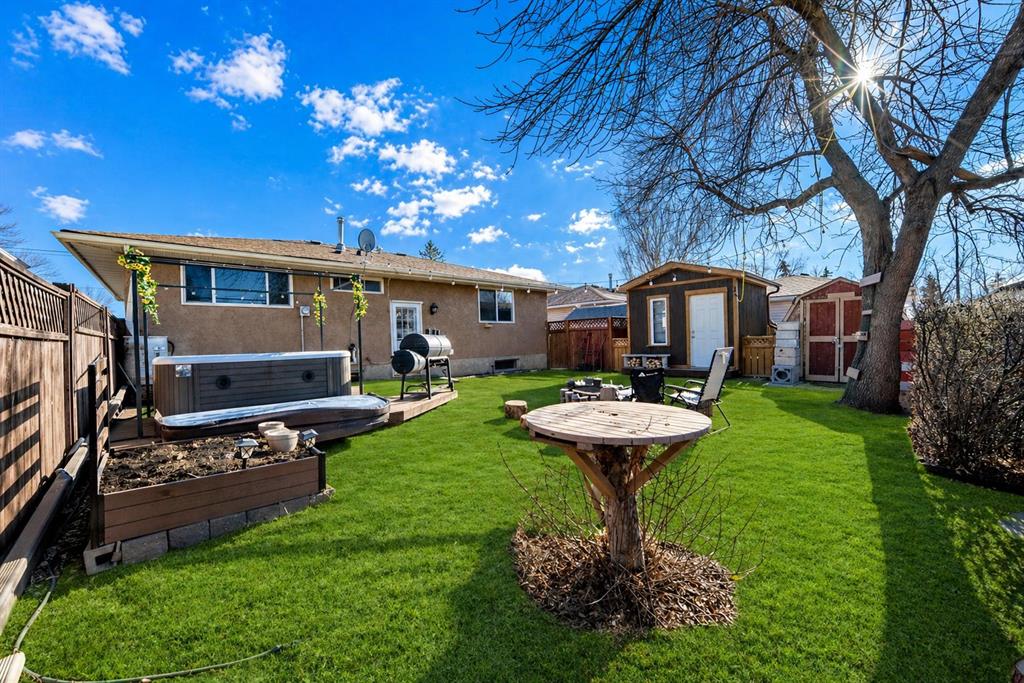 | 3 BEDS | 2 BATHS | SUITED | SEPARATE ENTRANCE | LARGE YARD + HOT TUB | Convenient Location! | Welcome to this bright and inviting bungalow offering a functional layout and excellent flexibility for a variety of lifestyles. Featuring 2+1 bedrooms, this home is well suited for first-time buyers, downsizers, or those looking for additional living space with a suited basement. The main floor showcases gleaming hardwood flooring throughout the bedrooms and hallway, complemented by ceramic tile in the kitchen, bathroom, and both entrances. Large windows in the living area fill the space with natural light, creating a warm and comfortable setting. The kitchen is thoughtfully designed with a centre island and raised eating bar, a well-sized pantry, and a full set of stainless steel appliances, making it ideal for everyday living and entertaining. The kitchen window overlooks the private, treed backyard, adding to the home’s charm. The primary bedroom features a large wall closet with ample storage, while a 4-piece bathroom completes the main level. Downstairs, the fully finished basement includes a separate entrance and offers a great setup for extended family or additional living space. With its own bedroom, bathroom, and functional layout, it adds versatility and value to the home. Additional upgrades include a CitySoft Water Conditioning System supplied and installed through Home Depot. Outside, enjoy a spacious backyard with plenty of room to relax, garden, or entertain. The patio deck and hot tub create the perfect setting year-round, whether hosting summer gatherings or unwinding in the winter. The extended front driveway provides parking for two full-sized vehicles. Storage is abundant with three sheds, including a prefabricated shed by the driveway, a wood-frame workshop with built-in cabinetry, and a mini barn-style shed. One of the standout features of this home is its elevated location. Just two blocks from the Bow River pathway, enjoy scenic views of the Rocky Mountains, Calgary skyline, and Bow River, along with nearby park benches and green space. Conveniently located with easy access to transit, including a direct bus to downtown (Bus #24 to CORE Shopping Centre). By car, Glenmore Trail SE is just minutes away, along with Riverbend Shopping Centre, Costco, Walmart, IKEA, and more. Shoppers Drug Mart, FreshCo, and other everyday amenities are also within walking distance. This home offers a great combination of functionality, space, and convenience. Call your favourite agent to book a showing today!