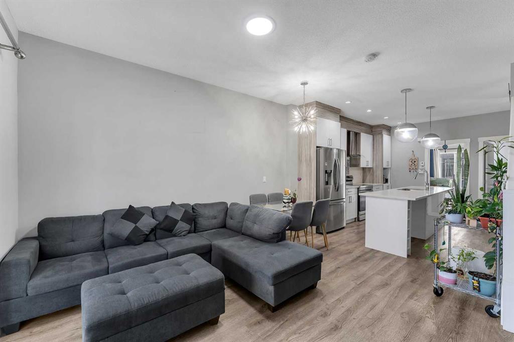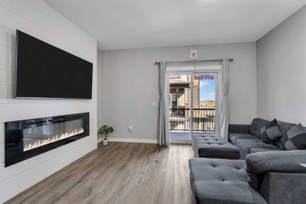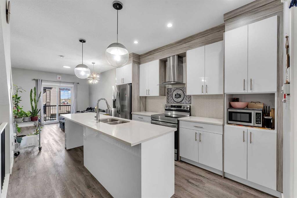 Welcome to this beautifully designed modern Townhouse with 3-BEDROOM, 3 FULL BATHROOM home with a DOUBLE TANDEM GARAGE in the highly desirable community of Skyview Ranch NE, Calgary. Perfectly combining style and functionality, this property offers an abundance of space and thoughtful upgrades throughout. The main level features a spacious double tandem garage with additional storage, ideal for vehicles, tools, or seasonal items. On the second level, you’ll be impressed by the chef-inspired kitchen, complete with glossy DUAL TONE CABINETRY, a large ISLAND WITH QUARTZ COUNTERTOPS, sleek STAINLESS STEEL APPLIANCES with a modern range hood, and plenty of counter and storage space. The open-concept living and dining area is filled with natural light from oversized windows and highlighted by a strategically placed FIREPLACE that adds warmth and character. Elegant LVP flooring enhances the modern feel, while this level also includes a bedroom and a full bathroom with a glass-enclosed standing shower, making it perfect for guests, in-laws, or a home office.