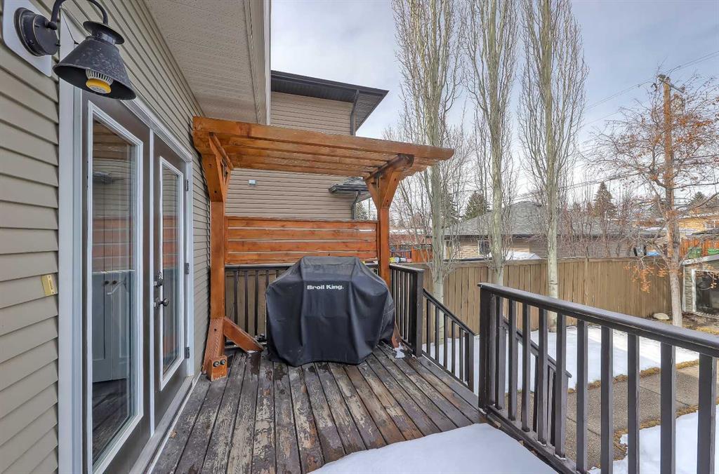 **OPEN HOUSE THIS WEEKEND: SATURDAY, APRIL 11, FROM 1 PM TO 3 PM** Unmatched opportunity to own a single-family home at the price of a townhome! Ideally located across from green space and minutes to amenities, this home offers almost 2,400 sq ft of living space with 3 beds up, 2.5 baths, and an insulated, heated double detached garage. This home welcomes you with a front porch framed by a mature tree, leading into a formal foyer. The main floor features solid hardwood flooring throughout and a bright front den perfect for a home office. The kitchen is functional, featuring quartz countertops, stainless steel appliances, a tile backsplash, ample cabinetry and a central island with butcher block counters. The formal dining area is centred underneath a designer light fixture, while the spacious living room offers a mantled gas fireplace. Step out onto the fully fenced backyard with a deck, large grassy area, dual gas lines, and a convenient storage shed. A concrete pathway leads to the insulated, heated, double detached garage. A discreet powder room near the front entrance completes the main level. Upstairs offers 3 generously sized bedrooms, including a primary suite with abundant natural light from multiple windows, a feature wall, a sitting area, and a walk-in closet. The ensuite features dual sinks, a soaker tub, and a separate walk-in shower. The 2nd and 3rd bedrooms share use of a full bath with an extended vanity and a tub/shower. A dedicated laundry room with tiled flooring, built-in storage, a window and a side-by-side washer and dryer complete the upper level. The basement is partially developed, offering a recreation room and a den, plus a bathroom rough-in is already in place for future development. This home also comes with a newer water tank and central air conditioning. Enjoy being just minutes from numerous options for shopping, dining, and other daily necessities. Perfectly situated on a quiet street overlooking a park/playground, this home is minutes away from the Bow River Parks and Pathways. Plus, other nearby parks and amenities include Shouldice Park, Bowness Park, the Alberta Children’s Hospital, Foothills Hospital, the University of Calgary, and WinSport. This home is right across Our Lady of the Assumption School and close to Bowness High School, Bowness Community Association, and Bowness Skate Park, plus it’s close to various options for shopping, restaurants, and amenities such as Superstore and many local favourites, including Salt & Pepper, Cadance Coffee, and Bow Cycle… to name a few!