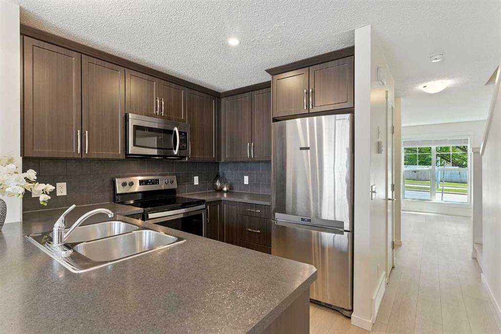 A low-maintenance dream in this bright and recently renovated townhouse. Located in the best part of Cochrane. It has everything you will need for today’s modern living – proximity to shopping, dining, parks, and schools! Upgraded throughout, with gorgeous new Luxury vinyl plank floors, new carpet up and new blinds! Stylish neutral tones flowing through a bright and open concept layout consisting of a spacious living room, generous dining area, and gorgeous kitchen, featuring rich full-height cabinetry, a custom tile backsplash, and sleek stainless steel appliances. The western-exposure patio is perfect for al fresco dining in sunny weather, with space for a bbq and your outdoor furniture. Both bedrooms upstairs are a good size with plenty of natural light, with the master retreat offering a private ensuite with granite counters and linen storage. The basement comes insulated and unspoiled awaiting your creativity. Outstanding home in a fantastic location. Quick possession! See yourself living here today!