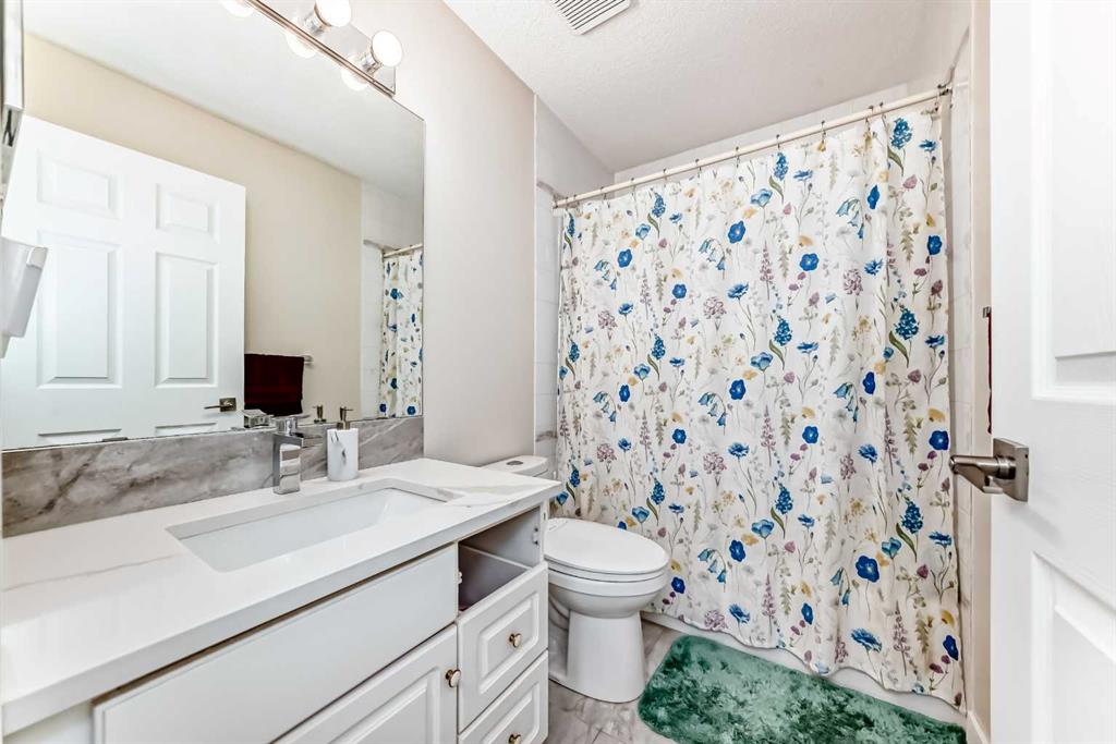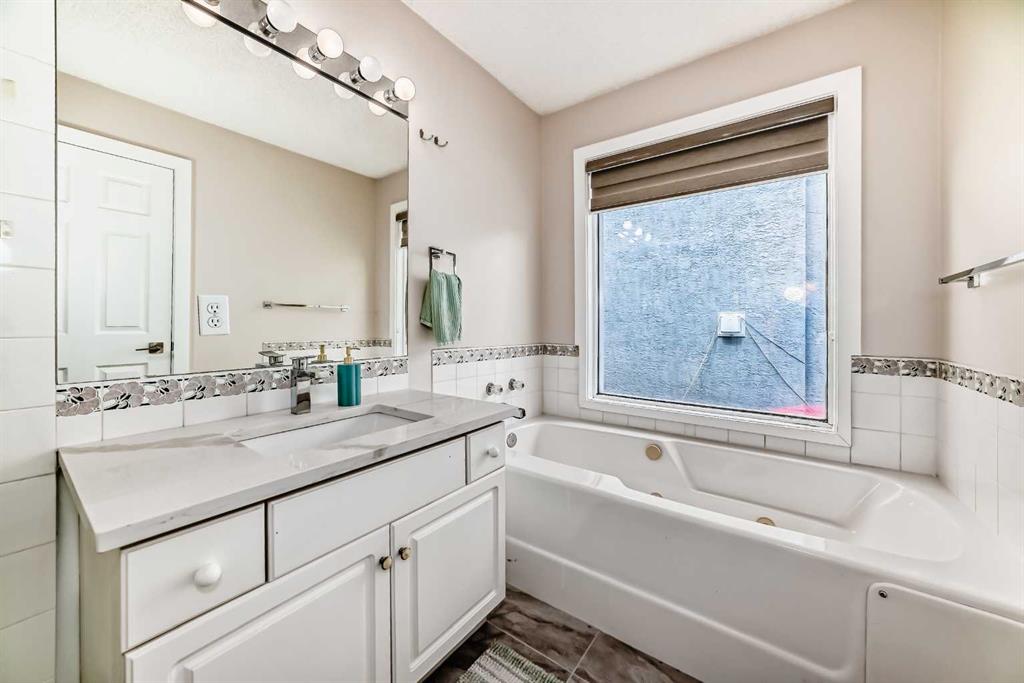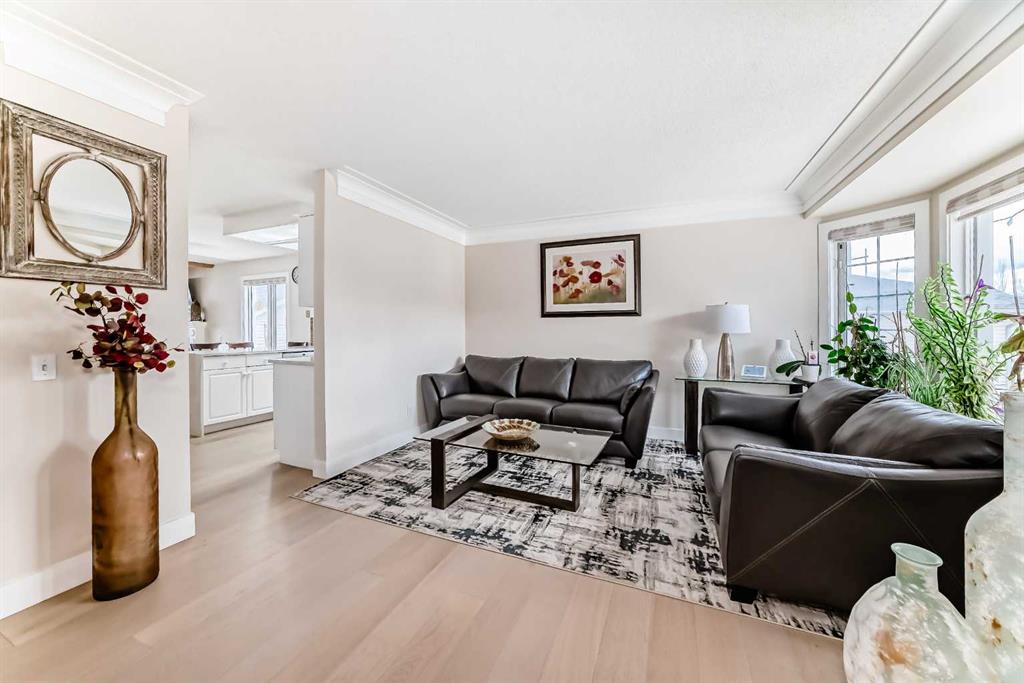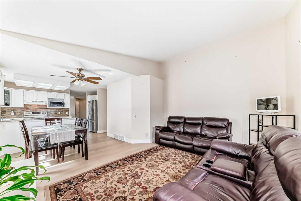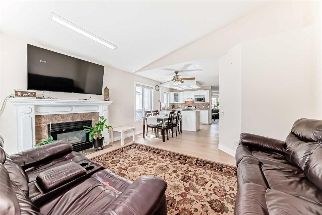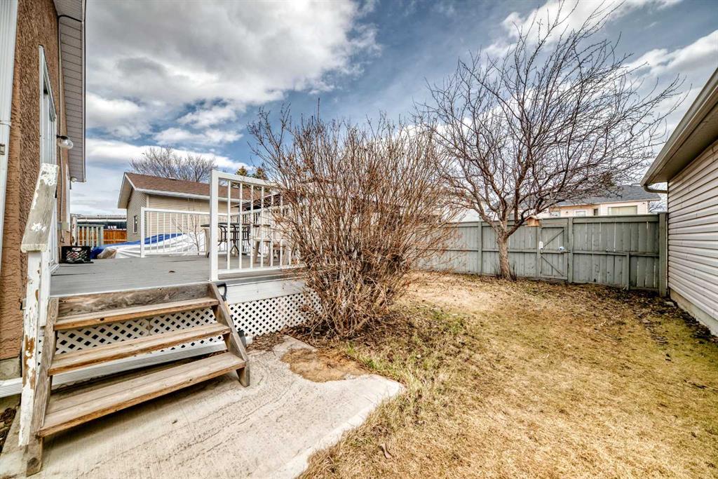 Fully renovated , This former show home is meticulously cared for and shows pride of ownership! Easy to please palette with neutral paint and flooring colors. The front facing formal dining room (or flex area) has decorative ceiling cornice and a sunny bay window. Fresh white cabinetry, peninsula island, glass door inserts, fridge, stove, dishwasher and stainless fridge in the kitchen. The main floor plan is perfect for easy flow between the kitchen, spacious eating nook and living room. Windows and vaulted ceilings add to the openness of the space. There is a cozy gas fireplace to add warmth on the cooler days. Patio access to the west facing back deck (14×9) which is covered in durable and easy care newer trek decking. Upper cabinets provide extra storage in the main floor laundry. The Master bedroom has decorative wood detail and vaulted ceilings as well as a walk in closet and jetted tub and shower en suite. The lower level has two more bedrooms and a very large open rec are as well as a 3 piece bath. There is RV parking in the rear with convenient power and water hook ups .