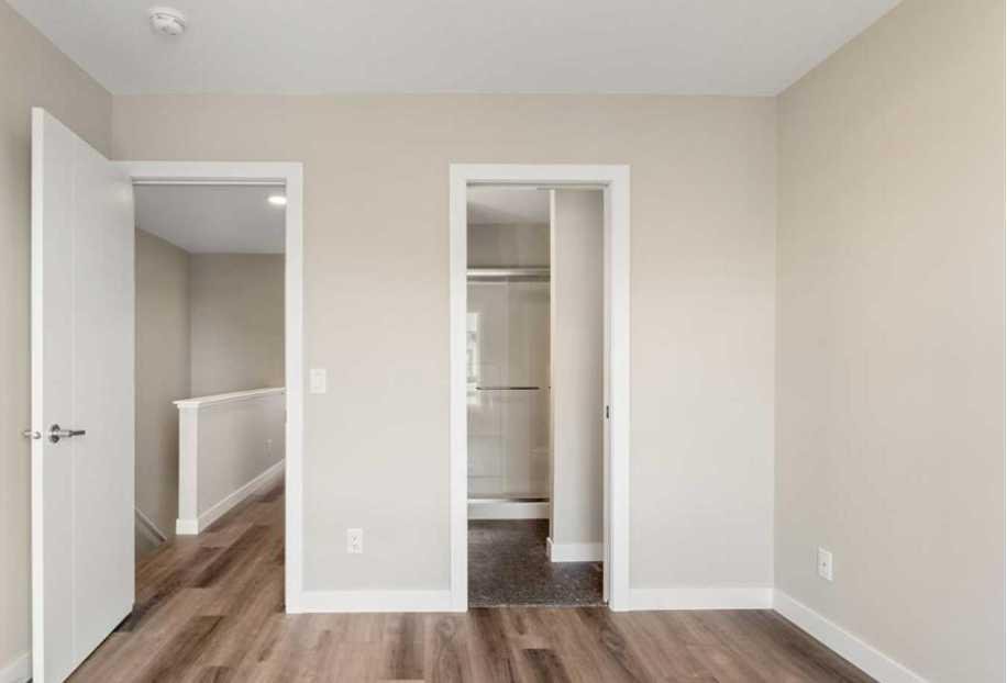Welcome to Chelsea Court, a stylish two-bedroom, two-and-a-half-bathroom townhome in Chestermere’s vibrant Chelsea community. With over 1,100 sqft of thoughtfully designed living space, the open-concept main floor connects the kitchen, dining, and living areas, enhanced by large windows and air conditioning rough-ins. The kitchen features quartz countertops, rich cabinetry, and stainless steel appliances, with a half bath completing the level. Upstairs, the primary bedroom offers a four-piece ensuite and spacious closet, while the second bedroom has its own ensuite and walk-in. Laundry is conveniently upstairs as well. Durable Hardie board siding, a double tandem garage, and a private balcony add lasting value. Just minutes from Chestermere Lake, parks, shops, and Calgary access, this Trico Homes townhome offers modern comfort, convenience, and style. Photos are from a completed unit and are representative.