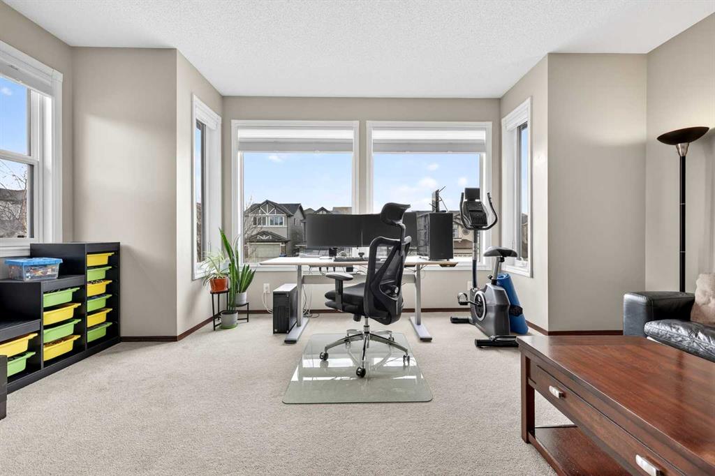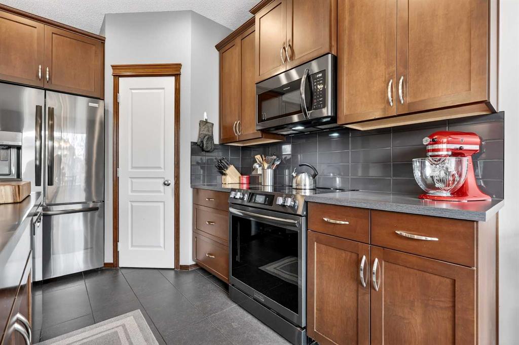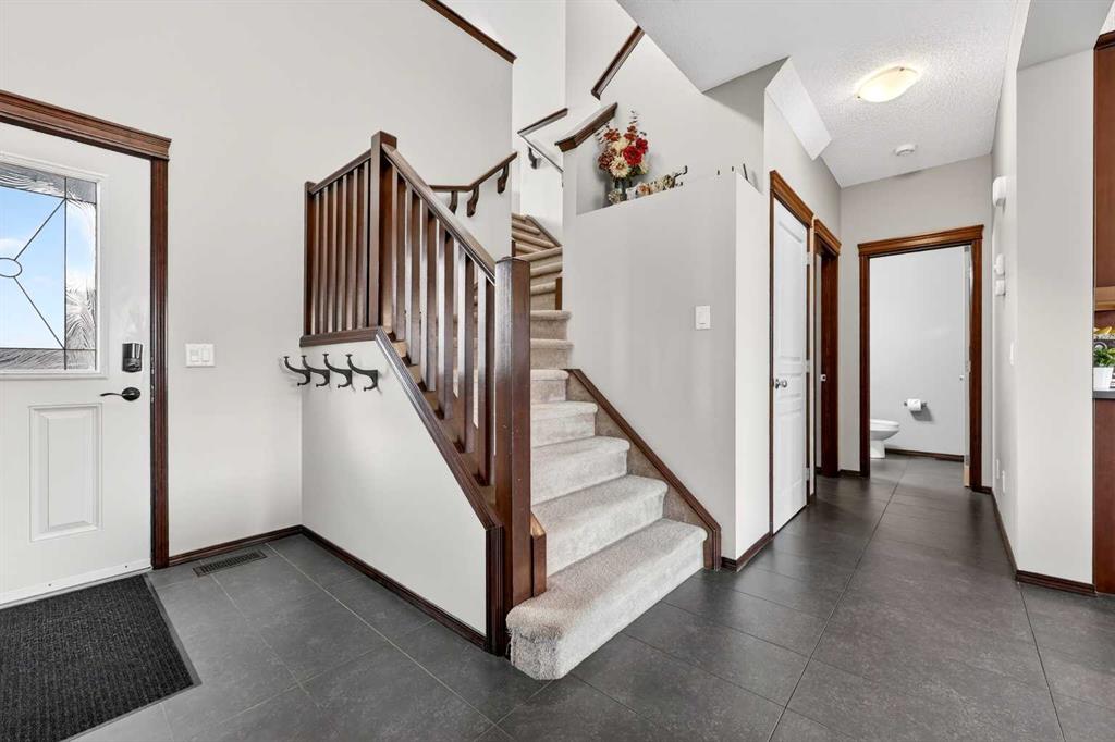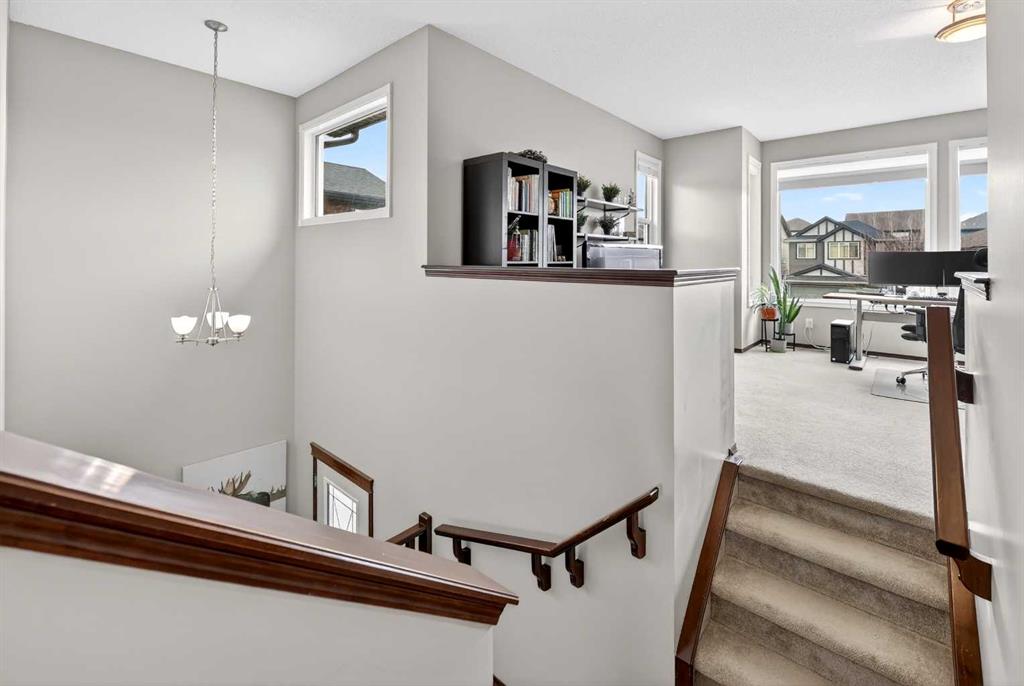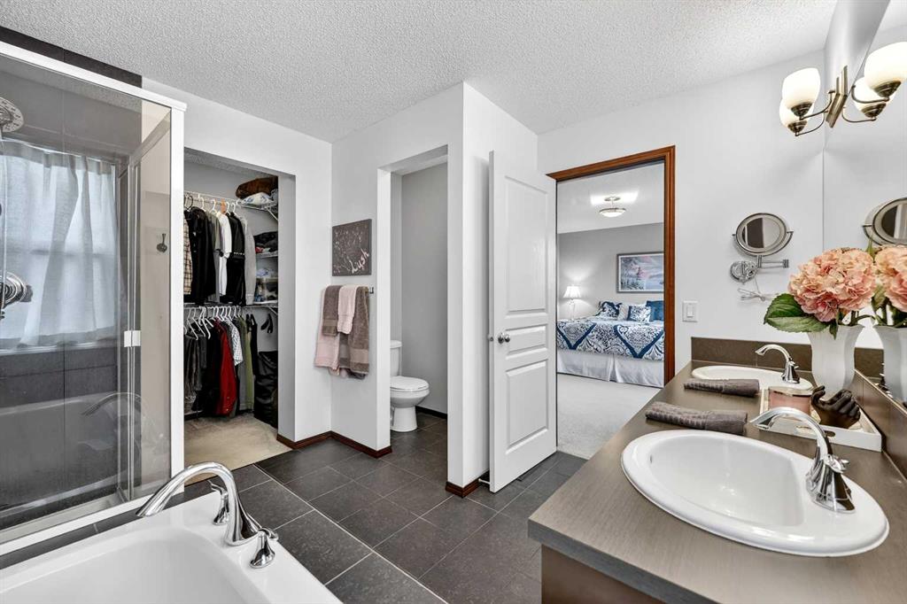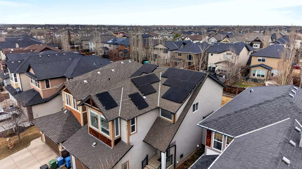 *Open House Sunday Apr 19, 1:30-3:30pm* Welcome to this warm and welcoming 2-storey family home nestled in the desirable lake community of Auburn Bay. This beautifully maintained residence offers 3 spacious bedrooms, 2 full bathrooms, a convenient half bath, upper level bonus room, along with a double attached garage. With energy efficiency in mind, it features solar panels that generate over 7,500 kWh of electricity each year. Also, triple-pane windows with UV protection for superior insulation against both heat and sound (installed 2024 w/ 25 year warranty), black-out shades on all west-facing windows & central air conditioning. This home even provides a comprehensive 8-camera Lorex self-monitoring home security system. As you enter through the grand two-storey high foyer, you’re greeted by soaring 9 foot ceilings that flow throughout the main level. The open concept layout seamlessly connects the living, dining, and kitchen, all brightened by large windows that fill the home with natural light. Ceramic tile flooring runs throughout the main, with a rich hardwood accent in the living area. The heart of the home is the spacious kitchen, complete with abundant cabinetry, a stylish tile backsplash, walk-in pantry, and premium dark stainless steel Frigidaire appliances installed in 2024. A large central island provides extra workspace, a stainless steel sink, plenty of storage, breakfast bar, and elegant pendant lighting. The adjacent living area features a cozy gas fireplace, while the dining space opens directly onto the spacious deck that’s ideal for summer BBQs or watching the kids play in the yard. The deep backyard is nicely landscaped with established trees and bushes, garden beds, fire pit, and a storage shed. A 2-piece powder room and convenient main floor laundry room complete this level. Upstairs, the primary bedroom is a peaceful retreat with a large window, a luxurious 5-piece ensuite bathroom boasting double sinks, a deep soaker tub, a walk-in glass & tile shower, beautiful tile flooring, and an expansive walk-in closet. Two additional good-sized bedrooms share a 4-piece bathroom with tile flooring, a tub/shower with tile surround, and built-in shelving for linens and storage. You’ll also love the sunny bonus room with large west facing windows, flooded with natural light and perfect for a home office, play area, or cozy media space. The unfinished basement offers a blank canvas with roughed-in bathroom plumbing, ready for your personal touch. Located in central Auburn Bay, this home sits peacefully away from highway noise while still benefiting from bus routes and regular snowplowing. It’s a vibrant lake community centered around a stunning 43 acre freshwater lake – offering access to year round fun including swimming, kayaking, fishing, and winter ice skating. With a 5 minute walk to four different schools and numerous parks, plus quick access to the popular Dog Park and scenic Greenway trails, you’re also just a short drive from South Health Campus.