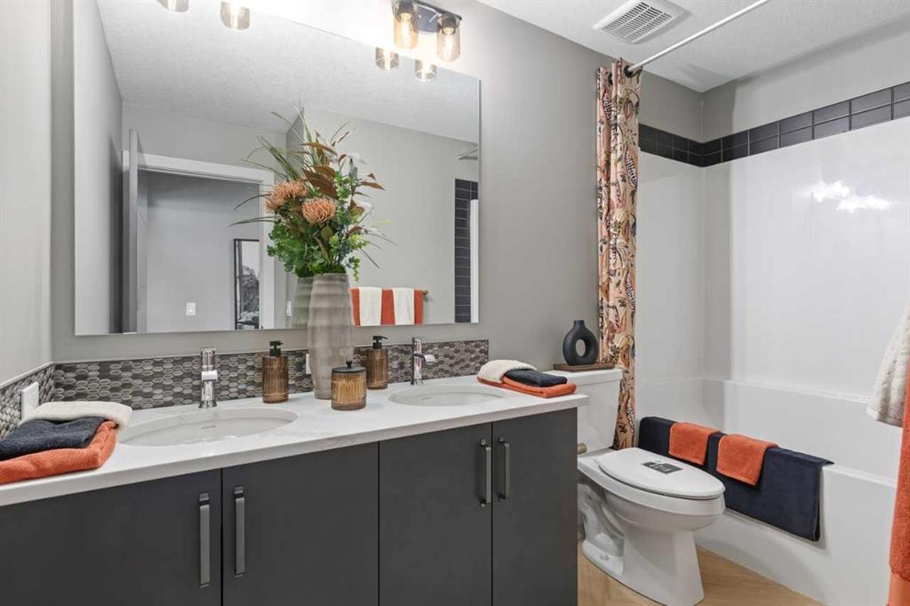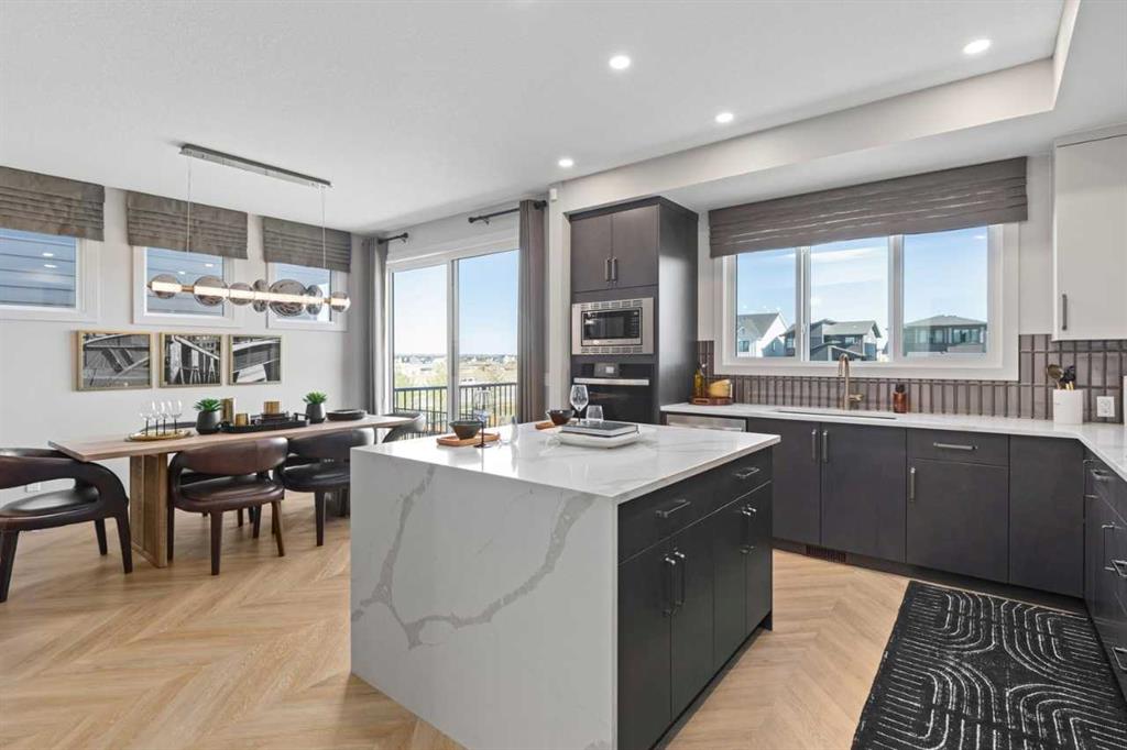 Welcome to the Capone — where bright, modern living meets thoughtful design. This home showcases on-trend, designer-curated interior selections tailored for a home that feels personalized to you. Energy efficient and smart home features. Step inside to an inviting main floor enhanced by LVP flooring and abundant natural light. The rear kitchen is a standout, featuring built-in stainless steel appliances, quartz countertops with undermount sinks, a walk-in pantry with French door, and a spacious island perfect for gatherings. Enjoy easy access to the rear deck for outdoor living. The great room offers a cozy electric fireplace with a mantle, creating the ideal space to relax. Upstairs, the luxurious 5-piece ensuite includes tile flooring, a tiled shower, and a generous bank of drawers—also found in the main bath for added convenience. A beautiful balcony adds even more space to unwind. This energy-efficient home is Built Green certified and includes triple-pane windows, a high-efficiency furnace, and a solar chase for a solar-ready setup. With blower door testing that may be eligible for up to 25% mortgage insurance savings, plus an electric car charger rough-in, it’s designed for sustainable, future-forward living. Featuring a smart home technology, this home includes a programmable thermostat, ring camera doorbell, smart front door lock, smart and motion-activated switches—all seamlessly controlled via an Amazon Alexa touchscreen hub. Photos are representative.