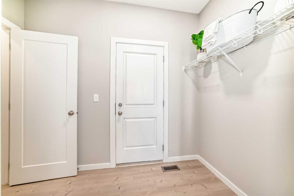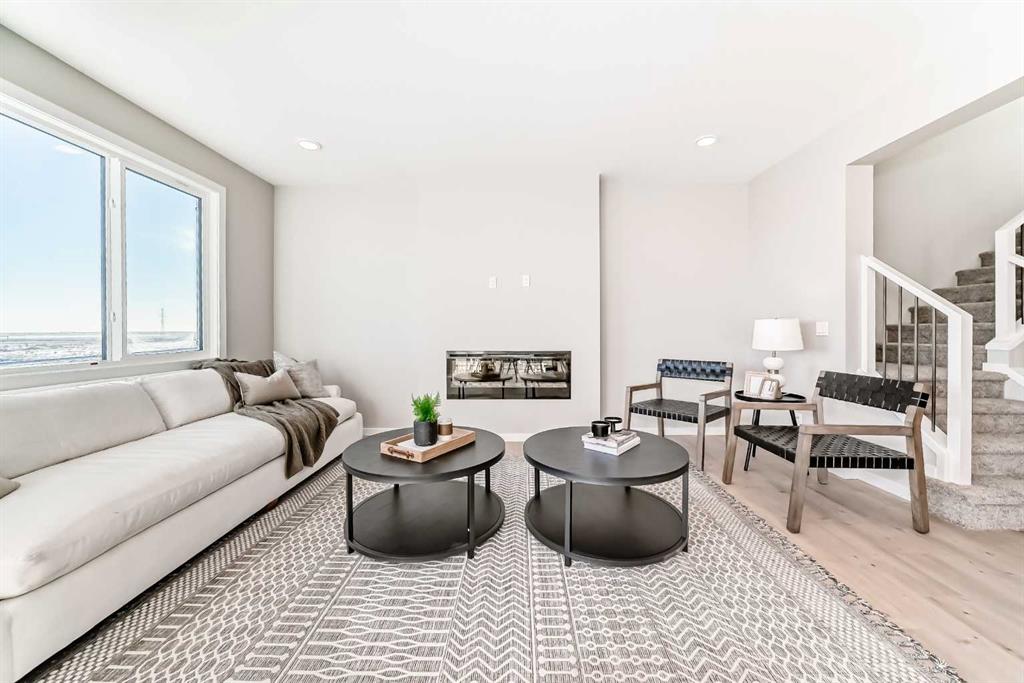 The main floor works because the transitions were planned, not improvised. Garage to mudroom to WALK-THROUGH PANTRY to kitchen, it’s direct and efficient. The living area is defined by a full-height fireplace feature wall that gives the room structure without closing it in. A wide, UPGRADED TRIPLE PATIO DOOR opens to a raised deck with stairs down to the yard—NO NEIGHBOURS DIRECTLY BEHIND, no awkward sightlines, no need to negotiate privacy.