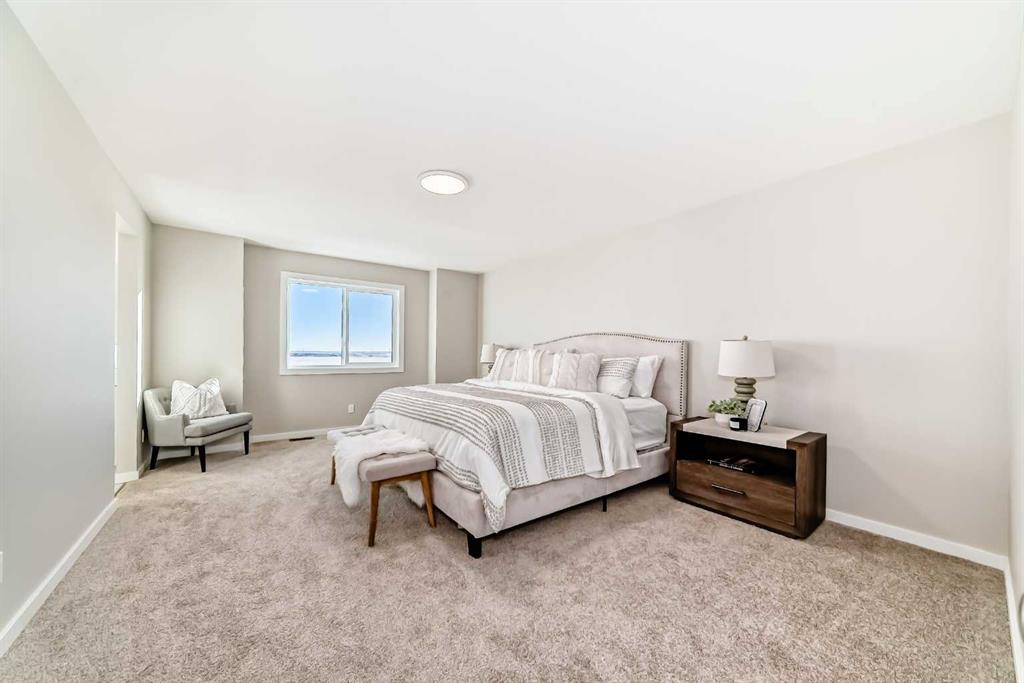 Upstairs, the square footage is spent where it matters. The bonus room is large enough to absorb noise and activity, not just decorate a floorplan. FRENCH DOORS lead into the primary bedroom, where the ensuite is properly scaled: DUAL SINKS, TILED SHOWER, AND SOAKER TUB arranged with intention. Both secondary bedrooms include walk-in closets, and the upper laundry—with folding counter—keeps daily routines contained to one level.