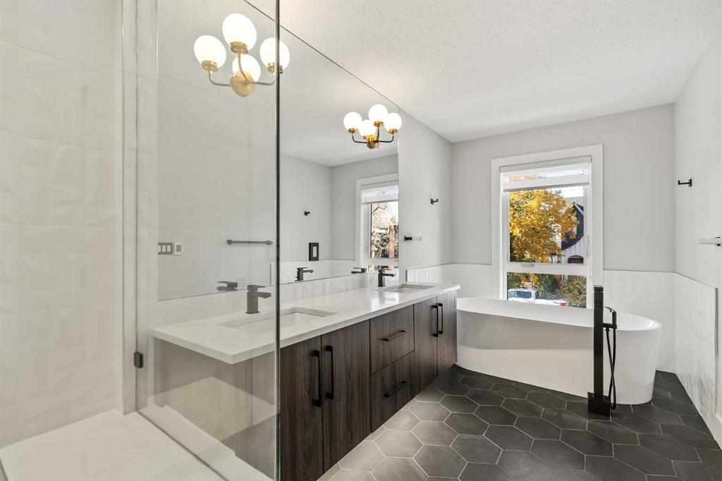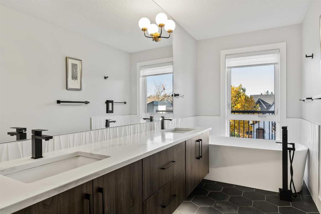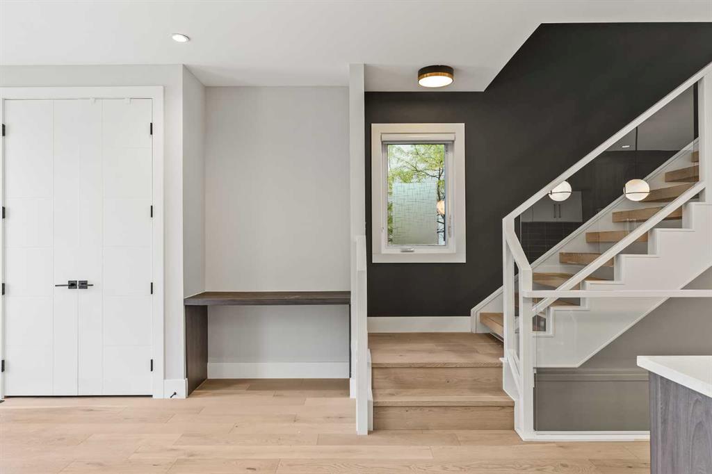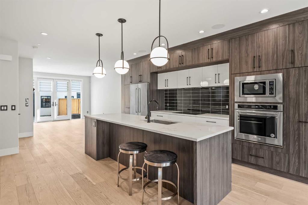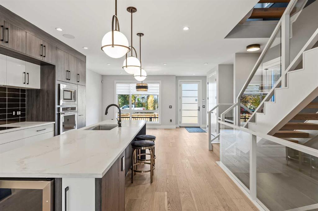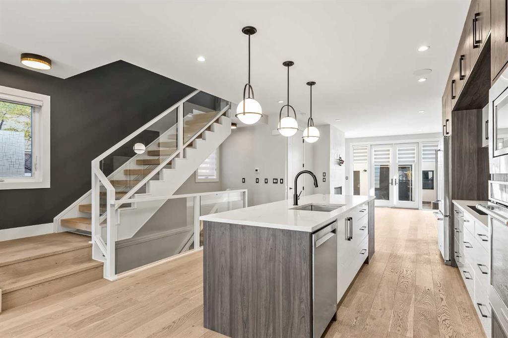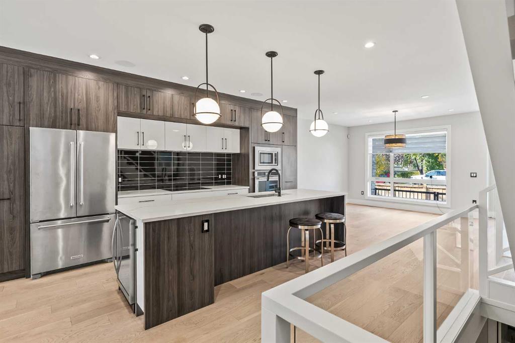 Wow! Impressive $40,000 PRICE REDUCTION! Wonderfully situated in the coveted community of Hillhurst, this 3,800 plus SF custom home presents like new while delivering an impressive list of upscale features including 5 bedrooms (2 primary bedrooms with ensuites), 5 bathrooms (2 steam showers), 2 laundry rooms, 2 fireplaces, a stunning open staircase & ELEVATOR! The bright main floor boasts a designer kitchen with extended cabinetry & pull-out pantry, stainless steel appliances with induction cooktop, beverage fridge, quartz countertops & a vast island with seating for 4. An oversized dining area easily accommodates large gatherings while the stylish living room with fireplace and glass doors opens seamlessly to the backyard. A chic powder room & practical mudroom with built-in storage complete this level. Upstairs, the striking open-riser staircase with glass panels leads to two full floors of hardwood-accented luxury living. The 2nd level is ideal for families offering two spacious secondary bedrooms with closet organizers & a beautifully upgraded 4-piece bath with heated floors. The 1st primary suite shares this level & is an excellent option for parents with young children. Featuring oversized windows, a custom walk-in closet & a spa-inspired ensuite with dual sink quartz vanity, freestanding tub, steam shower, & heated floors. A well-equipped laundry room with sink, quartz folding counter, & cabinetry adds convenience to this level. The 3rd floor is dedicated to refined living, highlighting a 2nd primary retreat with walk-in closet, lavish ensuite (dual quartz vanity, freestanding tub, steam shower, heated floors) & access to a sun-drenched private balcony overlooking the treetops. A spacious owner’s lounge with wet bar provides the perfect setting to relax, work from home, or enjoy quiet evenings. Completing this floor is a 2nd laundry room. The lower level brings family & friends together in a cozy family room with fireplace & a full wet bar with beverage fridge. A large 5th bedroom & 5th bathroom with heated floors round off this comfortable space. Other notable upgrades in this executive residence include a double insulated & drywalled garage with unique front & back doors allowing for additional parking, air conditioning, in-floor heating in ALL bathrooms, an elevator to age-in-place or accommodate multi-generational living, custom built-ins in ALL closet, a 75-gallon hot water tank, 200-amp electrical panel, built-in ceiling speakers & security system. Nestled just steps to parks, trendy restaurants, & the vibrant Kensington district, this luxury property offers a perfect balance of tranquillity & urban convenience. Its proximity to the Bow River, downtown, University of Calgary, SAIT & Foothills Hospital provides a remarkable location for work & play. With easy access to Memorial Drive & Crowchild Trail, this is a rare opportunity to own a magnificent property in one of Calgary’s most desirable neighbourhoods.
