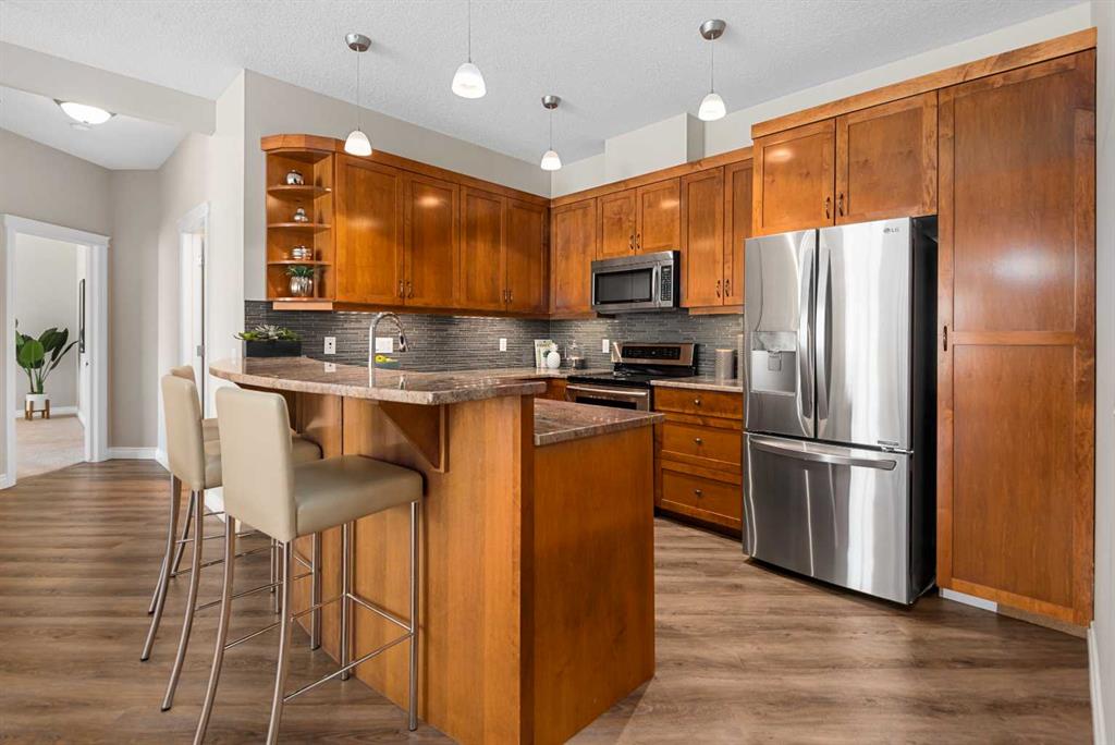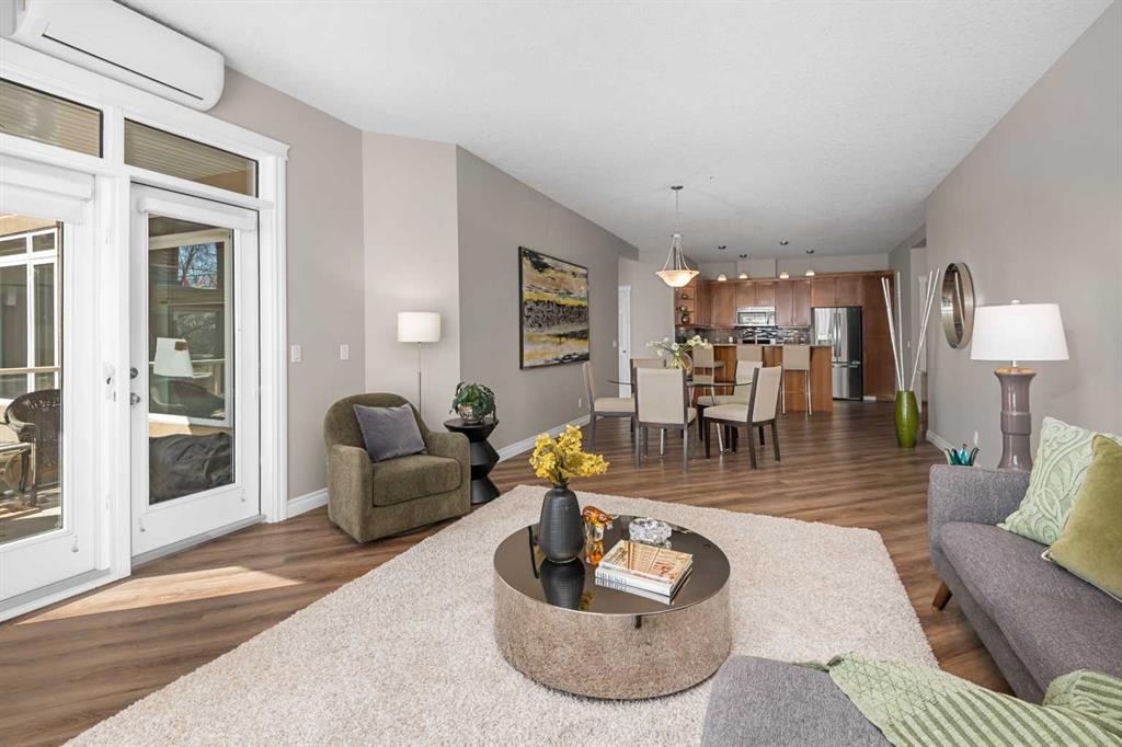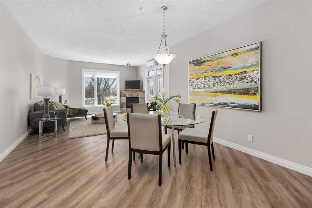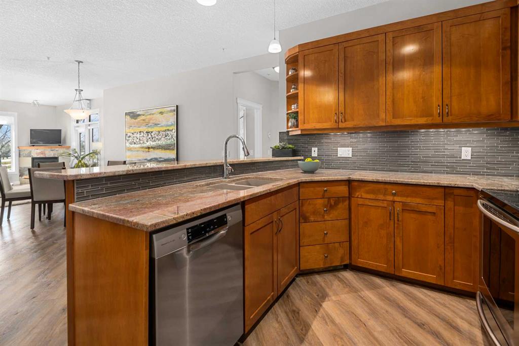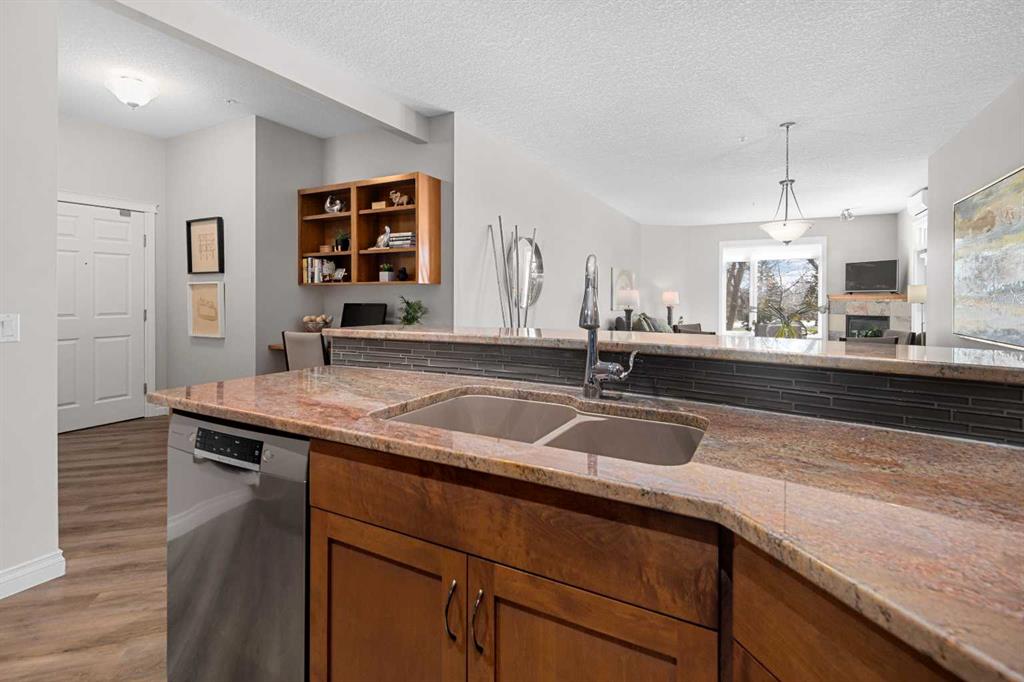 Welcome to Copperwood II—where refined living meets an exceptional natural setting. This immaculate, fully updated 1,340 sq. ft. residence offers a rare opportunity to enjoy style, comfort, and a truly unmatched location backing directly onto the tranquil Shaganappi Golf Course. What truly sets this home apart is its thoughtfully designed layout with no wasted space, allowing every square foot to be both functional and elegant. Expansive windows showcase beautiful, private views while filling the home with natural light, enhanced by 9-foot ceilings, Hunter Douglas window coverings, and fresh, modern paint throughout. The interior has been tastefully upgraded to reflect both quality and sophistication. Highlights include new luxury vinyl plank flooring (2022), a refaced fireplace, and custom California Closets. A dedicated office space features built-in cabinetry, ideal for today’s work-from-home lifestyle. The kitchen is both stylish and practical, offering light granite countertops, a newer backsplash, and stainless steel appliances—all updated within the past five years. Both bathrooms have been refreshed with matching contemporary plumbing fixtures for a cohesive finish. Comfort is prioritized year-round with in-floor heating, a powerful 2-ton A/C unit, and a convenient BBQ gas line for outdoor enjoyment. The home also includes an oversized titled underground parking stall in an ideal location near the elevator, along with a generous 4′ x 10′ private storage unit. Copperwood II is a well-managed, financially strong, and exceptionally quiet complex known for its quality of living. Residents enjoy a full range of amenities, including secure bike storage, a car wash bay, a fully equipped fitness centre, a woodshop, and a guest suite. Condo fees remain very reasonable, supported by a proactive and reliable board. The location is truly second to none—offering the peace and privacy of a golf course setting while being just minutes from downtown, grocery stores, the LRT, major roadways, and an extensive network of walking and biking paths. In the winter months, step outside to enjoy cross-country skiing or snowshoeing right from your doorstep.