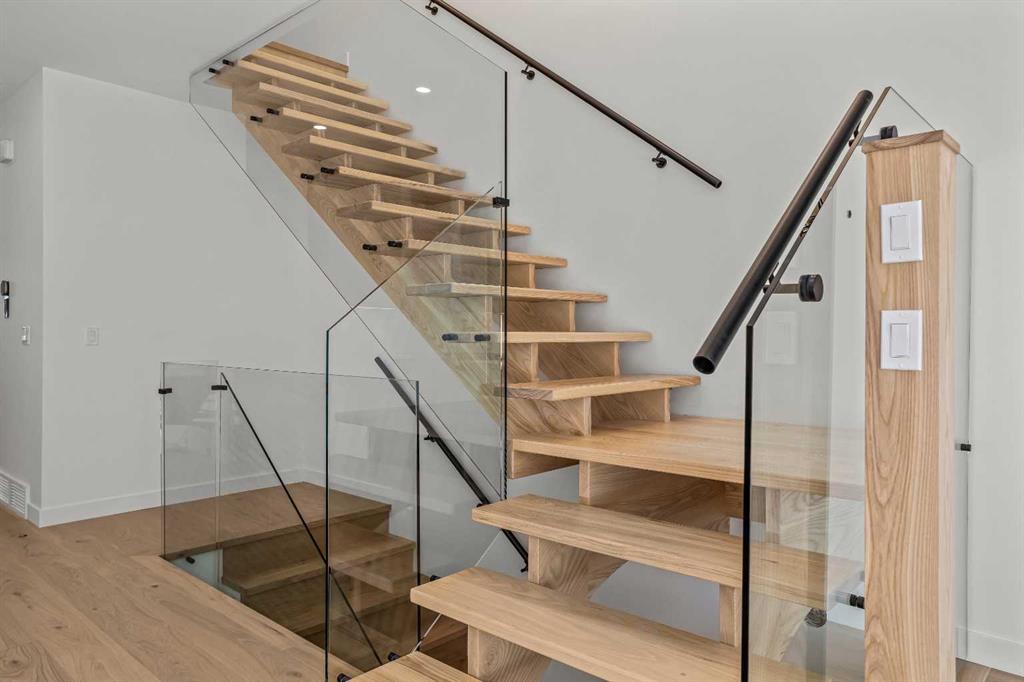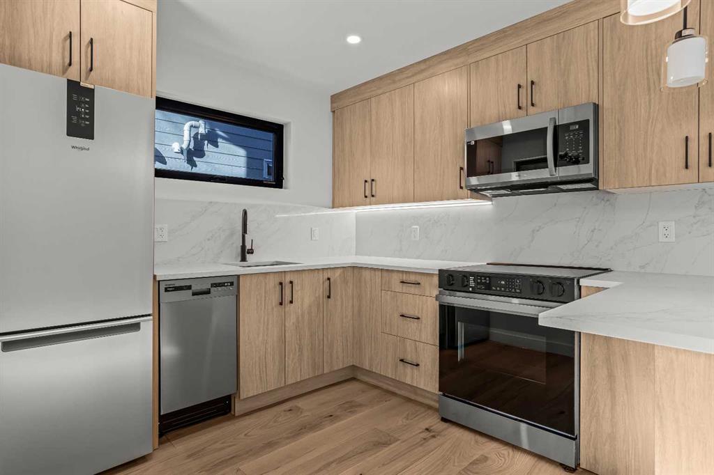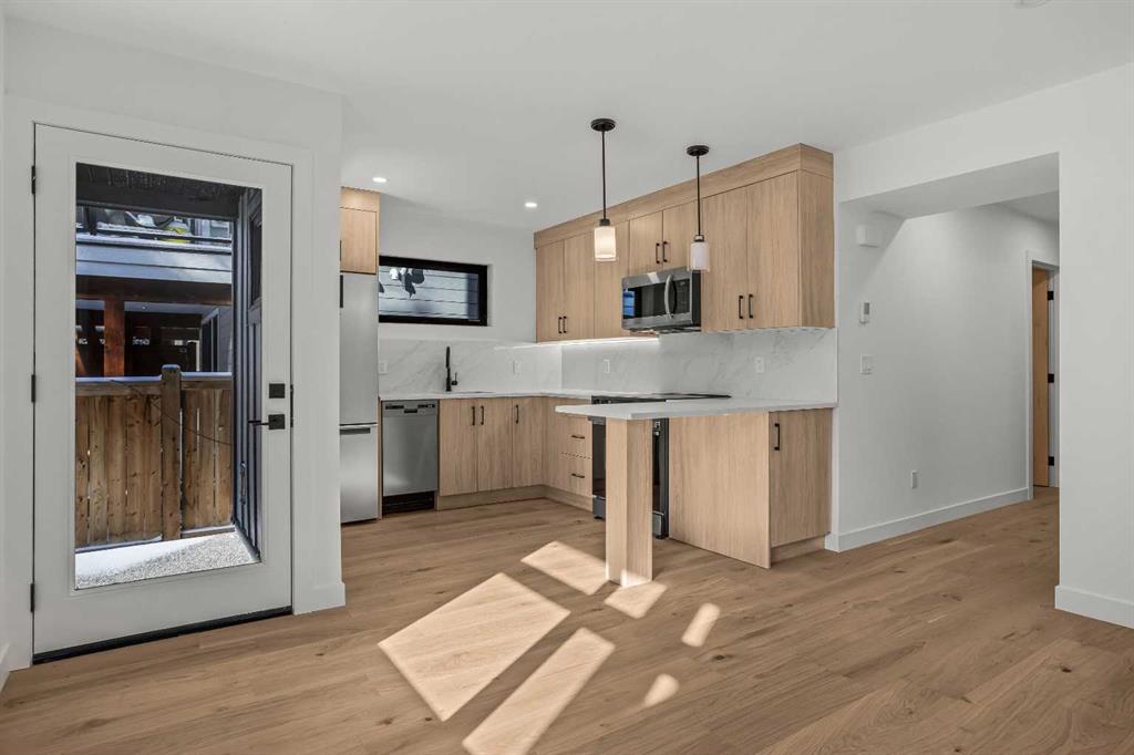 Experience modern mountain living in this brand new stunning 5-bedroom, 5-bathroom duplex, perfectly situated in the heart of South Canmore. Built by the renowned Lakusta Homes, this architectural gem features a sleek shed roof design and a thoughtfully crafted floor plan, offering both style and functionality. With a legal suite featuring a private entrance, it’s ideal for generating rental income or accommodating extended family. The heated double car garage provides convenience and comfort, especially during chilly mountain mornings. Designed for easy accessibility, the main floor offers one-level living, while the south-facing orientation ensures year-round natural light and breathtaking mountain views. Located just steps from the Bow River and scenic walking trails, this exceptional home combines modern design with mountain charm, offering the perfect retreat in one of Canmore’s most desirable neighborhoods.