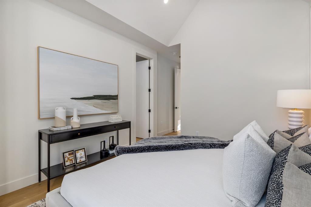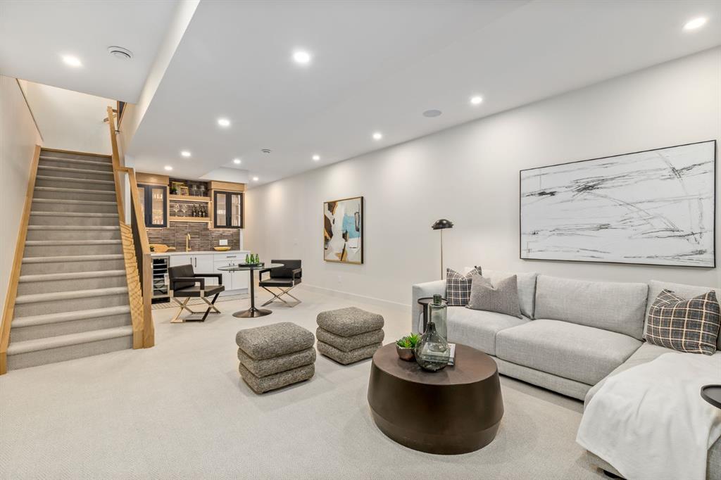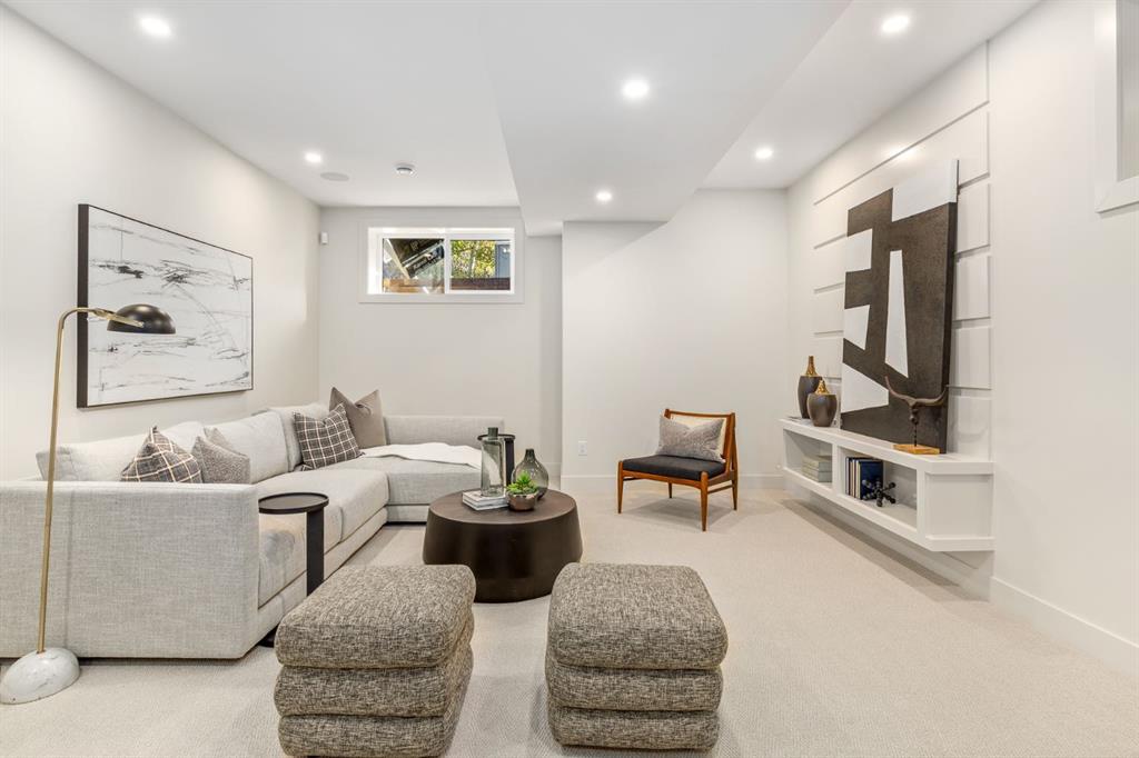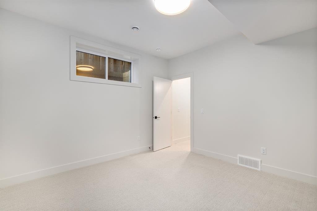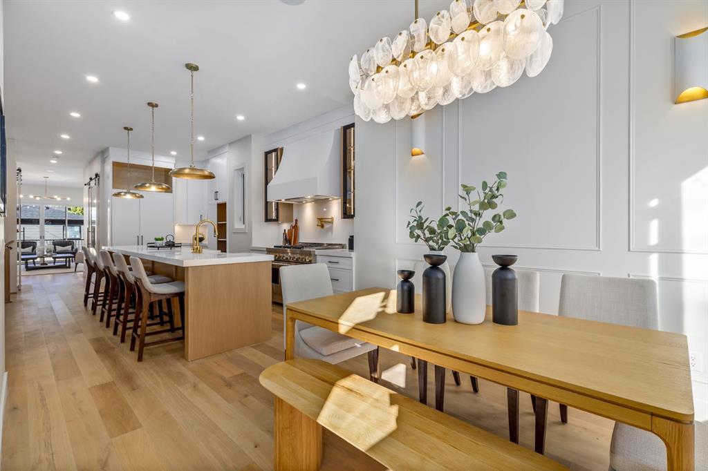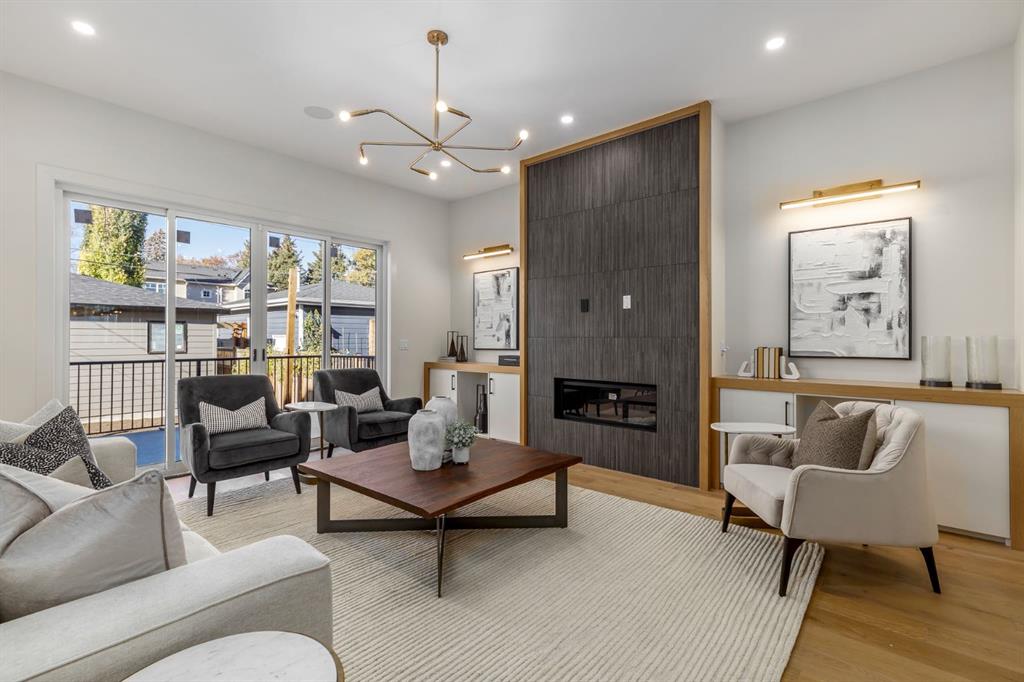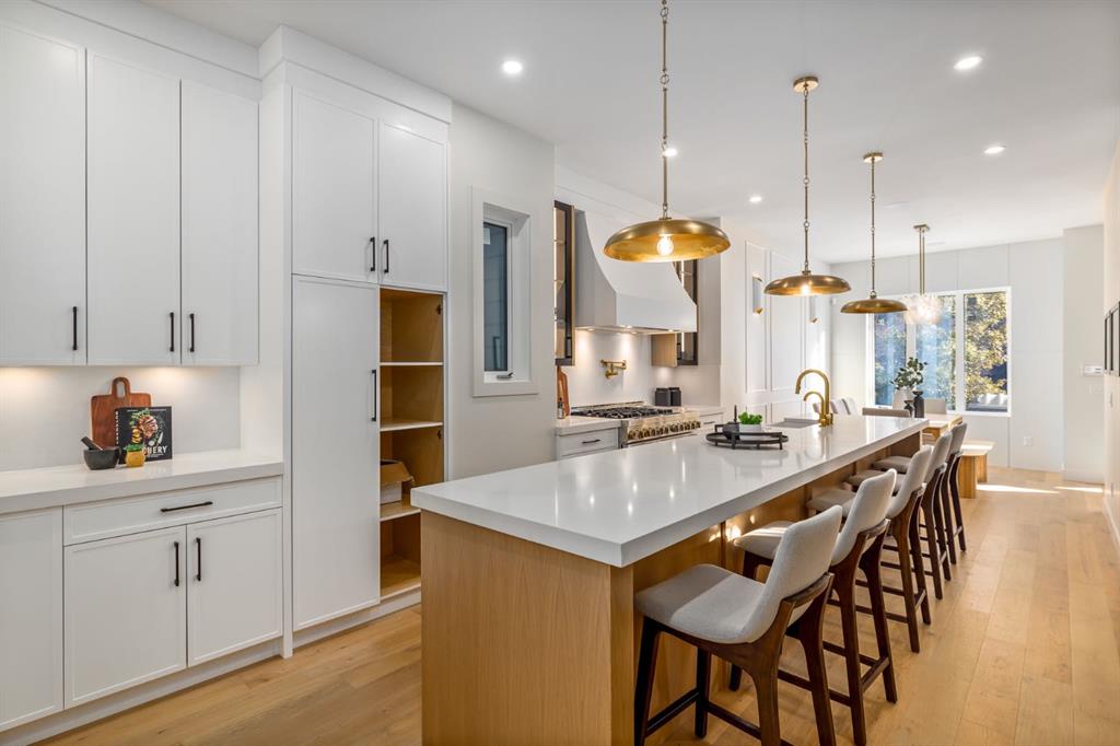 OPEN HOUSES Sat Jan 17th 2-4PM, Sun Jan 18th 2-5PM! Experience elevated inner-city living with this impeccably designed, brand-new home nestled in one of Calgary’s most sought-after neighbourhoods: Hillhurst. Constructed by a trusted local builder known for craftsmanship, functionality, and aesthetic excellence, this 2-storey residence offers 2,224 SF above grade, with a fully developed basement, 4 bedrooms, and 4.5 bathrooms—a perfect blend of modern luxury and thoughtful detail. From the striking brick facade to the high-end engineered wide plank oak hardwood, every inch of this home exudes quality. The main floor welcomes you with a built-in entry feature and a front formal dining area, accented by elegant wall mouldings, white and gold sconces, and a designer chandelier. At the other end, an open-concept living room is a showstopper, featuring a large-format textured tile fireplace, custom built-ins with display lighting, and massive patio sliders leading to a west-facing, 135-ft deep backyard with a raised patio and gas line—ideal for indoor-outdoor entertaining. The chef’s kitchen is nothing short of stunning, complete with a 2.5″ thick quartz island, panel-ready fridge/freezer with knurled handles, sleek quartz countertops, a gas range with pot filler, and backlit display cabinets framing the custom hood fan. You’ll also find a farmhouse sink, full slab backsplash, hidden coffee/appliance nook, built-in pantry, and a drawer-style microwave—each designed to inspire culinary creativity. Tucked behind a barn-style sliding door, the den offers a quiet workspace with a built-in desk, shelving, and bright window. The mudroom, also with a barn door, features tiled flooring, a built-in bench, and a large closet for seamless organization. Upstairs, each of the three spacious bedrooms come with walk-in closets and custom built-ins, along with private ensuites. The primary is sure to impress with vaulted ceilings, a LED-lit feature wall, statement gold light fixture, and a spa-inspired ensuite that boasts a steam shower, dual vanities, and a standalone soaker tub with dramatic black and white tile wall backdrop. A nearby laundry room offers convenience with a sink, folding station, shelving, and tile backsplash. The fully finished, carpeted basement, with 9-ft ceilings, is roughed in for in-floor heating and designed for comfort and versatility—featuring a spacious rec area, a TV wall with built-in components, a wet bar with lit display shelves and tile flooring, a full bath, and a large fourth bedroom with built-ins including a desk. An efficient mechanical room completes the lower level, with additional upgrades including solid core doors and built-in speakers throughout the entire home. Perfectly situated just steps from shops along 14 St NW and walking distance to Kensington Village, Calgary’s extensive river pathways, and the Downtown Core—this is urban luxury at its finest. Act now and make this exceptional Hillhurst property your forever home.