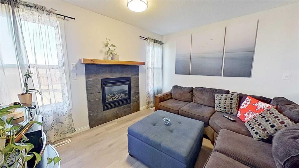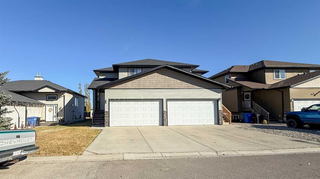 This 2009 duplex has been extensively updated in 2019, featuring vinyl plank flooring and a custom kitchen with appliances. The open-concept main floor is designed for entertaining, with a spacious dining area, large island, and living room with fireplace. Upstairs includes a private primary suite with ensuite, three additional bedrooms, and upper-level laundry. The unfinished basement offers interior and walk-out access with great potential for future development. Located in the community of Carstairs, close to schools, parks, shops, and convenient highway access. Enjoy the fully fenced yard, oversized double garage, and additional parking pad. Modern and ready to move in.