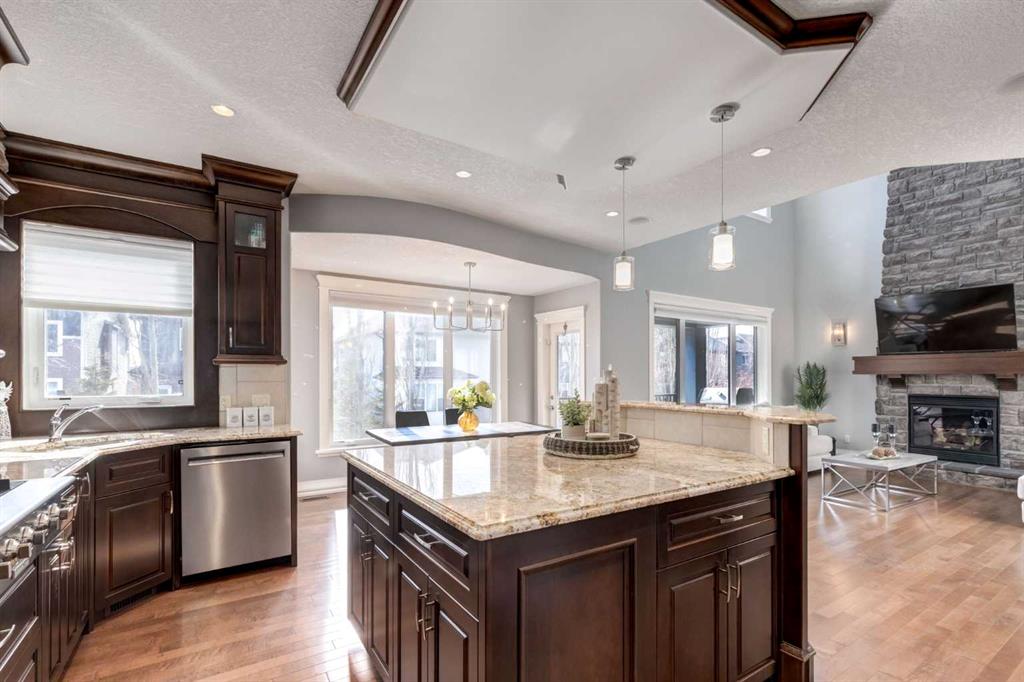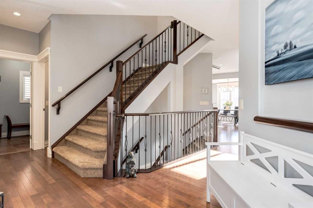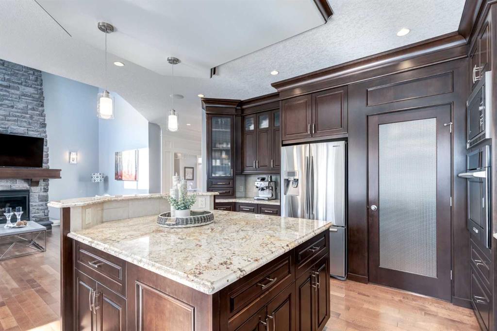 EVERY detail of this Trillium crafted walkout home has been thoughtfully designed and meticulously finished. Offering fully developed, exceptional indoor & outdoor living spaces, all that’s left to do is MOVE IN! Welcome home… Inside, just off the massive Foyer are 2 organized closets, and a private main floor Office with glass French doors & cozy carpet, perfect for working from home. The Great Room is filled with natural light from the vaulted ceiling and huge south-facing windows, anchored by a stunning floor-to-ceiling stone gas fireplace. A showstopping Kitchen boasts cathedral ceilings, rich full-height cabinetry, top quality SS appliances inclusive of a gas stovetop & built-in oven, and an OS eat-up island with practically placed drawers and cupboards. All connecting to a fully equipped walk-through Butler’s Pantry that is one-of-a-kind, with cabinetry, counter space & tucked away organized shelving. The Dining area is surrounded by windows, and steps outside to a spacious, covered deck with views of the greenspace pathways. Completing the main-level is a Mudroom off the walk-through Pantry for added everyday convenience, and a 2-pc Powder Room. A wide carpeted staircase with spindled railings leads upstairs, open to below creating bright & airy vibes. The Primary Suite is a fantastic retreat – with a cozy gas fireplace and a bumped-out sitting area encased in windows. The massive 5-pc Ensuite has tiled floors, a big soaker tub beneath the window, an O/S walk-in shower, double sinks with granite counters & storage tower, and a private water closet. Talk about a layout built for real life, the walk-in closet flows directly into the Laundry Room, with tile floors, a window, sink, and MORE cabinetry. Two additional Bedrooms each offer WALK-IN closets, while the 3rd Bedroom features a vaulted ceiling, all sharing a well-appointed 4-pc Bathroom. The FULLY FINISHED WALKOUT Basement is designed for entertaining and everyday living – with 9’ ceilings, recessed lights, a giant Rec Room with Wet Bar, a 4th Bedroom, and a 4-pc Bath with tile and granite finishes, and loads of great storage options! Wait until you STEP OUTSIDE… You won’t have to lift a finger to enjoy your outdoor spaces year-round! Fully fenced & low maintenance landscaped, with covered lower patio, synthetic turf grass, UG sprinklers (front & back), concrete curbing around the lush garden beds, and an extended concrete patio for your HOT TUB, overlooking the many mature trees. MORE added features in this home include: NEW window coverings on main and upper, NEW 2025 Washer & Dryer, AND Central AC! Last but not least, the O/S FINISHED Double Attached Garage that easily accommodates larger vehicles without sacrificing storage. Located just STEPS from schools, pathways, and Cooper’s Marketplace, with convenient access for commuting and shopping, this exceptional Cooper’s Crossing home truly HAS IT ALL. Come see it TODAY!