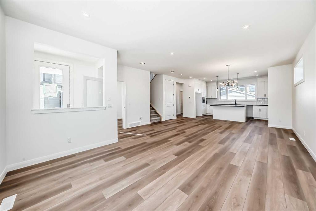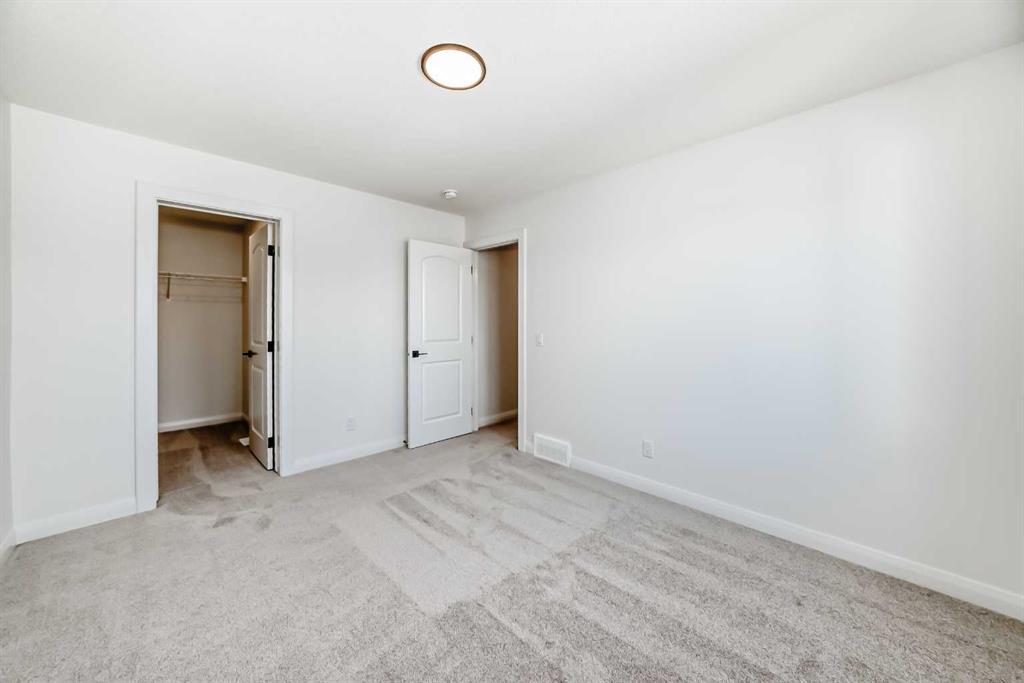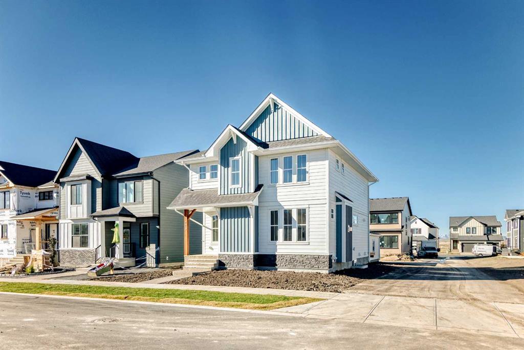 Brand new and move-in ready! This 2,082 sq. ft. Broadview Homes build blends timeless style with thoughtful upgrades. The main floor offers a flexible front room ideal for an office and a sunlit living room with a stylish gas fireplace. The bright white kitchen features quartz counters and 42″ upper cabinets finished to the ceiling with crown moulding. The stainless-steel appliance package includes a gas range, dishwasher, hood fan, and built-in microwave. A large walk-in pantry keeps everyday essentials organized. Upstairs you’ll find three bedrooms and two baths, including a primary retreat with a walk-in closet with a window and a luxurious 5-piece ensuite with double vanity, soaker tub, and roomy tiled shower. The lower level features 9′ ceilings and is unfinished, ready for your design, with rough-in for a future bathroom. The west-facing backyard offers a 10′ x 18′ deck and a concrete sidewalk to the oversized double garage, providing ample parking and storage. Additional perks include rough-in for central vacuum. Set within Harmony, a sought-after lake community and bedroom community of Calgary, you are moments from parks, pathways, golf, and everyday amenities.