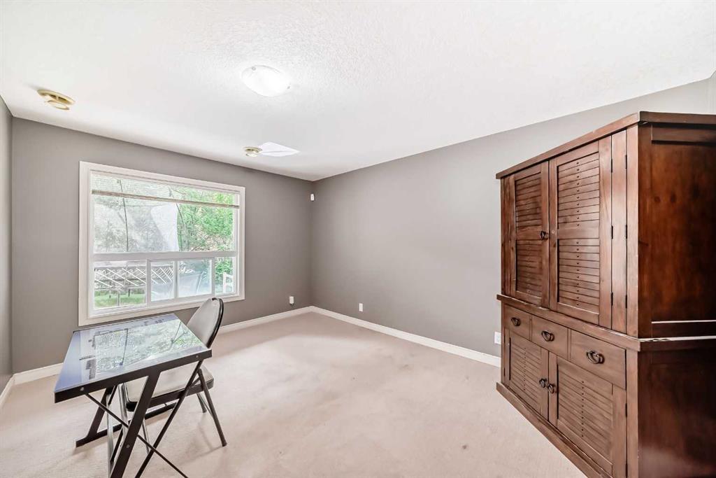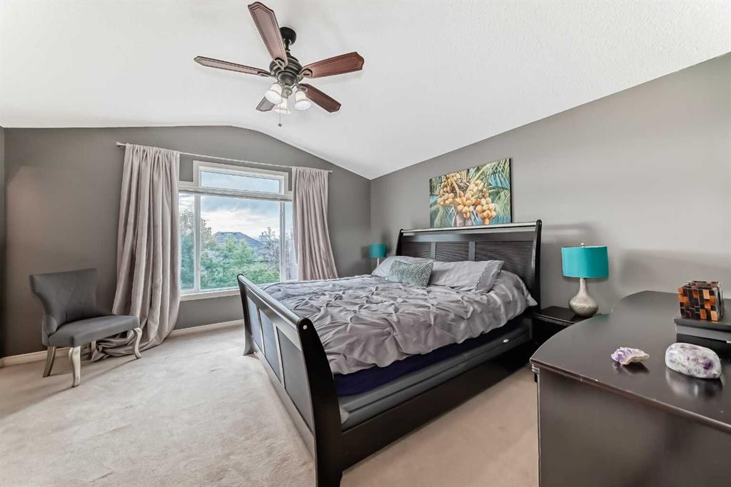 Welcome to this large family home sitting on a walkout lot with views of the Rocky Mountains! Just under 3000 total sq ft with a fully finished walkout basement. The main floor is wide open with upgraded kitchen cabinets and gleaming granite countertops. There is hardwood floors through to the kitchen, dining room & home office/den. The centre island is massive with dual undermount sinks and extra storage. There is plenty of cabinets and drawers plus a large corner pantry! Overlooking the front of the house is an oversized home office or den area~ perfect flex area for whatever you need. The garage is drywalled, insulated and heated. Upstairs you will love the custom wood railings and the huge Bonus room~ amazing entertainment space will hold any sized furniture. The Primary Bedroom has vaulted ceilings, a large walkin closet, a nice mountain view and an incredible 5 pce luxurious ensuite boasting dual sinks in the vanity, granite countertops, a deep corner soaker tub, a cozy stand up shower with corner seat and tiled floors. The two spare bedrooms are a good size (one has a handy walkin closet) and they can share the main 4 pce bathroom. The walkout level is fully finished with tiled flooring, knockdown ceiling with recessed lighting and large windows. There is a corner wet bar with upper & lower cabinets. The living room has a gas fireplace for extra comfort. There is one huge bedroom (the 4th one) and a large den (no closet but does have a stand up armoir & a big window). The basement has a full 4 pce bathroom as well. There is a good sized brick patio at the walkout entrance, a stone sidewalk comes from the front for easy access to the back. The private west facing backyard is a good size. The home has central AC, builtin vacuflo and can include the two spare fridges and the stand up freezer too. This is a great family for a large extended family. Easy walk to the Crestmont Community centre. Quick drive to get to the 16th Ave, Stoney Tr and downtown.