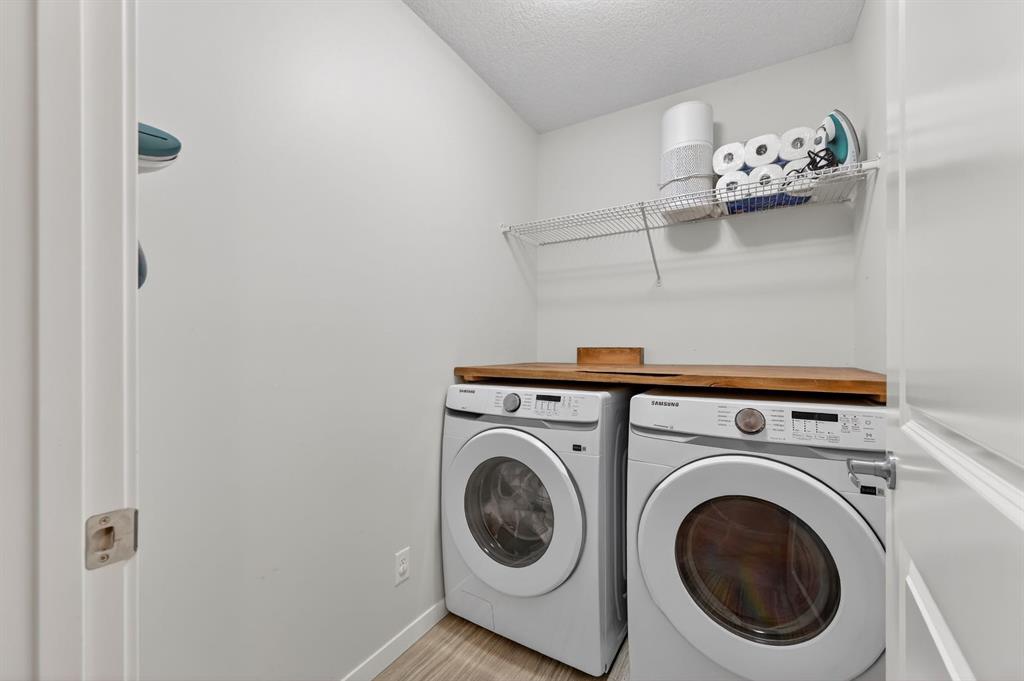 Upstairs, you’ll find three spacious bedrooms, including a serene primary retreat overlooking the reserve with picturesque west-facing mountain views, a generous 5-piece ensuite, and ample closet space. The additional bedrooms are ideal for children, guests, or a home office, with one offering a walk-in closet. A full 4-piece bathroom and convenient upper-level laundry with NEW washer and dryer (2025) complete this level.