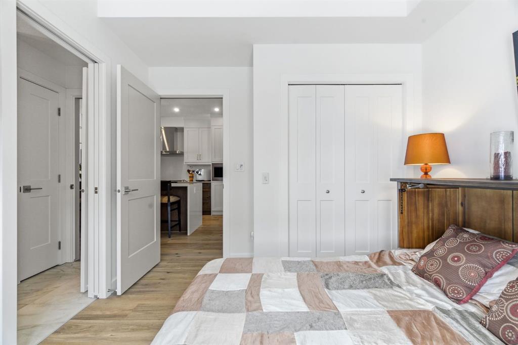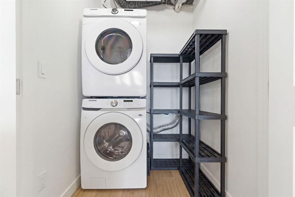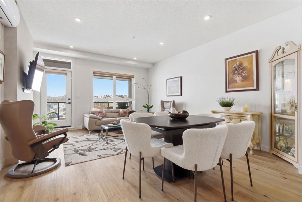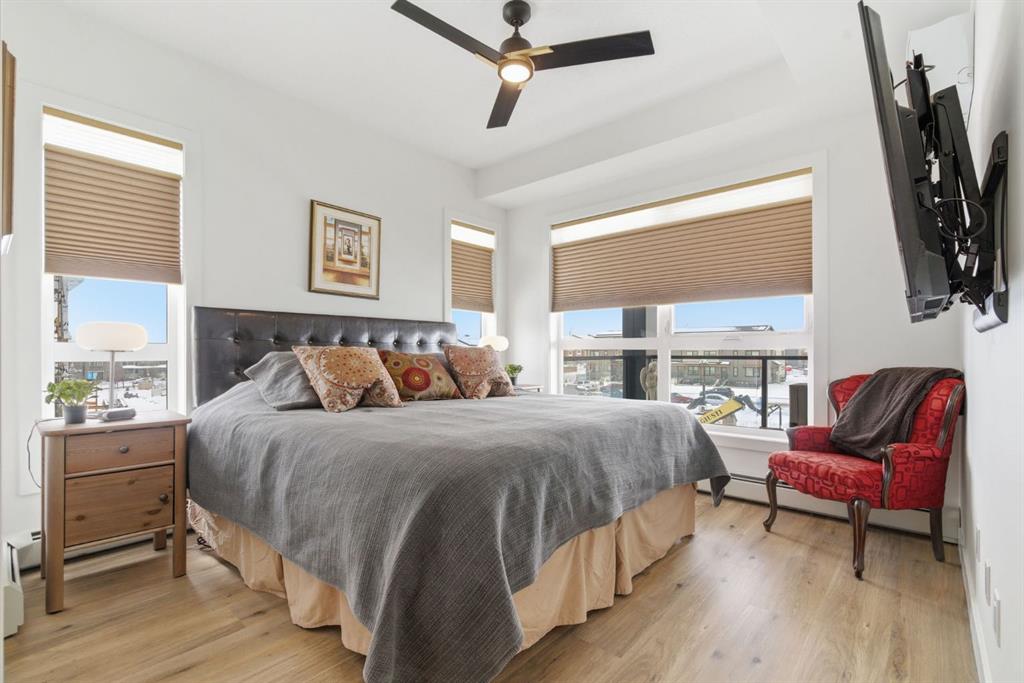 Welcome to this beautifully designed and upgraded, 3rd floor corner unit in the sought-after Waterside in Mahogany. Boasting nearly 1,000 sq ft of thoughtfully crafted living space, exceptional natural light from the south western exposure and large windows, and modern finishes throughout. From the moment you step inside, you’ll appreciate the spacious foyer and the bright and open layout that is enhanced by large dual pane, low-e southwest-facing windows that fill the home with beautiful sunshine all day long. Luxury vinyl plank flooring flows throughout the main living areas, creating a warm and inviting feel. The kitchen is both stylish and functional, hosting sleek quartz countertops, an upgraded stainless steel appliance package, elegant cabinetry with upgraded hardware and custom organization, and a stunning central island with waterfall ends, that provides plenty of space for cooking, dining, and entertaining. The open-concept design seamlessly connects the kitchen to the spacious living and dining areas, anchored by a contemporary electric fireplace for added comfort and ambiance. Step outside onto the oversized private balcony overlooking the courtyard area and is complete with a gas BBQ line, perfect for enjoy beautiful summer evenings on the patio. This well appointed Atwood 3 model suite offers two spacious bedrooms and 2 full baths. The primary bedroom features a generous walk-in closet with custom California Closets providing great storage options and a beautifully upgraded ensuite with a double vanity. Both bathrooms showcase quartz counters and upgraded fixtures, continuing the home’s luxurious, modern style. Additional highlights include in-unit laundry, 2 air conditioning wall units for year-round comfort, stylish upgraded lighting package throughout, and custom California Closets for exceptional organization. The home also includes a titled underground tandem parking stall to accommodate two vehicles and a separate storage locker, offering both convenience and extra space. Located in the award-winning community of Mahogany, residents enjoy exclusive access to Mahogany Lake, Calgary’s largest freshwater lake featuring sandy beaches, swimming, paddleboarding, skating in the winter, and endless pathways and wetlands for walking and biking and all your outdoor lifestyle needs. With numerous nearby shops, great restaurants including Chairmans Steakhouse, great schools, and amazing amenities just minutes away, Mahogany offers a vibrant, resort-style lifestyle in one of Calgary’s most desirable communities. This is condo living at its finest—modern, low maintenance, and surrounded by incredible amenities. Don’t miss your chance to see this one today!