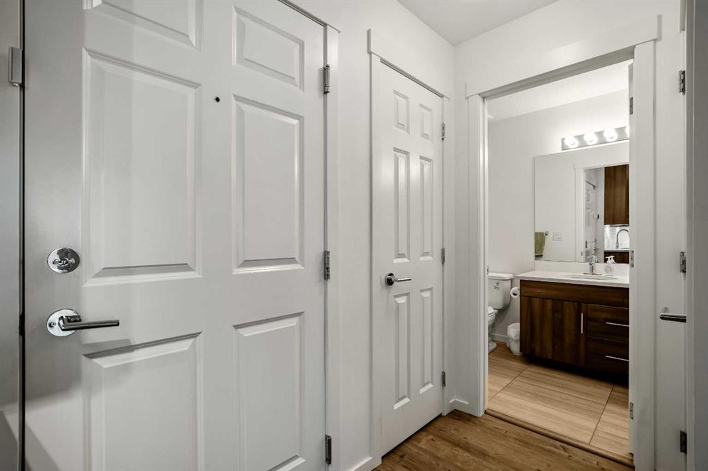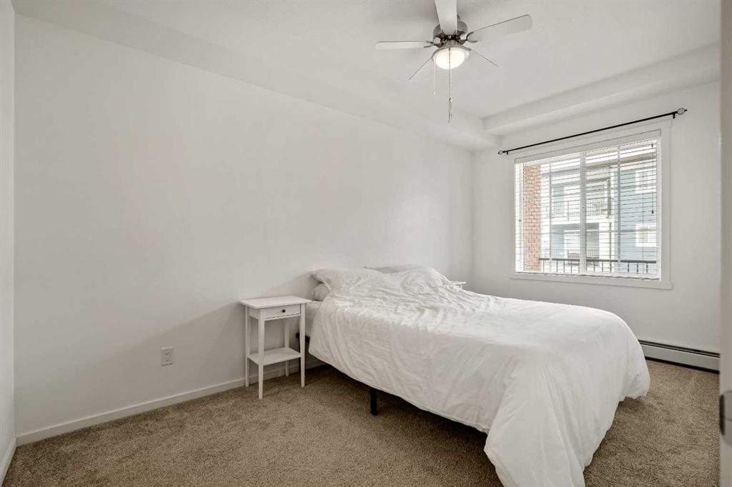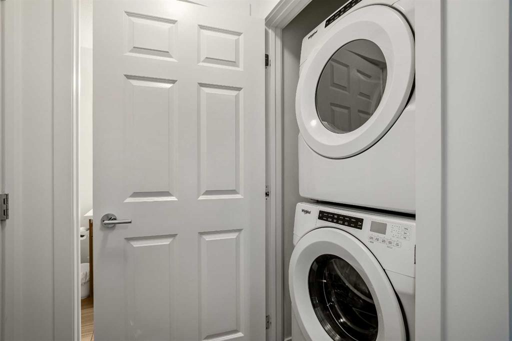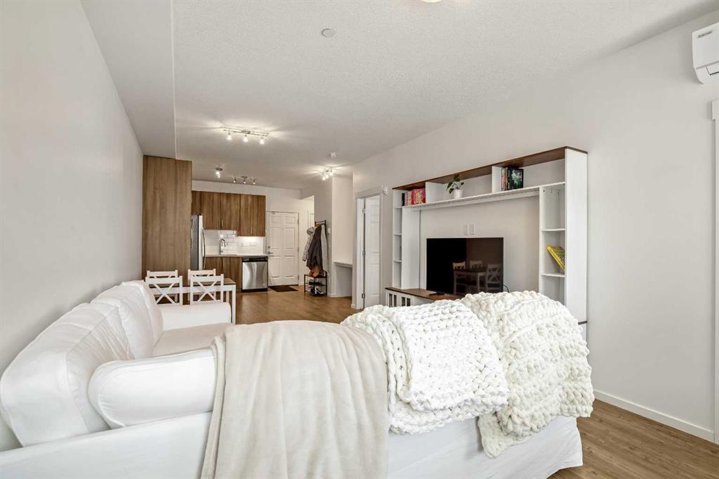 Immaculate 1 bedroom, 1 bathroom AIR CONDITIONED unit in Legacy Park! This bright and OPEN CONCEPT condo with over 660 sq ft of living space is perfect for a first-time buyer, downsizer, or investor. Loaded with BUILDER UPGRADES and presented in virtually new condition, this unit shows exceptionally well. The modern kitchen features upgraded STAINLESS STEEL APPLIANCES, QUARTZ countertops, a full tile backsplash, full-height cabinetry with excellent storage, and the option to add a stationary island. A built-in WORKSTATION with matching quartz countertops adds both style and functionality, ideal for working from home. The generously sized bedroom offers a WALK THROUGH CLOSET complete with built-ins and convenient access to the cheater 5-piece ensuite with DOUBLE VANITY. In-suite laundry and a private patio complete the thoughtfully designed living space. Enjoy the added convenience of titled HEATED UNDERGROUND PARKING and an assigned STORAGE LOCKER. Ideally located close to shopping, amenities, and major roadways, this home offers both comfort and accessibility. Don’t miss this opportunity, book your private showing today!