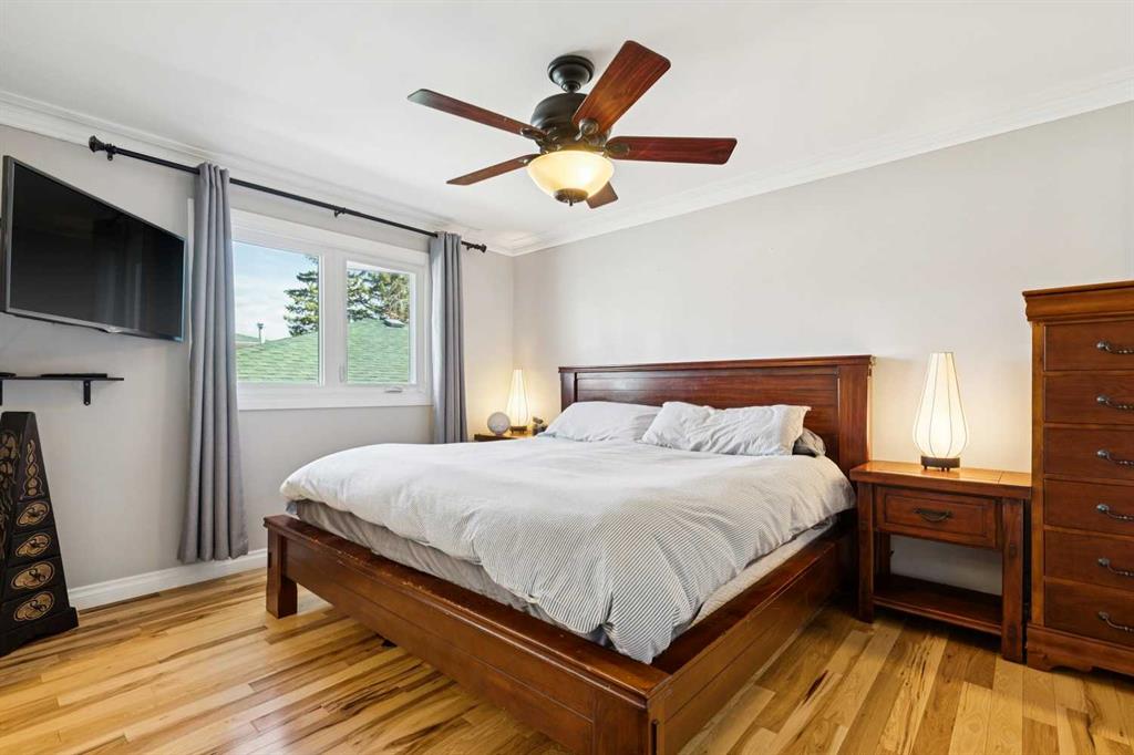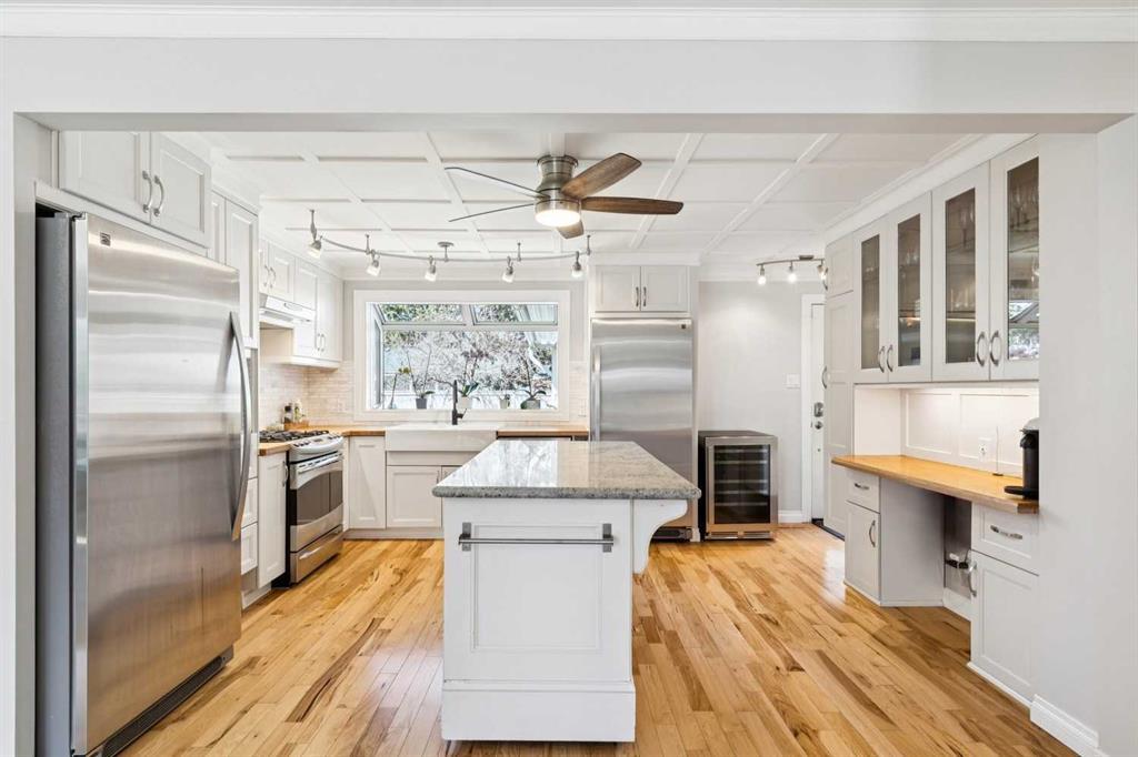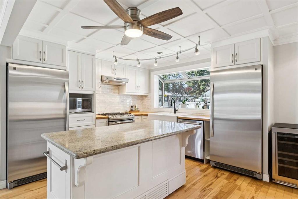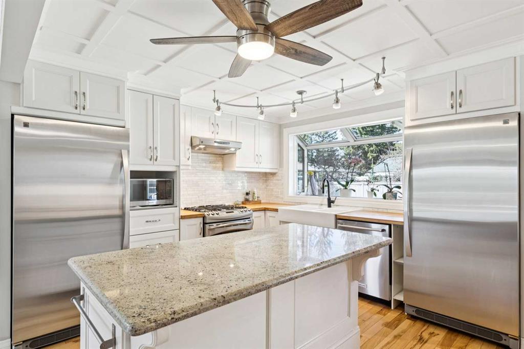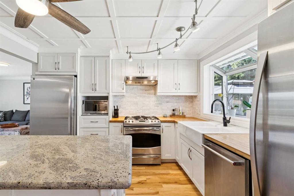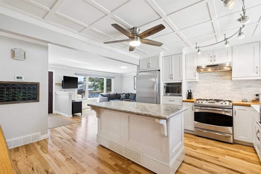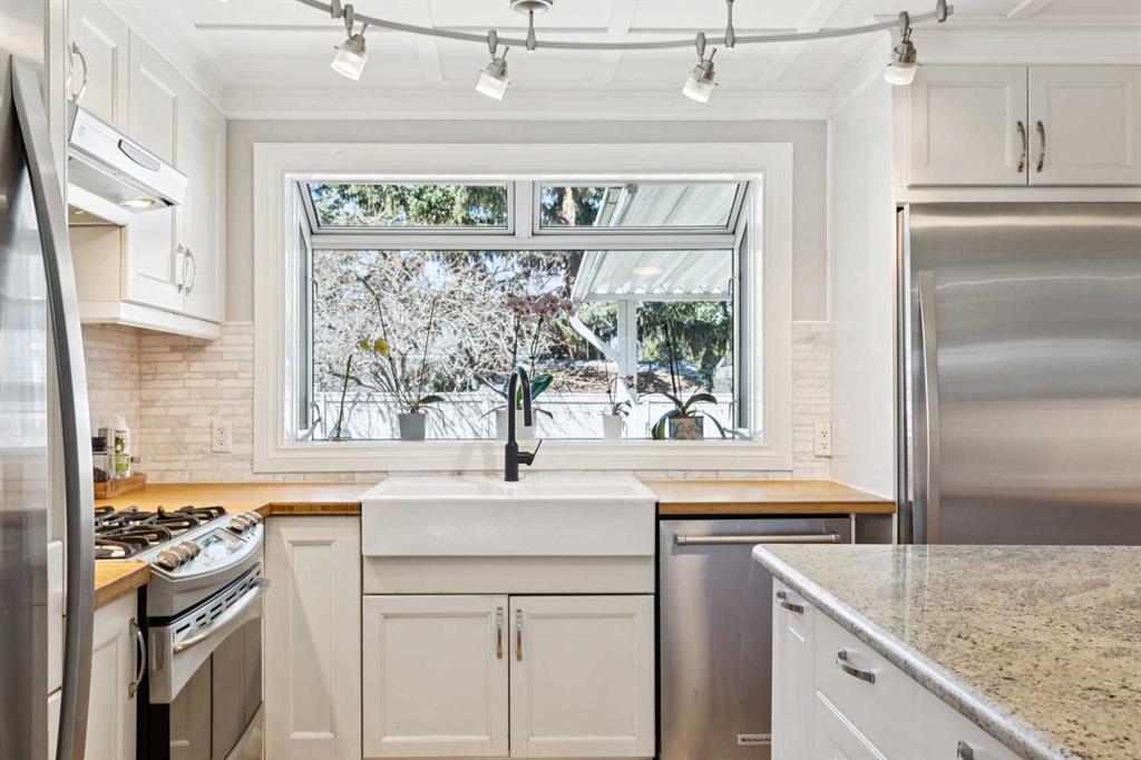 RENOVATED AND SPACIOUS BUNGALOW ON A QUIET CUL-DE-SAC IN PREMIER OAKRIDGE! This stunning detached property has been completely transformed, offering a warm and inviting atmosphere with massive windows that flood the open interior with light. The main floor features airy light-toned hardwood flooring and a sleek contemporary kitchen complete with granite & butcher block countertops, touchless faucet, gas range, farmhouse sink, and a convenient built-in coffee bar. Two large bedrooms are located above grade, including a primary retreat with a luxury ensuite shower and an incredible, oversized walk-in closet, while a second 3-piece bathroom rounds out the main floor. The fully finished lower level features luxury vinyl plank flooring, two more large bedrooms, a full bathroom, a dedicated games area, flex room and a spacious family room. Significant mechanical upgrades include a newer furnace (2019), newer roof (2018) and hot water tank (2024). Outside, the massive west-facing backyard is a true private oasis, boasting multiple entertaining spaces, vibrant perennial gardens, and a rough-in for a future hot tub. The oversized attached single garage features a dedicated work area and a large driveway with ample parking. This home offers an incredible lifestyle on a friendly street where kids can walk to school in under 10 minutes. Enjoy being steps away from endless pathways and South Glenmore Park for canoeing, kayaking, spray park, and the Oakridge tennis club. Experience the perfect blend of modern luxury and community charm—book your showing today!