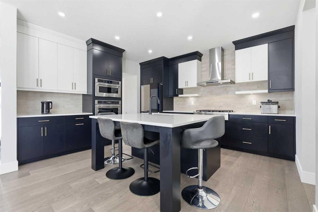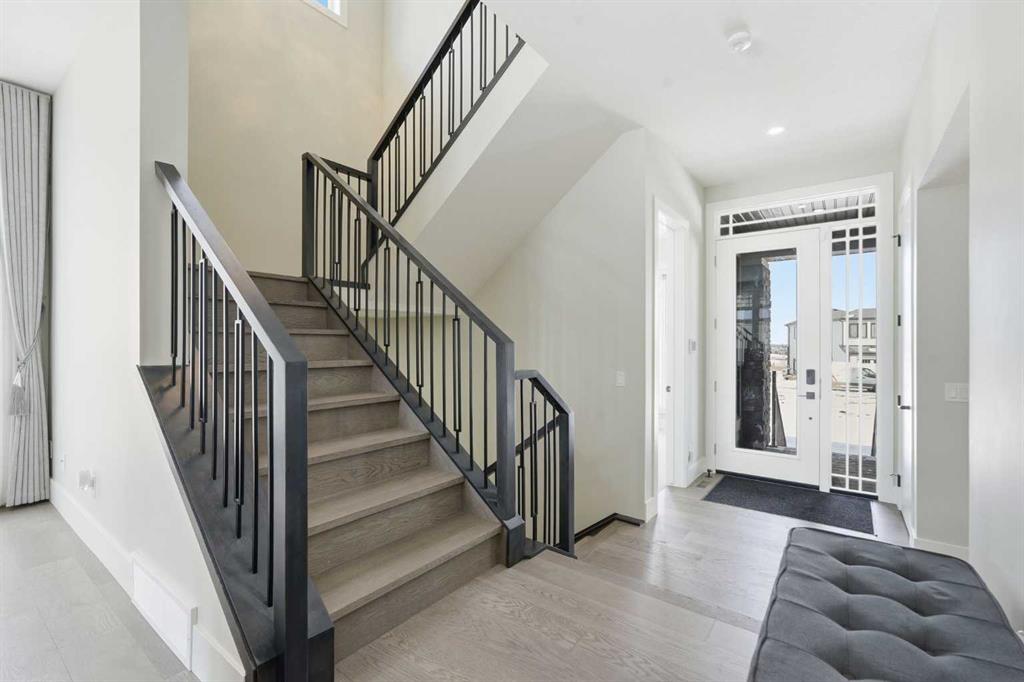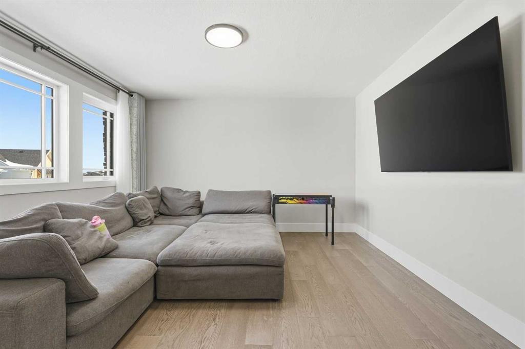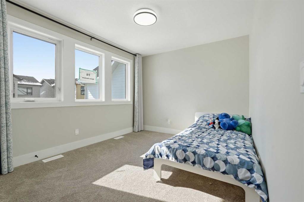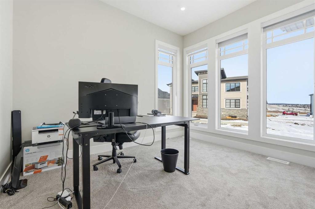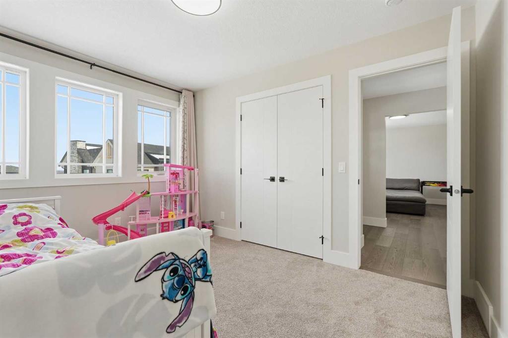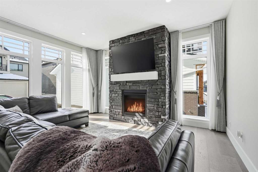 Discover your dream home in this 2025 build Foursquare style design, blending timeless character with a practical layout, thoughtful details, and PARK-FRONT Living! Located in one of Calgary’s newest community, Alpine Park, this home features a symmetrical design, 5 BEDROOMS and a welcoming covered front porch, making it a perfect spot to relax while watching the kids play in the front park. With over 3,500 sf of finished space, this layout is both functional and beautiful. The exterior is finished with HARDIE BOARD siding and brick, while inside, warm hardwood floors, and elevated ceilings bring comfort and style together. The kitchen is fitted with quartz counters, a spacious potential walk-through pantry, stainless steel appliances including a GAS RANGE & built in oven, it flows seamlessly into the living room featuring expansive windows allowing the space to fill with natural light, highlighted by a stunning brick wall and gas fireplace. The semi-formal dining room with 10′ ceilings makes for a more intimate overall dining experience with family/friends. Rounding out the main floor is the stunning office/flex room with four large windows with great views of the park. Upstairs offers three generously sized bedrooms, and a bonus room – for gathering or retreat. The primary suite is a standout, complete with a freestanding tub, large tile shower, double vanities. It also features an impressive walk-in closet, and a thoughtful layout that adds everyday ease and flow. The fully finished basement expands the living space with two additional spacious bedrooms, 4pc bathroom, and a rec/media room. Additional highlights include a side covered porch w/ bbq gas line, REAR ATTACHED DOUBLE GARAGE, and the Alberta New Home Warranty. Plus easy access to the mountains, via Stoney trail, and just minutes from Costco, shopping, parks, schools, dining, and scenic walking paths!