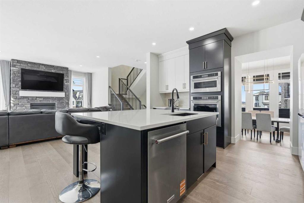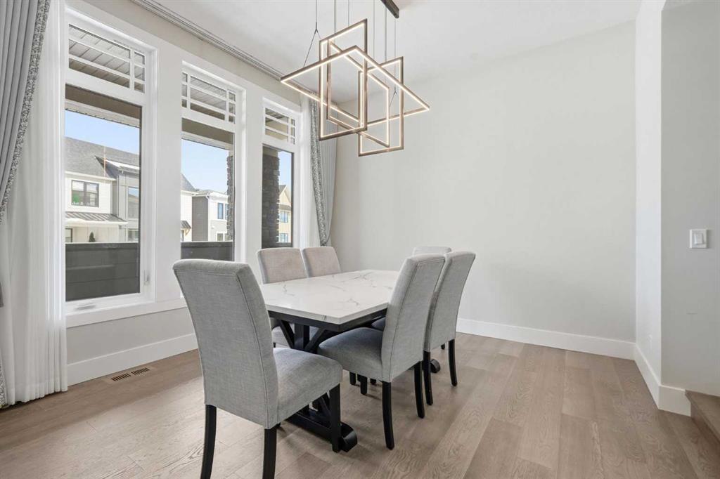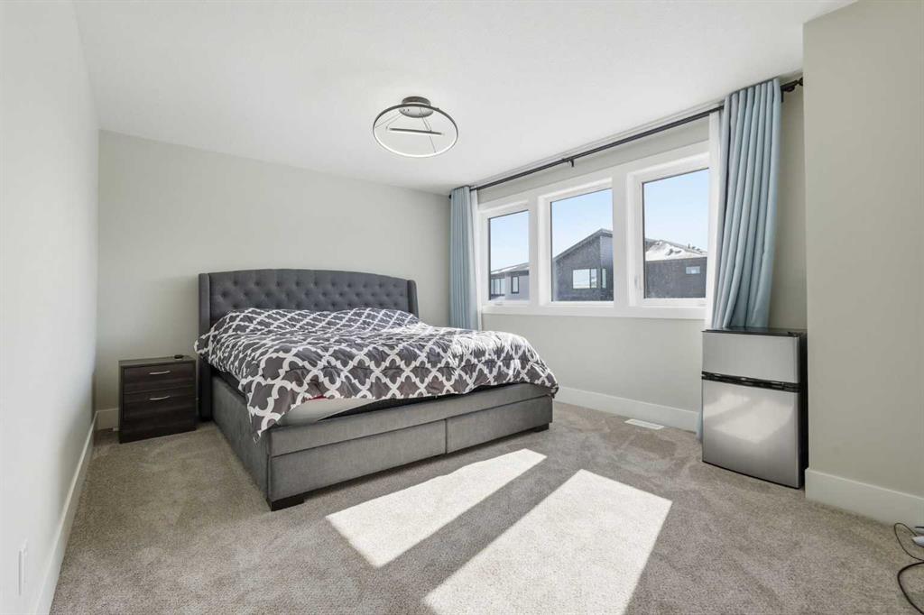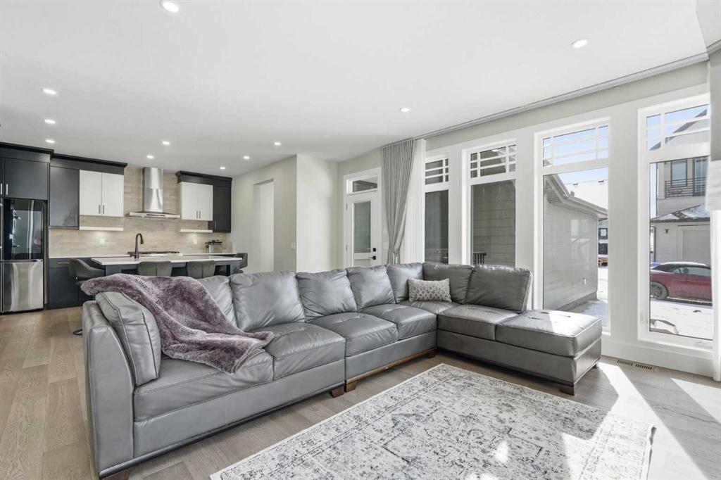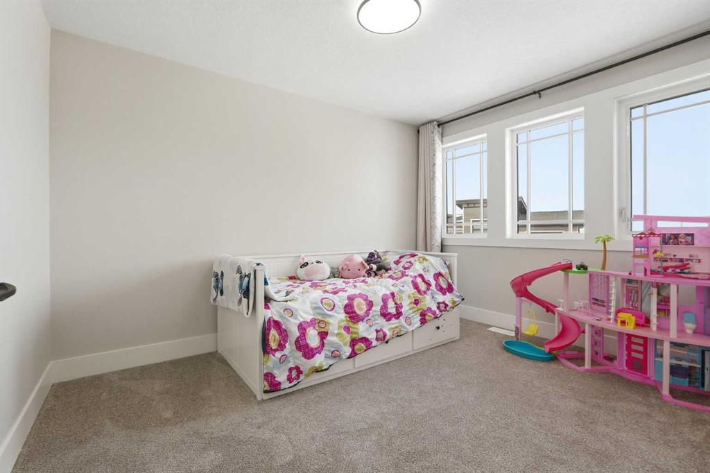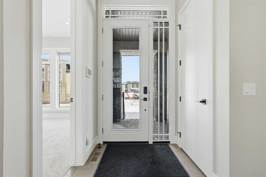 Discover your dream home in this 2025 build Foursquare style design, blending timeless character with a practical layout, thoughtful details, and PARK-FRONT Living! Located in one of Calgary’s newest community, Alpine Park, this home features a symmetrical design, 5 BEDROOMS and a welcoming covered front porch, making it a perfect spot to relax while watching the kids play in the front park. With over 3,500 sf of finished space, this layout is both functional and beautiful. The exterior is finished with HARDIE BOARD siding and brick, while inside, warm hardwood floors, and elevated ceilings bring comfort and style together. The kitchen is fitted with quartz counters, a spacious potential walk-through pantry, stainless steel appliances including a GAS RANGE & built in oven, it flows seamlessly into the living room featuring expansive windows allowing the space to fill with natural light, highlighted by a stunning brick wall and gas fireplace. The semi-formal dining room with 10′ ceilings makes for a more intimate overall dining experience with family/friends. Rounding out the main floor is the stunning office/flex room with four large windows with great views of the park. Upstairs offers three generously sized bedrooms, and a bonus room – for gathering or retreat. The primary suite is a standout, complete with a freestanding tub, large tile shower, double vanities. It also features an impressive walk-in closet, and a thoughtful layout that adds everyday ease and flow. The fully finished basement expands the living space with two additional spacious bedrooms, 4pc bathroom, and a rec/media room. Additional highlights include a side covered porch w/ bbq gas line, REAR ATTACHED DOUBLE GARAGE, and the Alberta New Home Warranty. Plus easy access to the mountains, via Stoney trail, and just minutes from Costco, shopping, parks, schools, dining, and scenic walking paths!