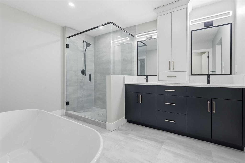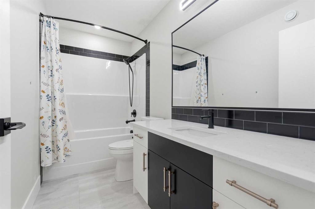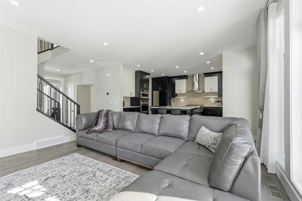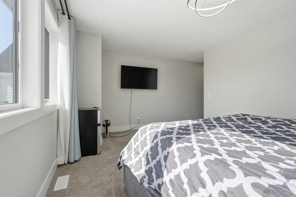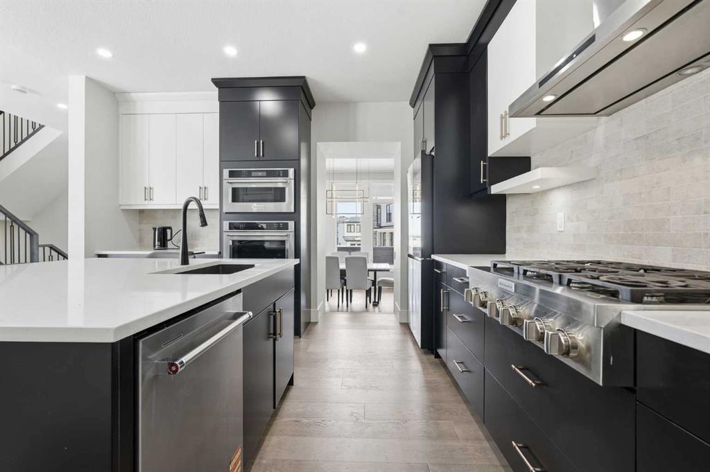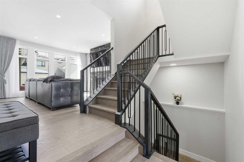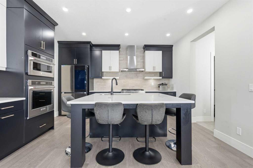 Discover your dream home in this 2025 build Foursquare style design, blending timeless character with a practical layout, thoughtful details, and PARK-FRONT Living! Located in one of Calgary’s newest community, Alpine Park, this home features a symmetrical design, 5 BEDROOMS and a welcoming covered front porch, making it a perfect spot to relax while watching the kids play in the front park. With over 3,500 sf of finished space, this layout is both functional and beautiful. The exterior is finished with HARDIE BOARD siding and brick, while inside, warm hardwood floors, and elevated ceilings bring comfort and style together. The kitchen is fitted with quartz counters, a spacious potential walk-through pantry, stainless steel appliances including a GAS RANGE & built in oven, it flows seamlessly into the living room featuring expansive windows allowing the space to fill with natural light, highlighted by a stunning brick wall and gas fireplace. The semi-formal dining room with 10′ ceilings makes for a more intimate overall dining experience with family/friends. Rounding out the main floor is the stunning office/flex room with four large windows with great views of the park. Upstairs offers three generously sized bedrooms, and a bonus room – for gathering or retreat. The primary suite is a standout, complete with a freestanding tub, large tile shower, double vanities. It also features an impressive walk-in closet, and a thoughtful layout that adds everyday ease and flow. The fully finished basement expands the living space with two additional spacious bedrooms, 4pc bathroom, and a rec/media room. Additional highlights include a side covered porch w/ bbq gas line, REAR ATTACHED DOUBLE GARAGE, and the Alberta New Home Warranty. Plus easy access to the mountains, via Stoney trail, and just minutes from Costco, shopping, parks, schools, dining, and scenic walking paths!
