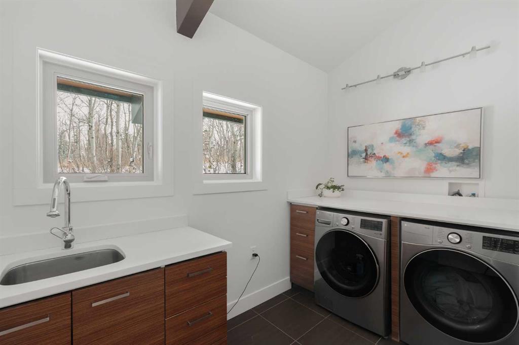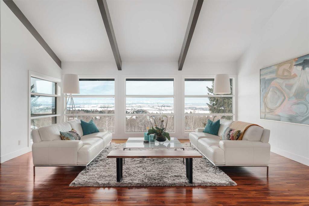 the 2 acres are on a beautifully private parcel, the property is surrounded by mature aspen and native trees, creating a tranquil, secluded setting just minutes west of Calgary’s city limits.