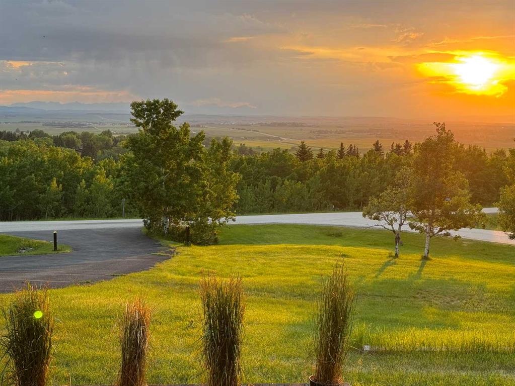 Perched on one of the most picturesque view lots in the area, this remarkable 5,497 total sq ft walkout bungalow home offers a rare opportunity to enjoy country privacy just minutes to Calgary and only 20 minutes to downtown. With quick access to shopping, restaurants & Stoney Trail, you can enjoy modern convenience without compromising the peace & charm of rural living. Built in an era when craftsmanship mattered and thoughtfully renovated over the years, this home beautifully blends timeless character with carefully selected modern updates. Follow the paved driveway to the heated triple car garage & appreciate the abundance of parking. Step inside and take a moment to absorb what surrounds you. From the new tile in the entrance & kitchen to the carefully curated finishes throughout, every detail has been considered. As you make your way to the main level, the views immediately take centre stage. The living room invites you to sit & stay awhile, offering breathtaking Rocky Mountain views, sweeping river valley vistas & unforgettable sunsets. The kitchen is positioned perfectly as the heart of the home, with views in every direction. Featuring Bosch appliances including a gas cooktop and warming drawer, it is a space designed for both everyday living & entertaining. The generous dining area ensures there is plenty of space for good food & good conversation. The family room is anchored by a striking wood burning fireplace that extends from the basement to the ceiling, creating warmth & presence throughout the home. A versatile bedroom on this level is ideal for a child’s room or a private home office. The main floor also offers a beautifully designed laundry room and a well appointed three piece bathroom for guests. The primary suite is exactly what you would hope for. Wake up to incredible views each morning and unwind in a space designed for comfort. The large walk-in closet offers ample storage, while the ensuite features a deep soaker tub, double sinks & a spacious jetted shower. Notice the adorable ladder? Peek into the loft and let your imagination run wild, ideal for study, meditation, or a quiet retreat. The lower level continues to impress. A bright front flex room sits at grade level, adding to the functional living space. Three additional large bedrooms share two full bathrooms, while a generous games room and gym provide flexibility for growing families. With three brand new furnaces, shingles replaced in 2025 & two newer hot water tanks, and many other upgrades, this home is truly move in ready. Outdoor living spaces surround the home with endless possibilities, whether you envision a garden, a hockey rink or a place for a friendly family game of football. The school bus picks up at the end of the driveway, taking kids to be best public and private schools Calgary has to offer. A property like this is rarely offered, combining unforgettable views, thoughtful updates & an unbeatable location close to the city yet a world away.