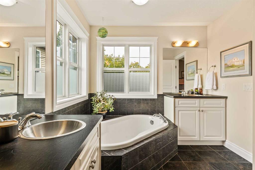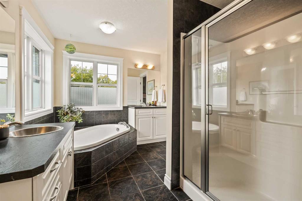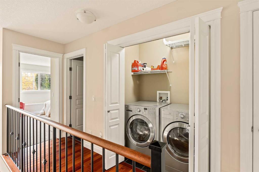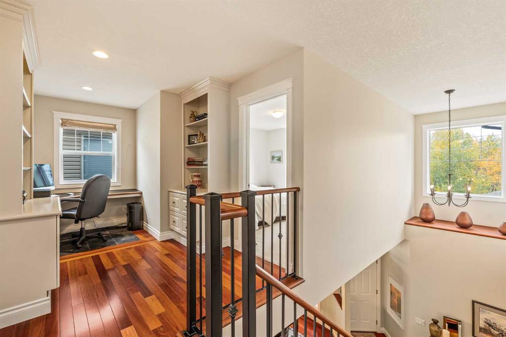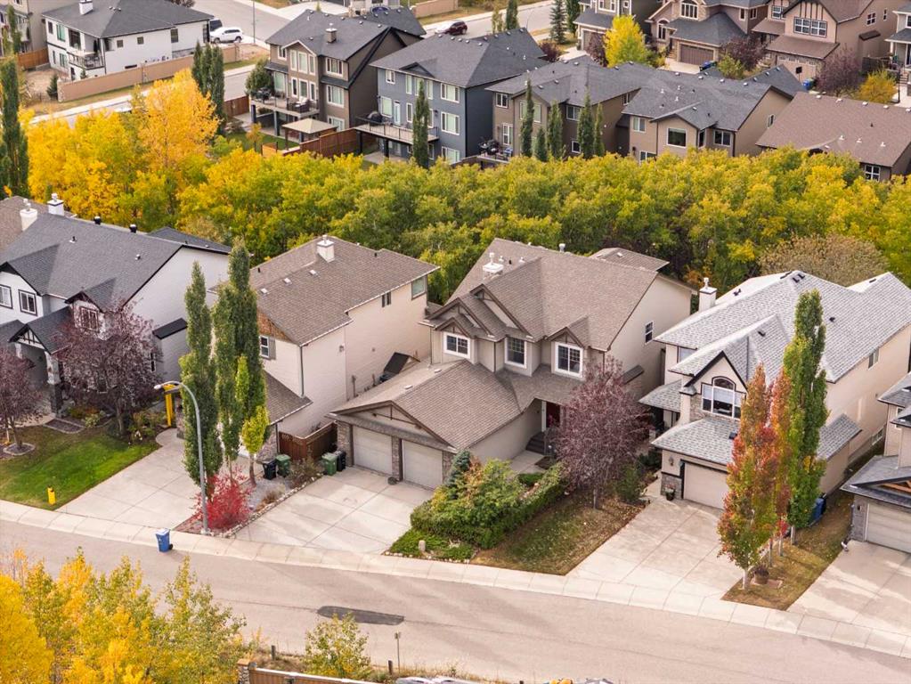 Welcome to 74 Rockborough Park NW — a beautifully crafted custom home perfectly positioned on a quiet street and backing onto a tranquil treed reserve, offering unmatched privacy and a true connection to nature. From the moment you arrive, the home’s timeless curb appeal and thoughtful design are evident. Inside, gleaming hardwood floors, 9-foot ceilings, and expansive windows create an open, inviting atmosphere filled with natural light. The living room features a cozy gas fireplace framed by mature greenery outside, while the adjoining kitchen impresses with stunning black granite countertops, stainless steel appliances, a massive island ideal for entertaining, and a walk-through pantry that adds both style and convenience. A separate formal dining room provides the perfect space for hosting family dinners or celebrations. Upstairs, the primary suite is a true retreat — generously proportioned with its own gas fireplace, a comfortable sitting area, and hardwood floors that add warmth and sophistication. The spa-inspired ensuite features dual vanities, a deep soaker tub, and a large walk-in shower with dual showerheads, complemented by an expansive walk-in closet. Two additional bedrooms, a full bathroom, laundry room, and a bright lofted den with built-ins complete the upper level, offering the ideal mix of comfort and functionality for family living. The west-facing backyard is a private sanctuary surrounded by mature trees — a perfect space for outdoor dining, kids playing, or simply relaxing in the peaceful setting. The freshly painted interior adds a clean, modern feel throughout, while an oversized double garage and central A/C provide year-round comfort and convenience. The unfinished basement offers endless possibilities for future development, with space for additional bedrooms, a recreation room, or home gym. Set in one of Rocky Ridge’s most desirable locations, this home is steps from walking trails, parks, and the award-winning Rocky Ridge YMCA, with easy access to major routes and transit. Combining elegance, comfort, and a rare sense of privacy, this exceptional property embodies the best of Northwest Calgary living.