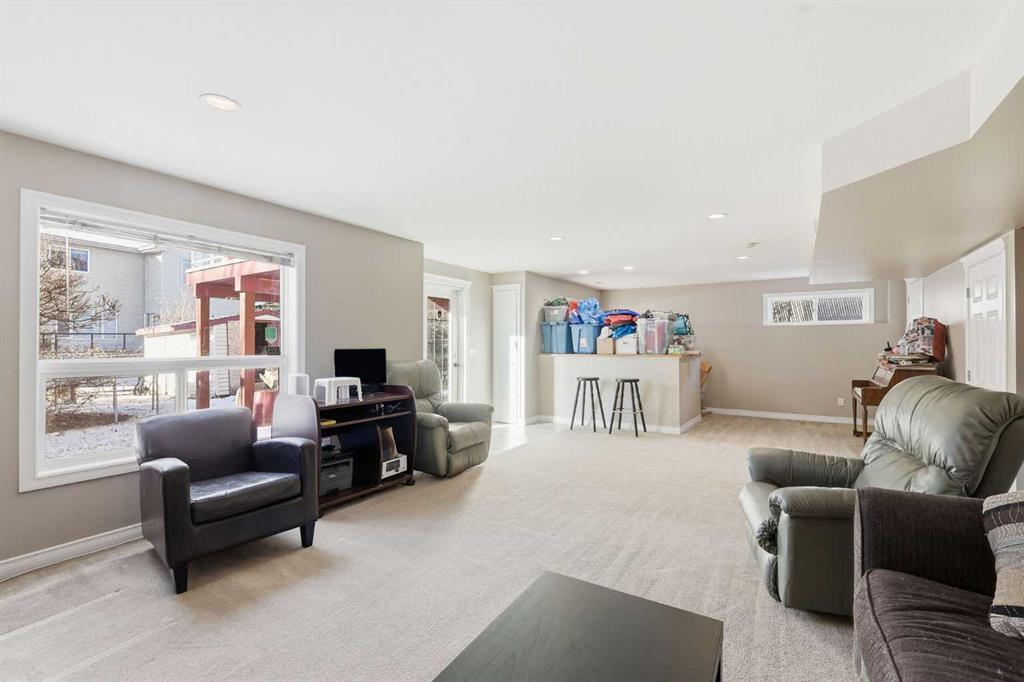 The fully developed walkout basement adds even more room to spread out, featuring 8-foot ceilings and a cozy rec area with a dry bar tucked neatly to the side — perfect for guests, teens, or weekend downtime.