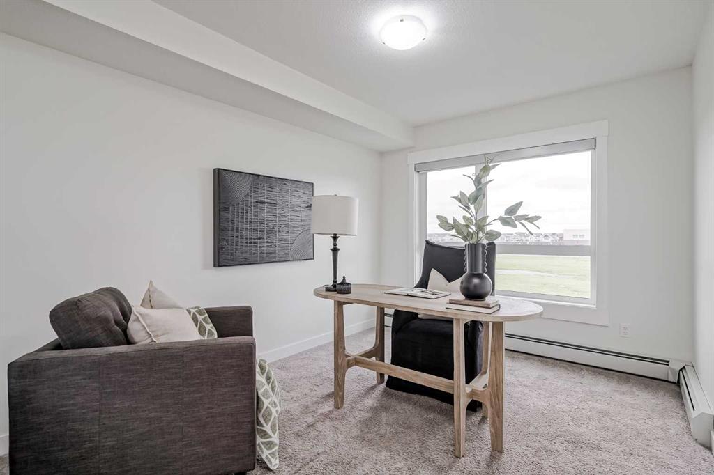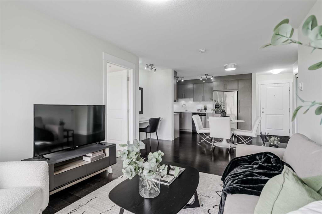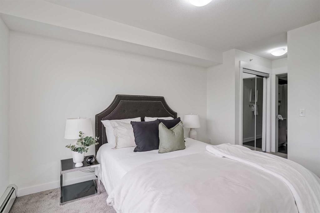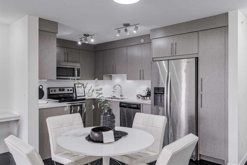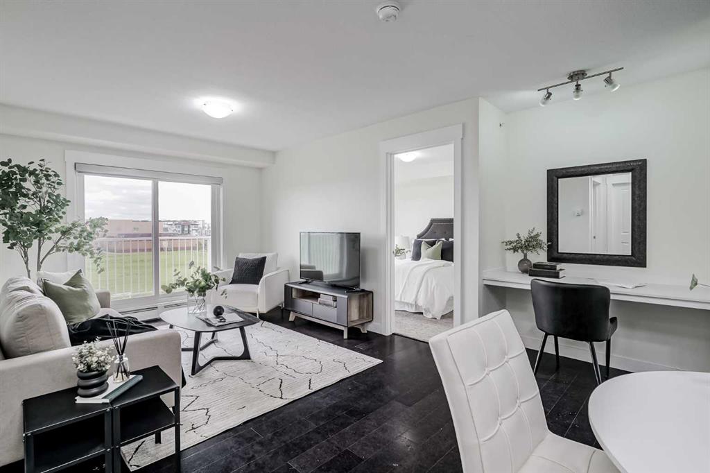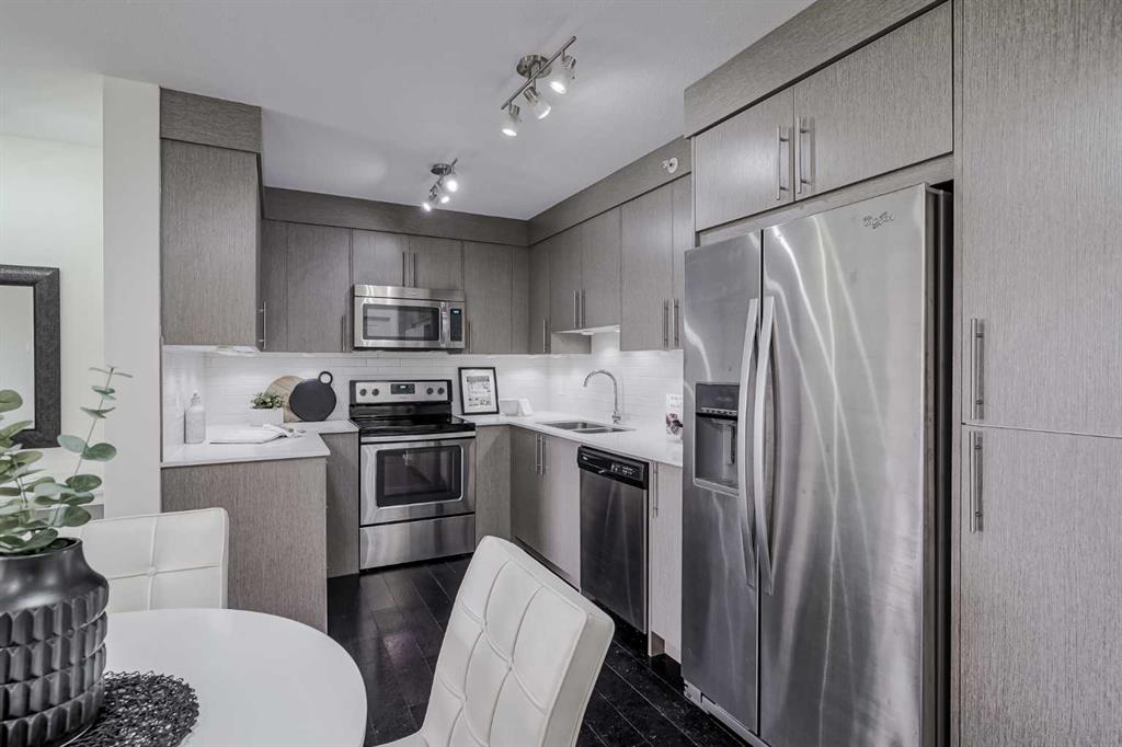 Experience modern living in this stunning top-floor 824 sq. ft. condo with 2 spacious bedrooms, 2 bathrooms and affordable condo fees that include heat and water. Backing onto lush green space, this home offers superior views, tranquility and privacy. The primary bedroom includes a full ensuite for added comfort. Enjoy a bright, airy atmosphere with plenty of natural light in this open concept floor plan, complemented by new zebra blinds in the bedrooms and remote-controlled blinds in the main living area. The sleek kitchen boasts quartz countertops, stainless steel appliances, and under-cabinet lighting. Titled parking and storage provide convenience, while a dedicated laundry room with extra storage enhances functionality. Skyview Ranch is a safe community with many shopping and restaurant options and is conveniently located close to Metis, Deerfoot and Stoney Trails.