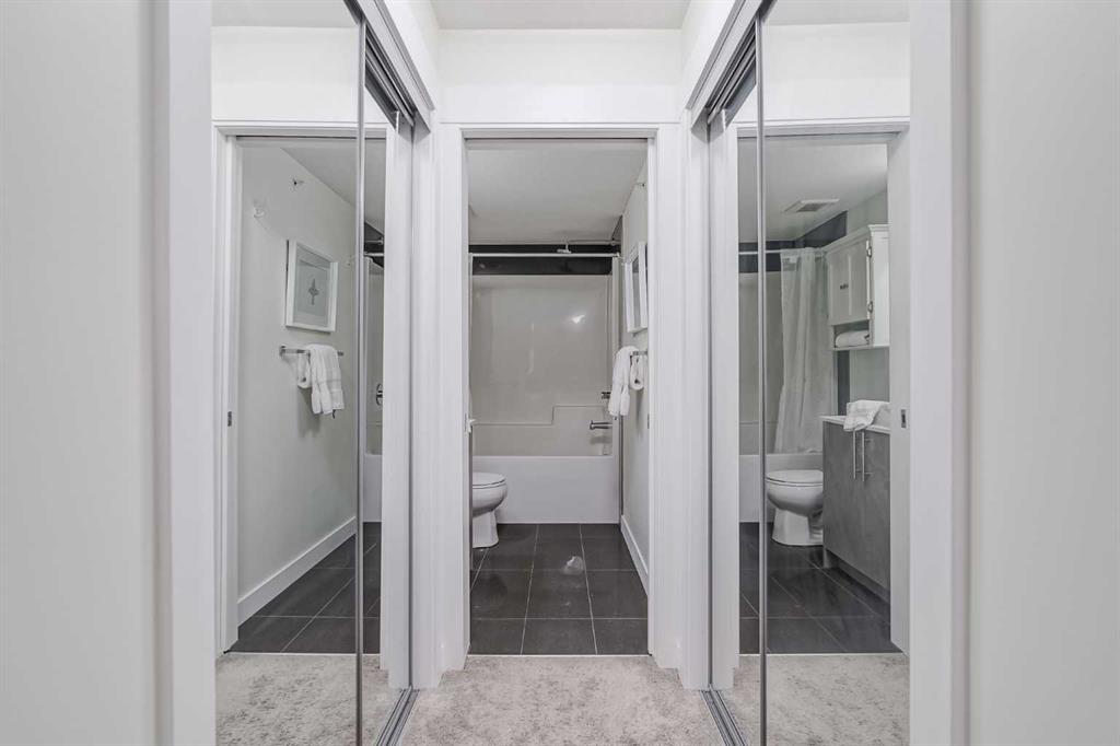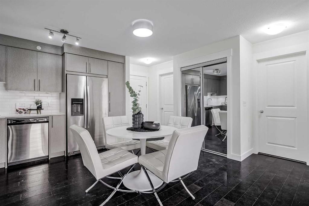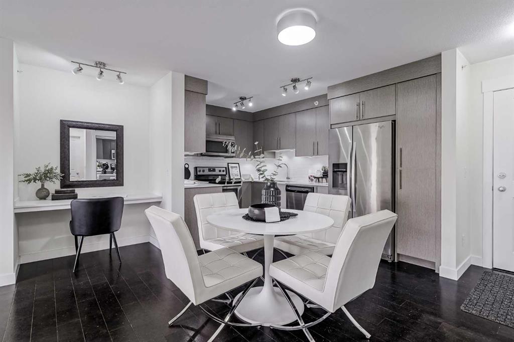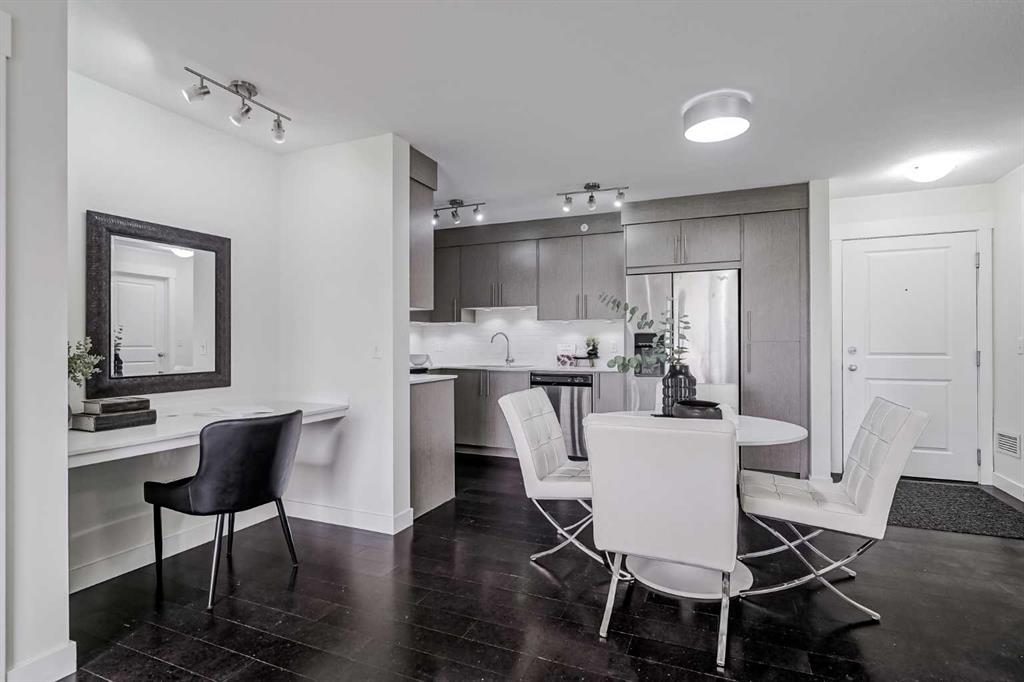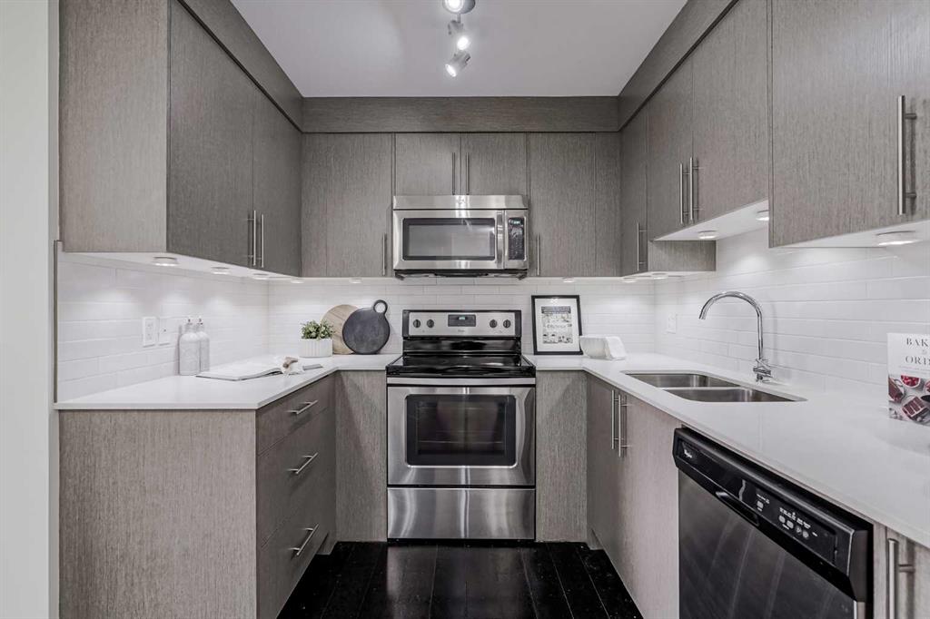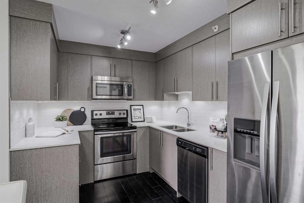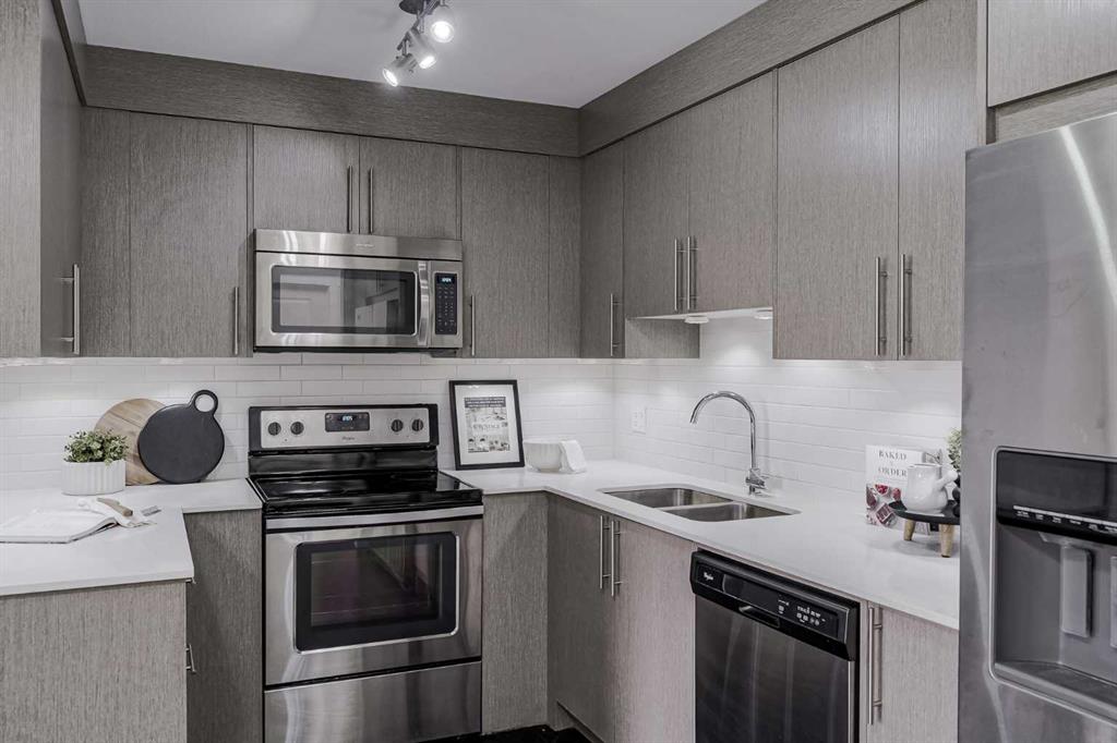 Experience modern living in this stunning top-floor 824 sq. ft. condo with 2 spacious bedrooms, 2 bathrooms and affordable condo fees that include heat and water. Backing onto lush green space, this home offers superior views, tranquility and privacy. The primary bedroom includes a full ensuite for added comfort. Enjoy a bright, airy atmosphere with plenty of natural light in this open concept floor plan, complemented by new zebra blinds in the bedrooms and remote-controlled blinds in the main living area. The sleek kitchen boasts quartz countertops, stainless steel appliances, and under-cabinet lighting. Titled parking and storage provide convenience, while a dedicated laundry room with extra storage enhances functionality. Skyview Ranch is a safe community with many shopping and restaurant options and is conveniently located close to Metis, Deerfoot and Stoney Trails.