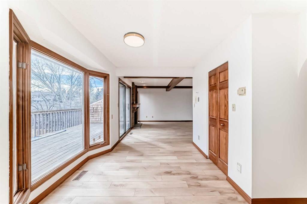This spacious property features over 2,200 sq. ft. of above-grade living space, complemented by a fully developed basement, offering a total of five bedrooms and 3.5 bathrooms. The upper level boasts four generously sized bedrooms, including a bright and airy primary suite with its own private balcony—perfect for relaxing and enjoying the serene surroundings. The main floor welcomes you with soaring ceilings that enhance the sense of space, along with brand-new vinyl plank flooring and fresh paint throughout, creating a modern and move-in-ready feel.