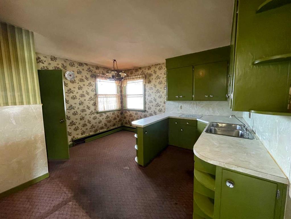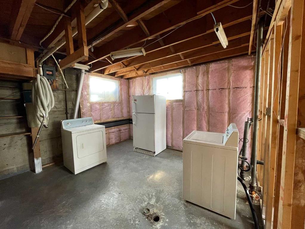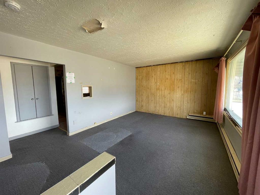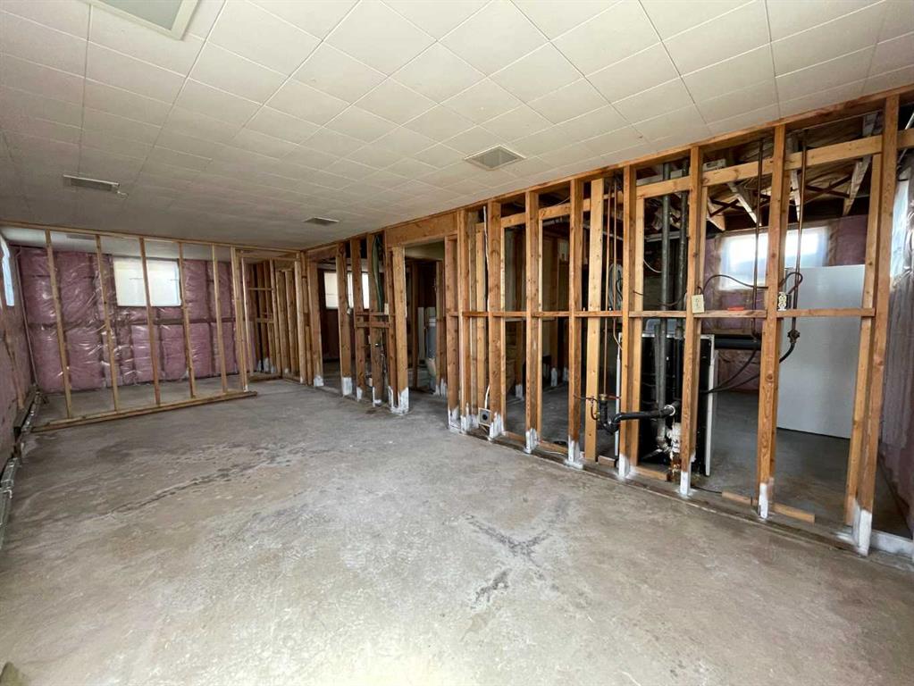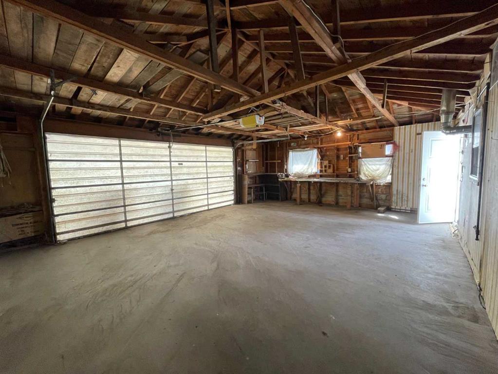 The existing bungalow includes 2 bedrooms, 1 full bathroom, and an undeveloped basement, but requires some updating and is best suited as a holding property or redevelopment site. Large double detached garage with additional storage or workshop space provides immediate utility.