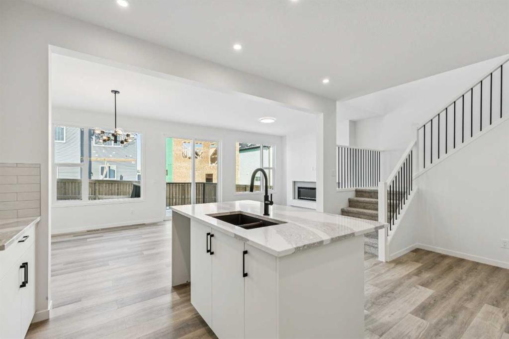 Welcome to Glacier Ridge, the new North West’s premier community! This beautiful home is PRIMED for family life, with a built-in MAIN FLOOR BEDROOM & ENSUITE for guests or extended family, and the opportunity for future potential development with basement full rough-in. Cedarglen’s Parkland model has been a popular mainstay of our impressive arsenal, having been a showhome in many communities and thus a benchmark house plan. The main floor is open concept with a large central kitchen and island designed for entertaining, and a tight stairwell design offering a resplendent view of the great room on your ascent, with its decorative tiled fireplace and span of natural light gleaming from the WESTERN backyard. The upper floor has three bedrooms with a fully upgraded spa-like primary ensuite, boasting a tile shower and double vanities, and a Jack & Jill main bath designed for privacy. Feel what it’s like to live in a Cedarglen showhome!! With quick access to the panoramic environmental reserve on the margins of Glacier Ridge, this home is looking for somebody who can appreciate the natural beauty of the world outside and the curated splendor of the design inside. The WESTERN backyard and deck are waiting for summer evening barbecues as the gloaming twilit sky folds behind the roiling foothills and the only sounds are the presence of neighborly life.