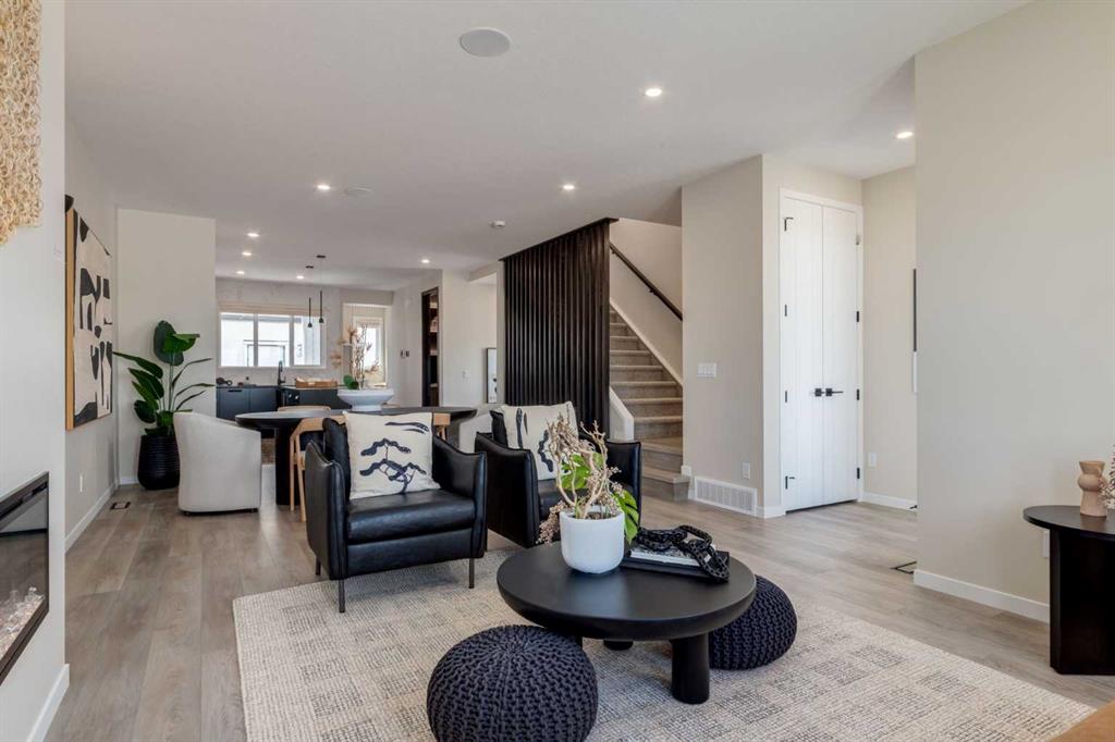 Blending functionality and charm, the Sutton is a welcoming home designed for real life—equally perfect for entertaining friends or settling in for a cozy night at home. The open-concept main floor feels bright and spacious, featuring luxury vinyl plank flooring throughout, quartz countertops, and a warm electric fireplace that anchors the living space. The classic L-shaped kitchen is as practical as it is polished, with a central island for prep and gatherings, plus a kitchen window overlooking the backyard—ideal for keeping an eye on kids, pets, or the BBQ while you cook. A walk-in butler’s pantry adds the “everything-but-the-butler” convenience: well-lit, organized storage just steps from where you’ll need it most. Daily routines are made easier with a rear mudroom complete with additional storage and built-in lockers—perfect for shoes, backpacks, coats, and all the little essentials that tend to pile up. A modern wood railing and statement slat-wall detail add bold style in all the right places, creating an eye-catching focal point while still keeping safety and function front of mind. Upstairs, the thoughtful layout continues with a central bonus room that creates a comfortable buffer between the primary suite and the secondary bedrooms—giving everyone space to spread out, connect, or unwind. The winged bedroom configuration enhances privacy, while second-floor laundry keeps day-to-day living efficient. The primary bedroom feels like a true retreat with a vestibule-style entrance and a spacious ensuite offering a dual vanity and a wet room option—bringing spa-worthy comfort to your everyday. A 9’ foundation adds valuable lower-level height and flexibility, and the home is solar ready with 200-amp service, a 64-panel breaker, and conduit roughed-in to the roof—built with the future in mind. Enjoy outdoor living with a deck already in place, ready for summer dinners and relaxed evenings. Set in Calgary’s “new west,” Alpine Park is designed around New Urbanist principles—meaning walkability, people-first streetscapes, and a community layout built to encourage connection. At the heart of it all is the planned Village Centre, envisioned as an amenity core with everyday conveniences (think grocery/pharmacy and more) plus places to linger like restaurants and coffee spots—intentionally planned so many daily needs are within an easy walk. The community also highlights design touches like couplet roads that help diffuse traffic and support a more comfortable, walkable feel, along with parks and green connections such as Midway Park that link the Village Centre through the neighbourhood. And when you do want to get out and explore, Alpine Park’s location pairs quick access to Calgary via Stoney Trail with easy escapes toward nature—plus Fish Creek Provincial Park is close by for walks, rides, and weekend resets. **Photos are from the show home/previous builds to demonstrate quality of construction & finishes and may not be an exact representation of this home**