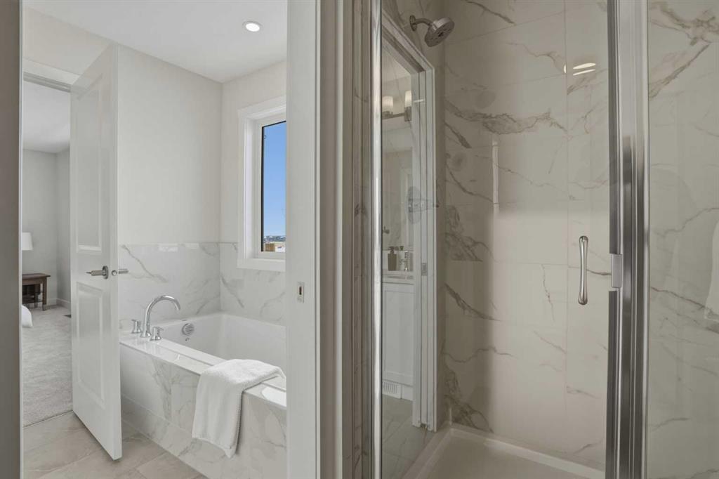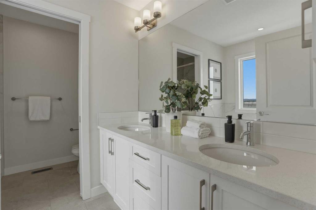 Welcome to the Eleanor model by Genesis Builders Group — a stunning move-in ready, brand new home in the award-winning Heartwood community. This beautifully crafted residence offers approximately 2,408 sq ft of inspired living space with top-of-the-line finishes and thoughtful design throughout. Step into a bright and open main floor where large windows flood the space with natural sunlight, highlighting the quartz countertops, full-height cabinets, and expansive kitchen island with barstool seating — ideal for gatherings. Pendant and recessed lighting accent every detail, while a cozy fireplace adds both style and comfort to the great room. A convenient 2-piece powder room and a dedicated main-level office complete this level, blending functionality with modern elegance. Upstairs you’ll find a well-planned layout with three generous bedrooms, two luxurious 5-piece bathrooms, upper level laundry, and a comfortable family room/bonus space — perfect for evenings with family or quiet relaxation. The primary bedroom is your private retreat featuring a spa-inspired 5-piece ensuite with a deep soaking tub, walk-in shower, double vanities, and private water closet. Bedrooms two and three share a stylish 5-piece bathroom with double vanities and a tub/shower combo. Additional highlights include a double garage with 4 parking spaces, luxury vinyl plank and carpet flooring, and the opportunity to finish the full basement to your needs. This home offers exceptional craftsmanship, light-filled interiors, and premium design features. Located in the vibrant Heartwood community with future parks, pathways, schools, and amenities close by, this home delivers lifestyle, comfort, and long-term value — all ready for you to move in and enjoy! Genesis Builders Group follows the First-Time Home Buyer GST/HST Rebate to eliminate the 5% GST on qualifying new homes (up to $1 million) for qualifying first time home buyers. Hurry and book a showing at this gorgeous brand new Genesis home today!