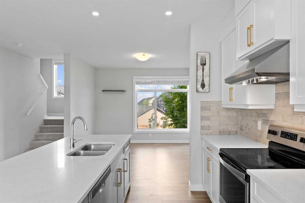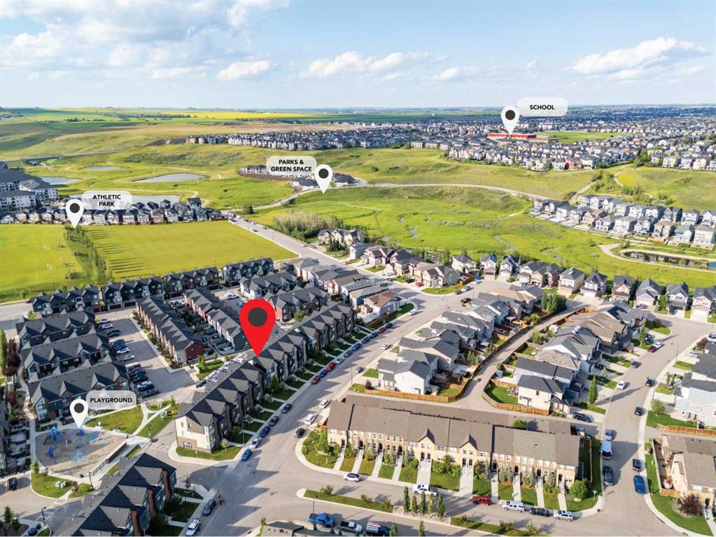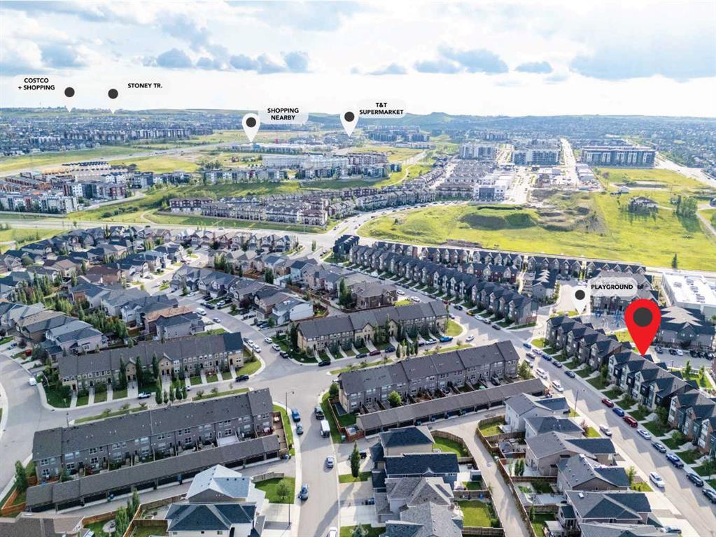 Welcome to this stylish 3-story townhome with attached double car garage in the community of Sage Hill. This particular condo is an end unit with full height brick exterior wall in the front and cement board siding. It has a modern design inside with 3 storeys that boasts many upgrades, including all carpet areas , laminate hardwood floorings, bath and laundry tiles and air-conditioning. The entrance is on street level that features a good-sized office with a large window and easy access to the double garage in the back. The living area on the second level has an open concept design with a spacious living room, a functional kitchen and a roomy dining room with large windows on two sides. The southeast facing windows in the living room allow natural sunlight to brighten and warm up the home. Kitchen is equipped with stainless steel appliances including the upgrade of Elica 30” under the cabinet range hood and a 2022 french door fridge with water dispenser and bottom freezer. Countertops in the kitchen and baths were upgraded to 1 ¼” granite. By the dining room is an exit to a covered balcony with a gas line for barbeque. A 2-piece half bath is on top of the stairs from the ground level. All three bedrooms are on the top floor. The master bedroom is completed with vaulted ceiling, raked windows that extend right to the ceiling, a walk-in closet and a 4-piece ensuite which has been upgraded to the 5’ stand-up shower with framed 5 mm glass slider door. The other two bedrooms are served by another 4-piece main bath on this level. The double attached garage, both heated and insulated, is backside facing. This complex is within walking distance to Symons Valley Natural Reserve. Minutes to shopping centres and major traffic arteries and highways. Don’t miss the opportunity to make it your own! Book your showings today!