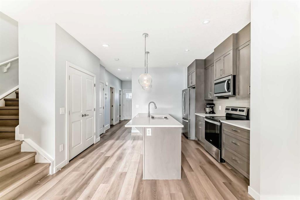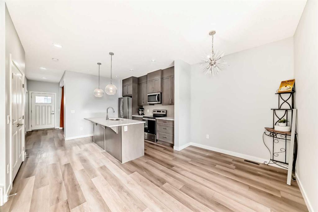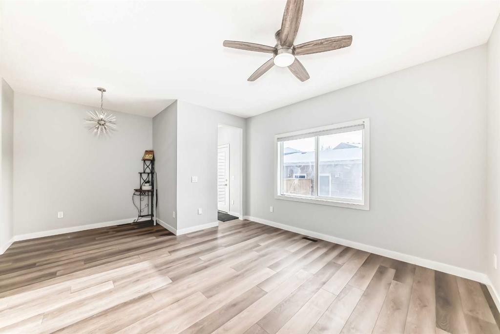 Welcome to this stunning corner-lot duplex, perfectly located in the highly sought-after community of Savanna. Thoughtfully designed, this beautiful home offers 3 bedrooms and 3 full bathrooms. The main level features a cozy living area/den, a spacious family room, a modern kitchen equipped with stainless steel appliances, a dining area, and a full bathroom. The upper level boasts a generous primary bedroom complete with a walk-in closet and a 4-piece ensuite, along with two additional well-sized bedrooms, another 4-piece bathroom, and a conveniently located laundry area. The unspoiled basement offers 9-foot ceilings and a separate side entrance, providing incredible future potential. Additional highlights include a double detached garage, a fully concrete backyard, and recent updates such as new flooring on the upper level. This home is vacant and available for quick possession. Ideally located with easy access to major roadways and the airport, and within walking distance to the community shopping center. Don’t miss out—view the 3D tour and book your showing today!