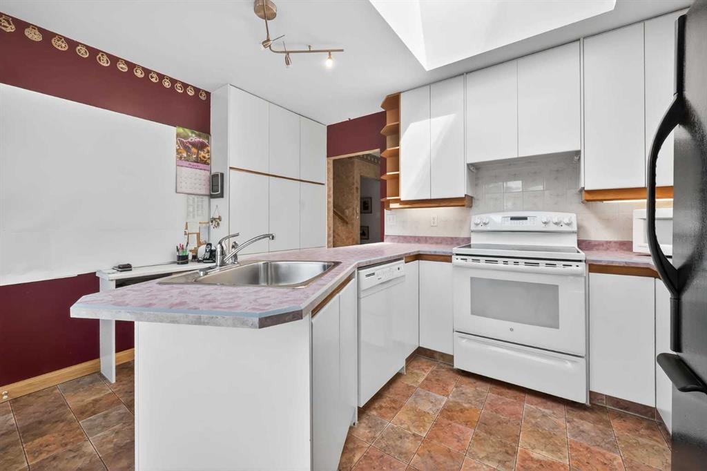 Welcome to this lovingly maintained 3-level split in the heart of Kingsland, offering a rare combination of character, space, and an exceptional location. Situated on a generous 60’ x 100’ lot, this home faces a peaceful green space—formerly the Kingsland Elementary School site—providing an open, unobstructed outlook that’s here to stay. Step inside to discover 1,293.6 sq ft of thoughtfully designed living space above grade, where warmth and functionality meet. The main floor features original oak hardwood flooring and a bright, inviting L-shaped living and dining area, anchored by a cozy gas fireplace—perfect for relaxing or entertaining. The centrally located kitchen offers a vaulted ceiling with skylight, white cabinetry, and a large window overlooking the backyard, filling the space with natural light. At the rear of the home, a standout feature awaits: a sunken sunroom with vaulted ceilings and expansive west-facing windows, creating a sun-drenched retreat you can enjoy year-round, thanks to the fully heated crawlspace below. Upstairs, you’ll find three bedrooms, including a primary suite with its own 3-piece ensuite, along with a full 4-piece bathroom. The hardwood flooring continues throughout this level, adding continuity and charm. The lower level offers excellent additional living space, including a family room with large front-facing windows, a fourth bedroom, and a dedicated laundry and workshop area—ideal for growing families or those needing flexible space. A large crawl space (580 sqft) provides ample storage opportunities. Outside, the home continues to impress. The west-facing backyard is a true gardener’s paradise—meticulously curated over the years with blooming perennials and raspberry bushes. Enjoy summer evenings on the deck (gazebo included!), with the convenience of a rear lane and a storage shed tucked into the corner. The fully fenced yard offers privacy and functionality. The front yard is designed for low-maintenance living, and the extended driveway easily accommodates 3–4 vehicles. This is a rare opportunity to own a solid, well-cared-for home on a premium lot in an established community—close to schools, transit, shopping, and major routes—while enjoying the tranquillity of a green space right outside your door. A property with this combination of lot size, location, and pride of ownership is seldom available—don’t miss your chance to make it yours.