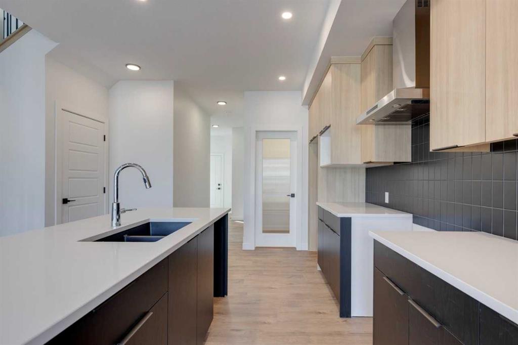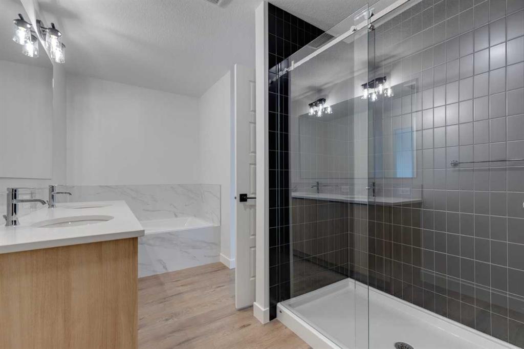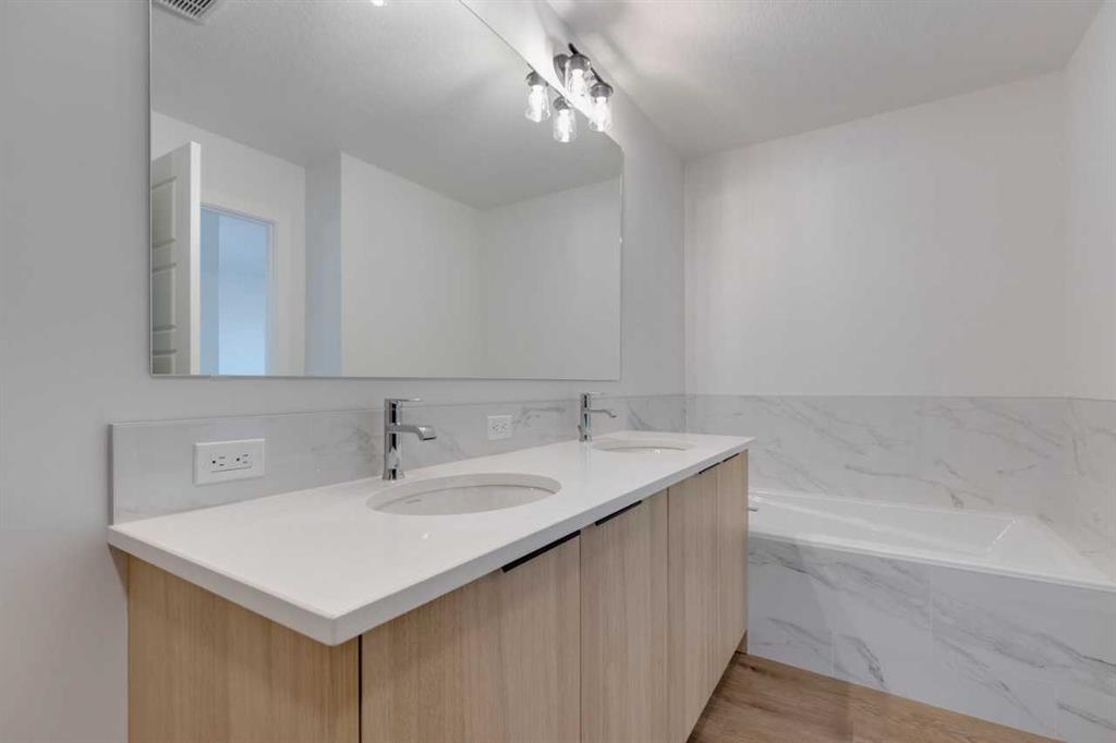 Built by a trusted builder with over 70 years of experience, this duplex showcases on-trend, designer-curated interior selections tailored to feel personalized to you. With energy-efficient and smart home features, plus moving concierge services included, this home makes everyday living effortless. Enjoy the convenience of a side entrance and a main floor bedroom with a full bath and soaker tub. The kitchen is designed for both function and style with stainless steel appliances, chimney hood fan with built-in microwave, tile backsplash, and a walk-in pantry. For added entertaining space, step onto the rear wood deck with BBQ gas line rough-in. The main living area offers a 9′ ceiling that creates a bright and open atmosphere, while upstairs a vaulted ceiling in the bonus room adds extra charm. The spacious 5-piece ensuite includes dual vanities, undermount sinks, a soaker tub, and a walk-in shower. Extra windows throughout ensure the home is filled with natural light. This energy-efficient duplex is Built Green certified, featuring triple-pane windows, a high-efficiency furnace, and a solar chase for a solar-ready setup. With blower door testing, buyers may be eligible for up to 25% mortgage insurance savings, and an electric car charger rough-in is included for future-ready convenience.