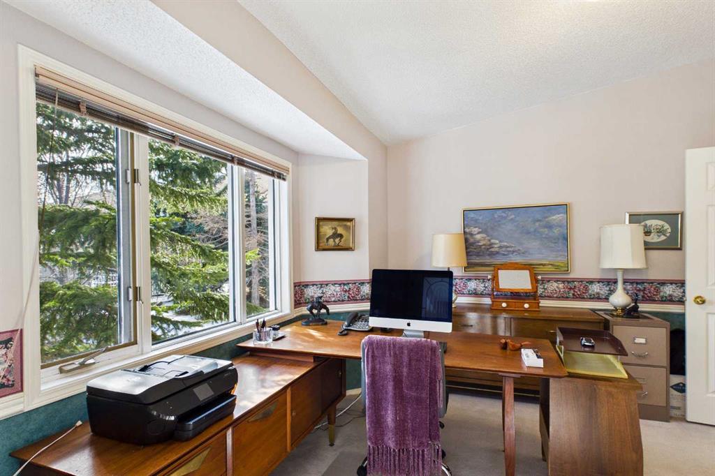 YOU’RE INVITED TO ATTEND MY OPEN HOUSE SATURDAY 1-3PM MARCH 7TH. Every home provides an opportunity for you to see yourself living, making memories and making it your own. This home is no exception with opportunities to just move in! or to customize it and add your personal touches!! This property presents tons of value in a premier South West location. This attached walkout bungalow is in the highly sought-after community of Christie Park—a rare offering that combines timeless design, generous living space, and an exceptional location. This elegant home features a bright and open main floor layout highlighted by large windows, soaring vaulted ceilings, and an abundance of natural light. The spacious living and dining areas create an inviting atmosphere for both everyday living and entertaining. A well-appointed kitchen offers ample cabinetry, a full appliance package, and a functional layout that flows into a cozy breakfast nook and private south facing office. The primary retreat provides a peaceful escape, complete with a walk-in closet and a private ensuite bath. A second bedroom or den on the main level offers flexibility for guests or a home office. The thoughtful design also includes a main floor laundry room and easy access to the attached double car garage. The fully developed walkout basement significantly expands the living space, featuring comfortable recreation areas, an additional bedroom, and a full bathroom—ideal for extended family or entertaining. Enjoy the luxury of in-floor heating throughout the basement, delivering exceptional comfort year-round. Large windows and direct access to the outdoors ensure the lower level feels bright and welcoming. Step outside to the private walkout patio or upper deck—perfect for morning coffee or evening relaxation. Mature landscaping enhances both privacy and curb appeal. Situated in one of Calgary’s most established west-side communities, Christie Park is known for its quiet streets, convenient access to downtown and other transportation routes, nearby shopping, cafes, exceptional restaurants, parks, walking paths, Calgary’s C-Train, excellent schools and a vibrant community. This is a rare opportunity to own a popular style of walkout bungalow with a fully finished basement and in-floor heat in a premier location—offering comfort, convenience, and enduring value.