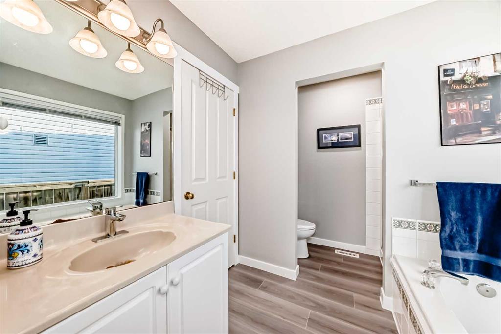 Welcome to this lovely three bedroom, two bathroom family home in the heart of friendly Tuscany – close to all the amenities of the Tuscany Club, nearby shopping, 12 Mile Coulee School, St. Basil Catholic School, and the scenic 12 Mile Coulee Park walking paths. The front entrance opens into a bright living room bathed in natural afternoon light. Up a short flight of stairs, the main living area welcomes you with a generous formal dining room leading into the wide open kitchen. It’s well laid out, featuring plenty of cupboards, a corner pantry, and a moveable island with seating for two. At the back of the home, just off the kitchen, is a comfortable, morning sun-filled breakfast nook with access to the two-tiered deck and treed backyard. Rounding out this level is a spacious primary bedroom, complemented by a walk-in closet and a “cheater” ensuite door to the four piece bath (which includes both a soaker tub and separate shower). A second ample bedroom sits across the hall, offering a nice sense of privacy between the rooms. Hard flooring, baseboards, and paint have been refreshed throughout the main floor for a modern, cohesive flow. Downstairs, you’ll find a massive recreation room with a corner gas fireplace to cozy up in front of. A large third bedroom and an additional full bathroom provide even more living space, while the sizable storage, mechanical, and laundry area ensures there’s a place for everything. Complete with a double attached garage, this home is a true gem. Don’t wait to see it!