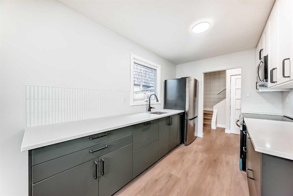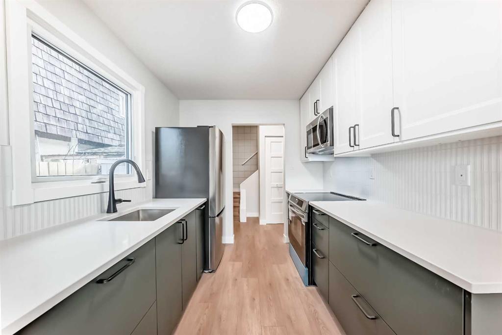 First time home buyers ( NO CONDO FEES) and insightful investors – take note.!!! Thoughtfully renovated and freshly painted, this turn-key home, features a galley style kitchen with beautiful quartz counter tops, a Frigidaire Induction stove and side by side refrigerator, As well as a convection microwave/hood fan and classic tiled back splash, which is surrounded by crisp white upper cabinets. Gorgeous deep green base cabinets host tons of storage and a seamlessly integrated dishwasher. This home has a good sized living room and cosy dining area. The main floor is completed with a half bathroom and a convenient side entrance-withe easy access to the storage shed. Upstairs features 3 good sized bedrooms, a full bath and a linen closet. The basement is fully finished with a rec room, laundry room and plenty of storage. Other features you will love about this property are, easy maintenance vinyl flooring throughout, new windows, knock down ceilings, new baseboards, new landscaping. To be noted as well, this property has a BRAND NEW TOP END 2 stage furnace and a BRAND NEW TOP END water heater, and fresh new paint throughout. Even the roof is in great condition. This home is a gem with absolutely awesome neighbours. The location is ideal- close to Glenmore Trail and easy access to Deer Foot Trail. This charming home is nestled on a quiet street, close to shopping, transit, schools and parks. Ogden is a well established safe neighbourhood – an up and coming hot spot – don’t miss this investment opportunity!