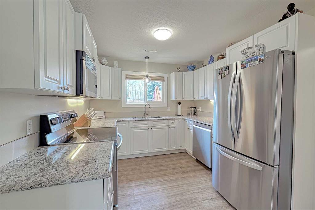 Step inside this 1,270 sq. ft. extensively renovated bungalow & you’re immediately welcomed by bright, sun-filled living & dining rooms, where large windows pour in natural light and create an easy, comfortable flow for everyday lounging or hosting friends. From here, you’re drawn into the heart of the home—the kitchen—featuring crisp white cabinetry, quartz countertops with an under mount sink, and stainless steel appliances that make the space feel both fresh & functional. Down the hall, the spacious primary bedroom offers a restful retreat with room for a full bedroom suite, while the second bedroom works beautifully as a kids’ room, nursery, or guest space. The well-appointed bathroom is conveniently located to serve both bedrooms with ease. Toward the back of the home, a generous mudroom and laundry area help keep daily life organized, and an additional family room/flex space can be tailored to your lifestyle—home office, hobby room, or even a potential third bedroom. Extensively renovated with an effective age of 2013. All of this is set in a fantastic, walkable neighbourhood with great neighbours and easy access to downtown amenities & High River’s vibrant calendar of community events.