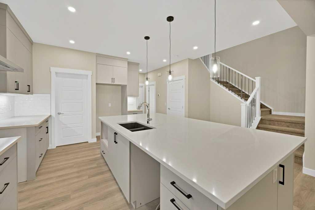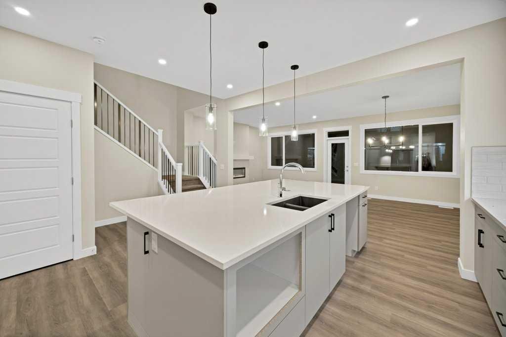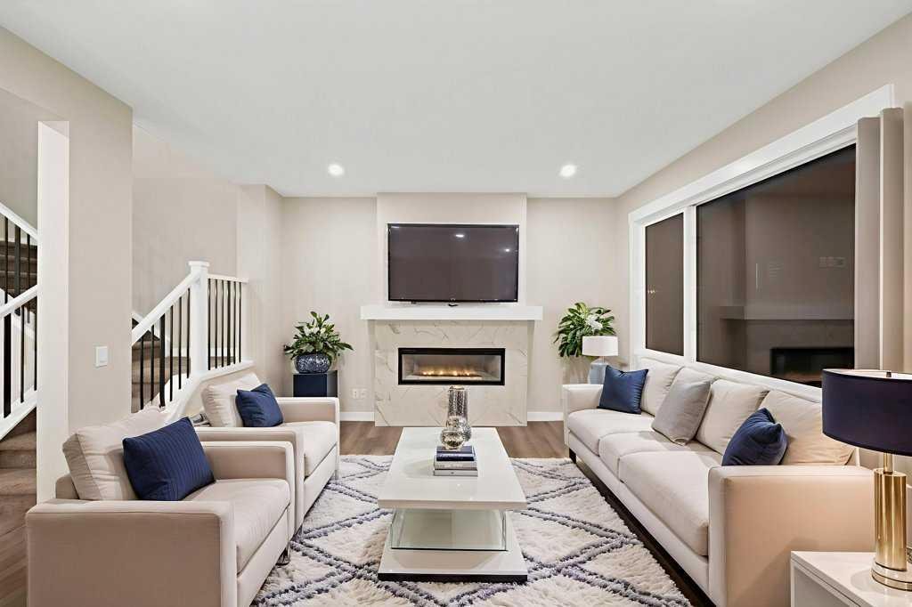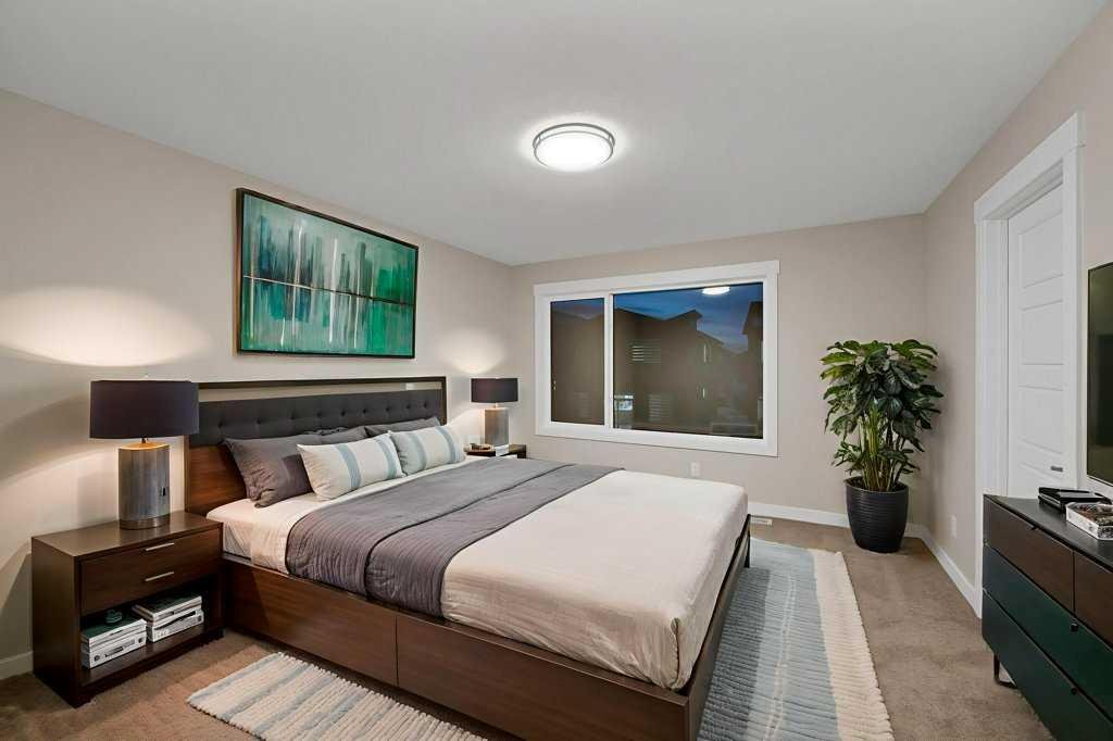 Welcome to this beautifully appointed FD 120 MODEL in the amenity-rich community of Cornerstone. Situated on an east-facing lot, this thoughtfully designed property offers exceptional space and functionality. The main floor features a bedroom and full bathroom, ideal for guests or multi-generational living, along with an open-concept layout. The central kitchen is a standout, complete with stainless steel appliances, gas stove, and chimney-style hood fan, built-in microwave, seamlessly flowing into the dining area and spacious living room with an electric fireplace. Upstairs, you’ll find three generously sized bedrooms, a bonus room with a VAULTED CEILING, three bathrooms, and a convenient laundry area which comes with front load washer and dryer. The home offers two primary bedrooms, each with walk-in closets and private ensuites (5-piece and 4-piece), while all bedrooms include walk-in closets for added storage. The basement features a separate side entrance, 9-foot ceilings, and large windows, providing excellent potential for future development. Located close to parks, schools, shopping, and transit, this home delivers comfort, versatility, and outstanding value in a vibrant community.