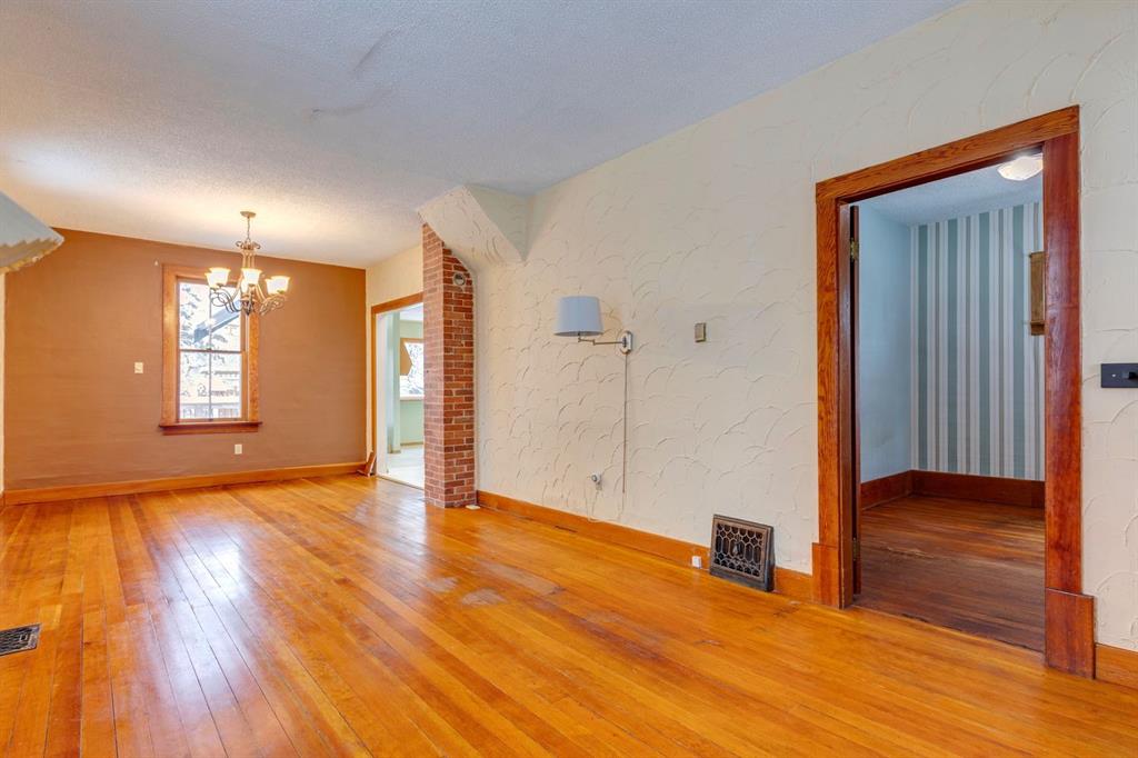 Inside, the home radiates timeless character with beautiful original wood charm, original fir flooring, high ceilings, and a warm, welcoming layout. The main floor features a spacious living room/dining room, a bright kitchen with a breakfast nook addition, an updated 4-piece bathroom, and a main floor bedroom. Two generously sized bedrooms complete the upper level. The basement is partially developed with a large flex room, plus storage.