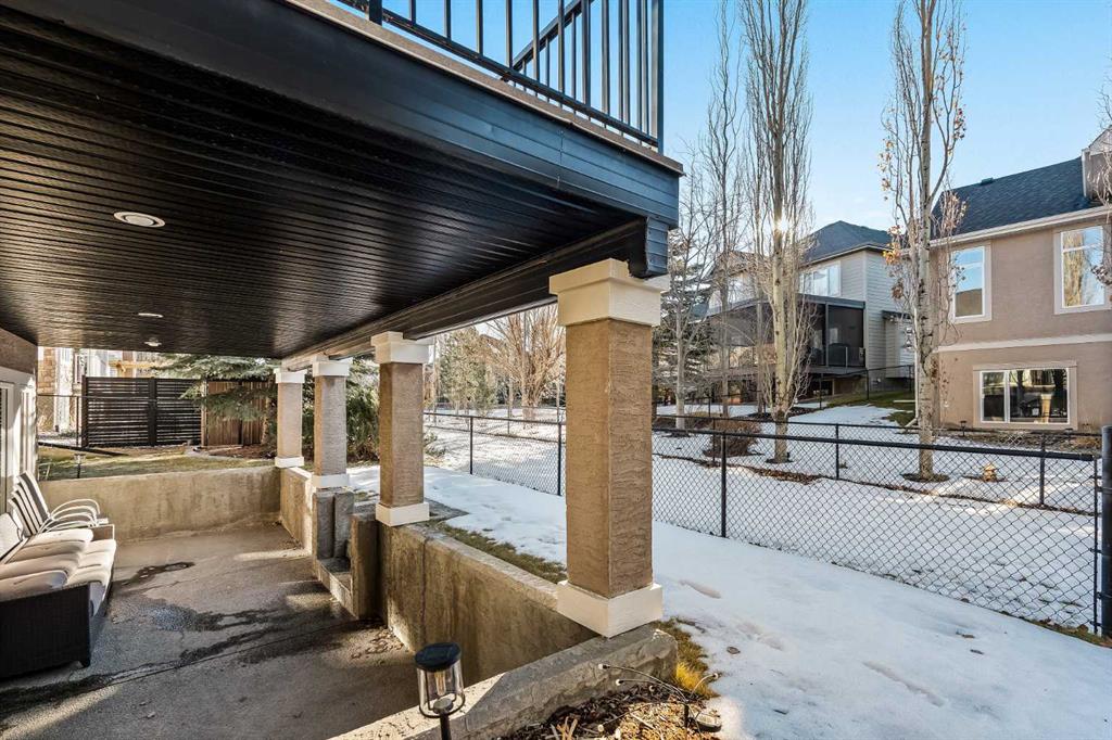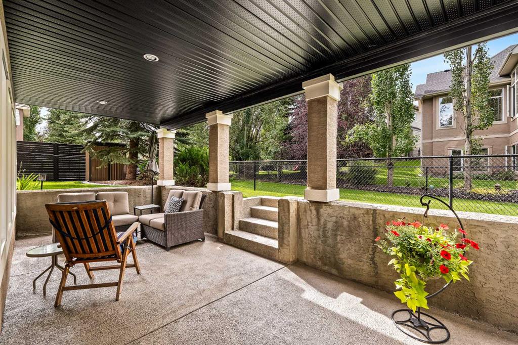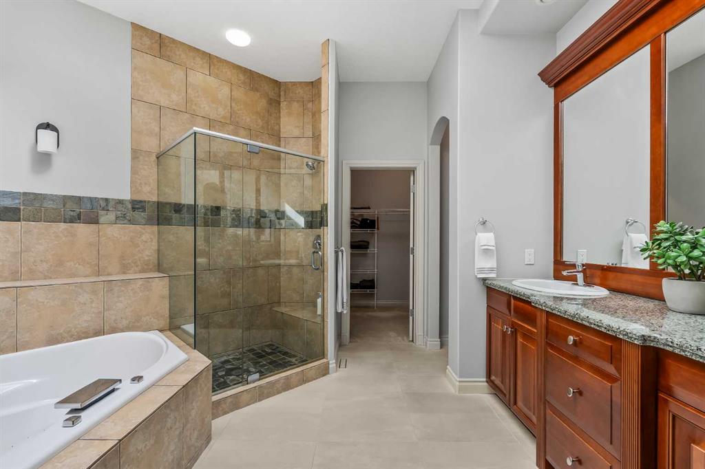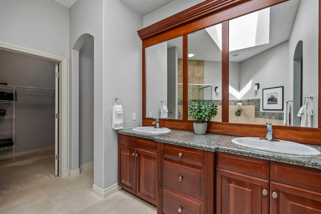 Luxurious, fully finished & beautifully updated, this walkout bungalow showcases exceptional craftsmanship & refined design throughout. Stunning curb appeal sets the tone, highlighted by an oversized double garage with in-floor heating and built-in speakers. Set within the picturesque lake community of Heritage Pointe & backing directly onto green space, the setting delivers privacy, views & a calm connection to nature rarely found so close to the city, with added peace of mind from the community’s independent water system and a full alarm system. Inside, soaring 12’ ceilings & an abundance of natural light elevate the main level, complemented by exotic cherry hardwood flooring & updated lighting for a warm, cohesive flow. A dedicated den with floor-to-ceiling built-ins offers an ideal home office, while a formal dining room framed by tray ceilings creates an elegant setting for hosting with built-in speakers. The open-concept layout unfolds with expansive windows, drawing the outdoors in. At the heart of the home, the chef’s kitchen impresses with granite countertops, custom cabinetry, stainless steel appliances & a large breakfast bar island. Adjacent dining adds everyday flexibility, while patio sliders open to the upper deck for effortless outdoor entertaining. Anchoring the main level, a spectacular living room centers around a striking fireplace with built-in speakers, creating an inviting space to unwind. The private primary suite is a true retreat, featuring a tray ceiling, oversized window, walk-in closet & a beautifully updated ensuite complete with an oversized skylight, deep jetted tub, oversized glass shower, heated floors, built-in speakers & dual vanities. A discreet powder room adds convenience. The walkout lower level is an entertainer’s dream, offering a spacious family room with built-in media area, gas fireplace, integrated storage & elevated seating, with built-in speakers throughout the family room and flex space. A pub-style wet bar with raised seating & a built-in wine cellar is ideal for entertaining, while an additional flex space suits fitness or hobbies. Two bedrooms & a 4-piece bathroom complete this level. Outdoor living continues with a covered lower patio overlooking green space, complemented by an easy-maintenance west-facing backyard with underground sprinklers and a garden shed. Located in sought-after Heritage Pointe, residents enjoy access to a private lake with sandy beach, parks, playgrounds & scenic pathways, all close to schools, shopping & dining, making this an exceptional opportunity to experience refined living in a truly special setting.