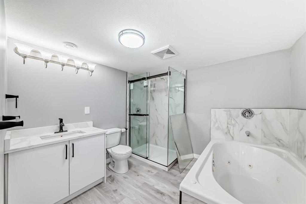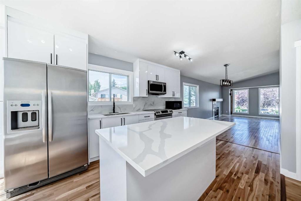 Welcome to this completely remodeled airconditioned home from top to bottom. Kitchen cabinets, floors, paint, lighting fixtures, and many more! Open concept home with 2 oversize heated garage. No space wasted on this corner lot house. Inside you will find bright open concept featuring beautiful hardwood floors, a mesmerizing kitchen with lots of storage space. A beautiful island & stainless steel appliances. Main level is finished off with a nice sized dining area as well as a cozy living room, 3 bedroom and 2 full baths. Downstairs features 2 large & bright bedrooms with huge windows, brand new kitchen, family room and a full jetted tub bath. Outside you will find the newly installed blacony. Shed and a 2 oversized detached garage (25″ X 23″). The lot is big with garden! This home is close to schools, playground, and other amenities. Thank you for your interest!