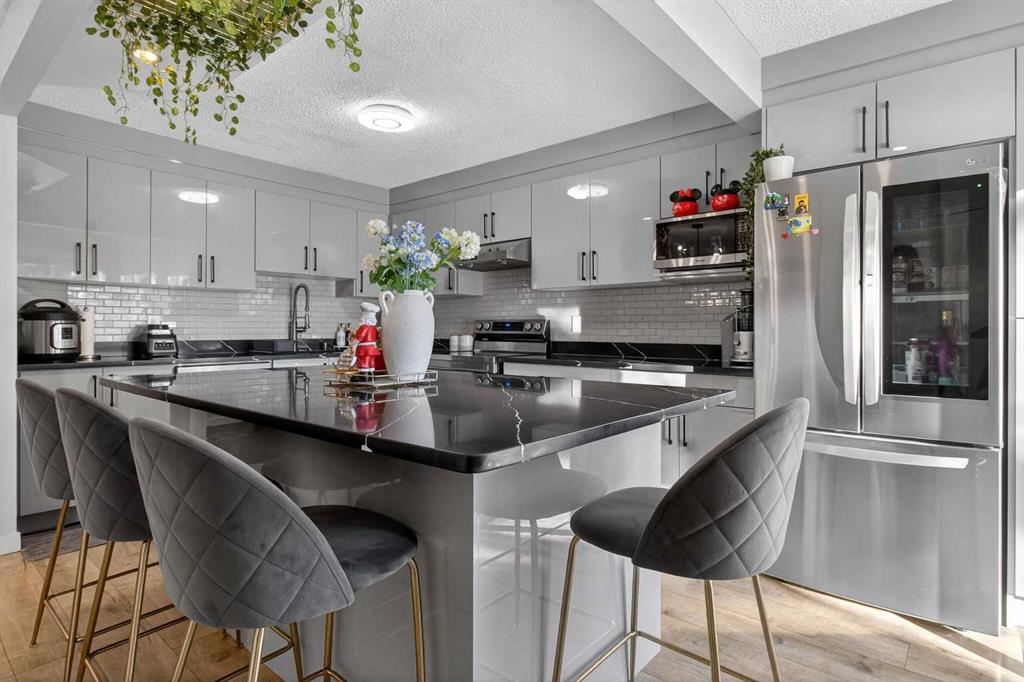 You will love this unique fully renovated two story family home, ideally situated on a quiet, kid friendly cul-de-sac surrounded by green space. Backing directly onto Nose Creek Pond and its extensive pathway system, the location offers seamless access to Nose Creek Park and Sierra Springs Shopping Centre. The bright, sunny newly renovated kitchen overlooks a lush, private garden and tranquil pond fountain perfect for everyday living and entertaining. Ample storage is complemented by a large granite-topped bar with built-in cocktail glass rack, ideal for hosting guests. Come home to a spacious vaulted living room where you can relax and snuggle up around a cozy wood-burning fireplace with chimney. An open stairway leads to a large primary bedroom with a four-piece ensuite, along with two additional generously sized bedrooms. The fully finished basement features a small kitchenette, shower, and ample closet space, making it suitable for a teenager’s bedroom, recreation area, or private guest space. Additional highlights include new flooring throughout, plenty of parking with a double-wide driveway, and a dedicated RV pad. From Yankee Valley Blvd, turn north onto Main Street, then take the next right onto Summerfield Blvd SE.